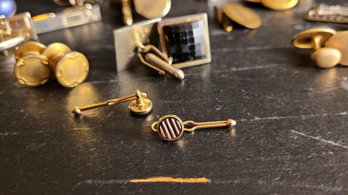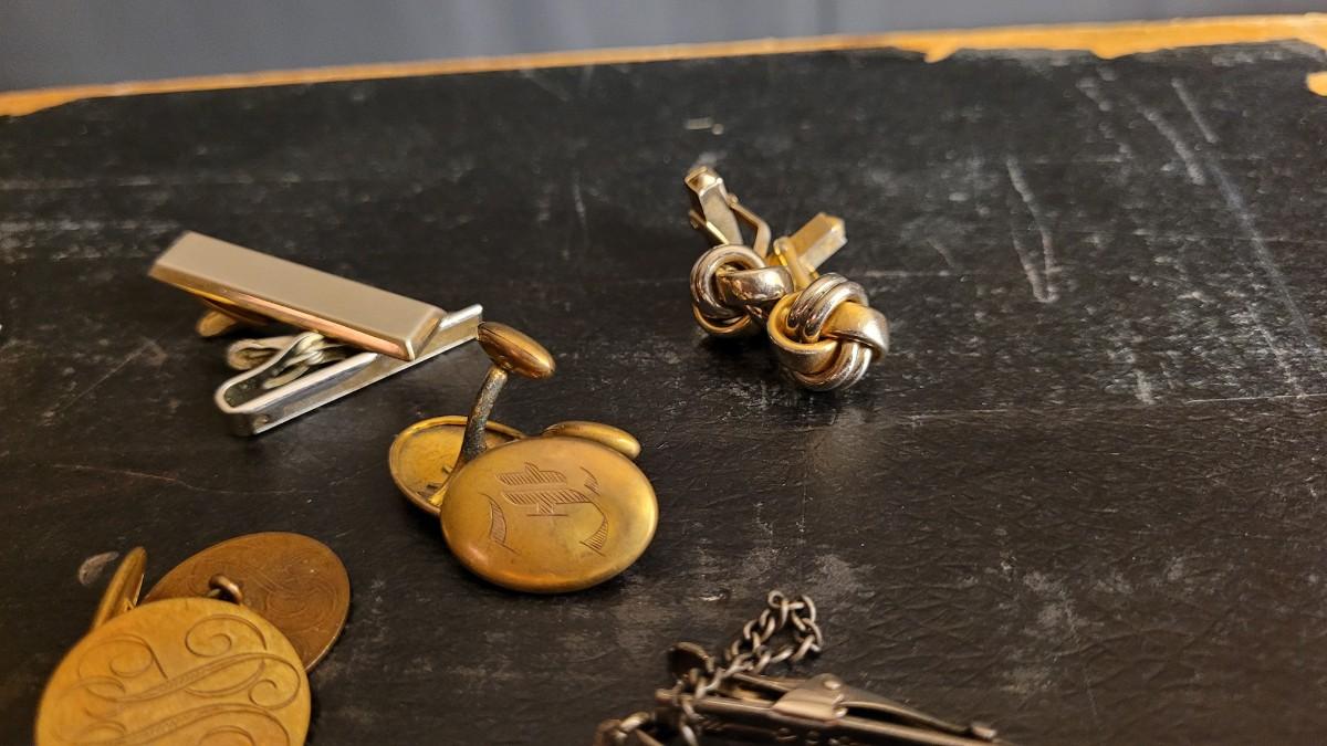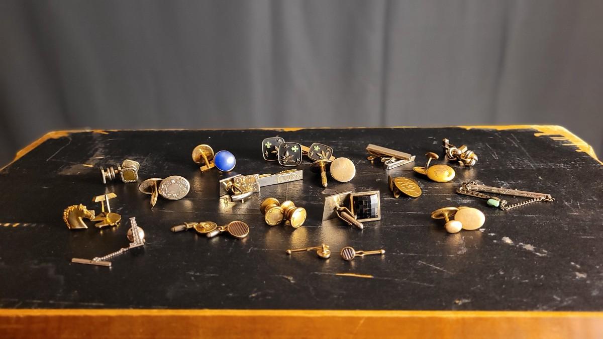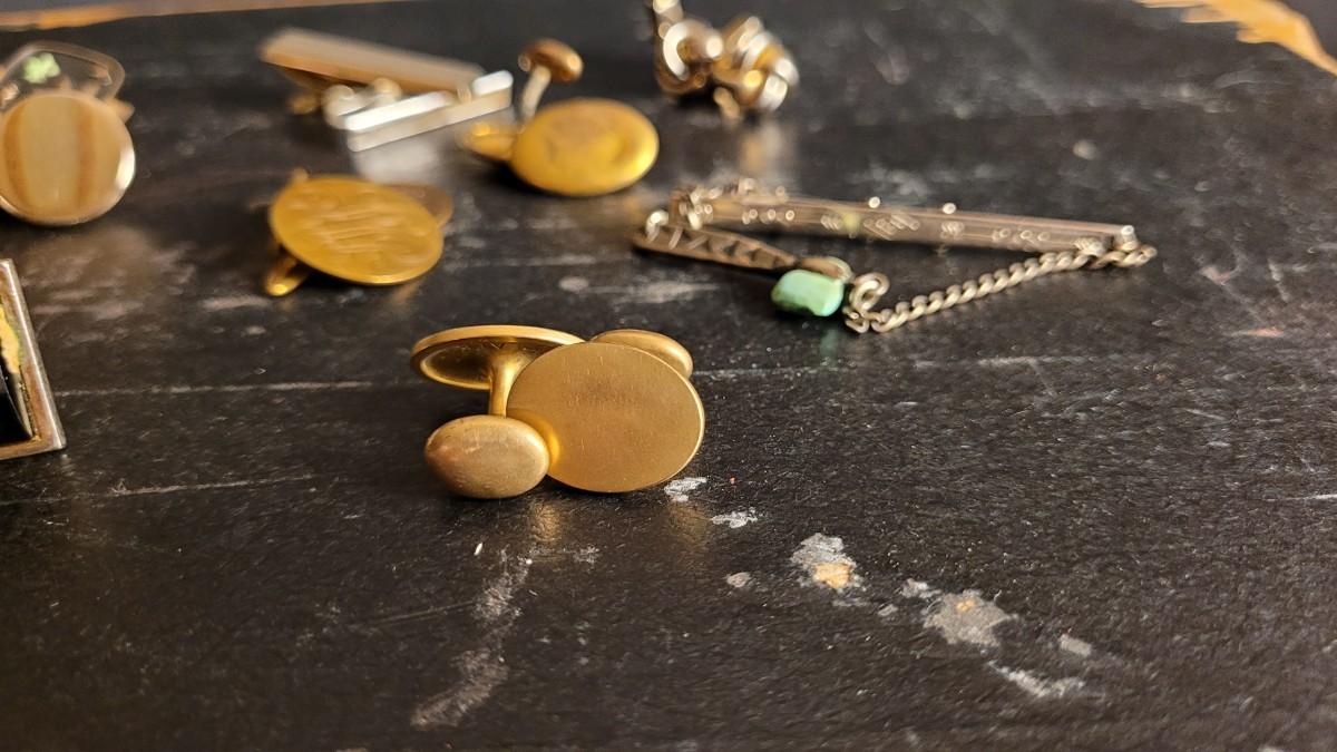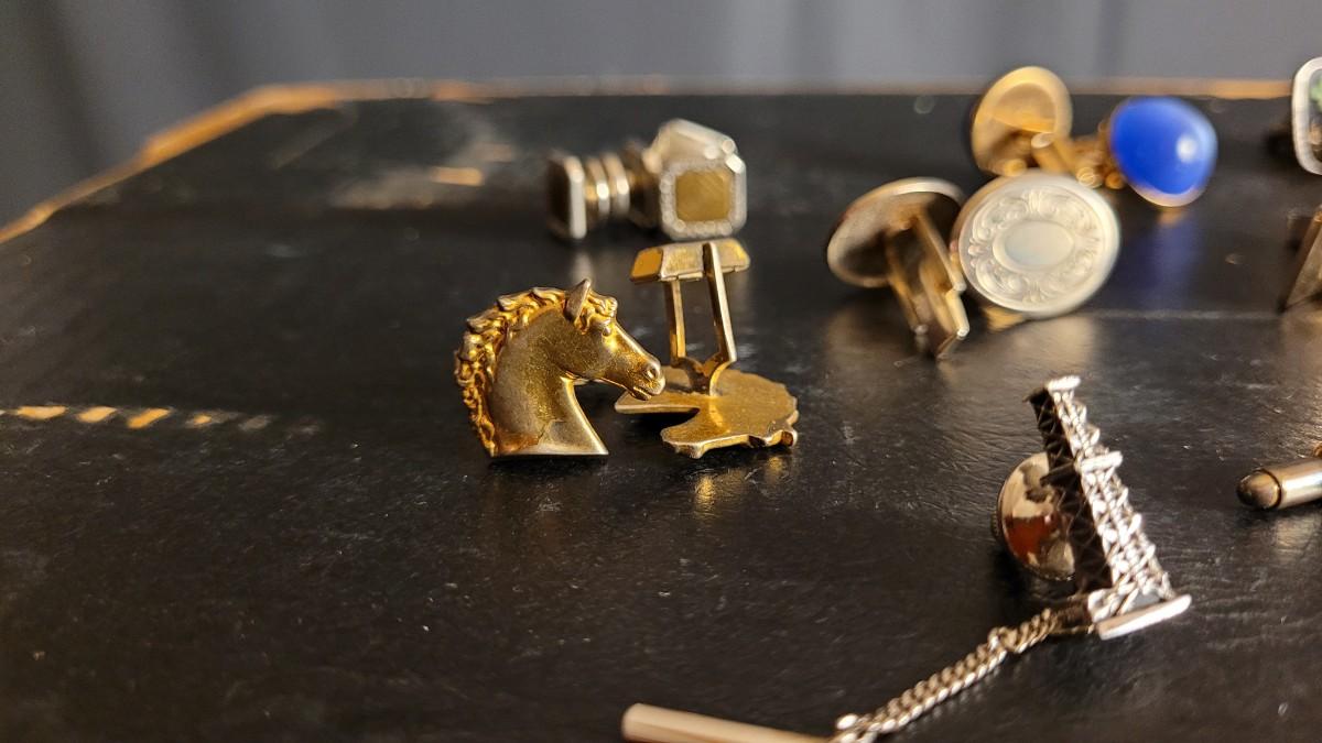 Lot 39: Huge Assortment of Fine Jewelry Fashion Cufflinks and Tie Bars Mid Century Modern