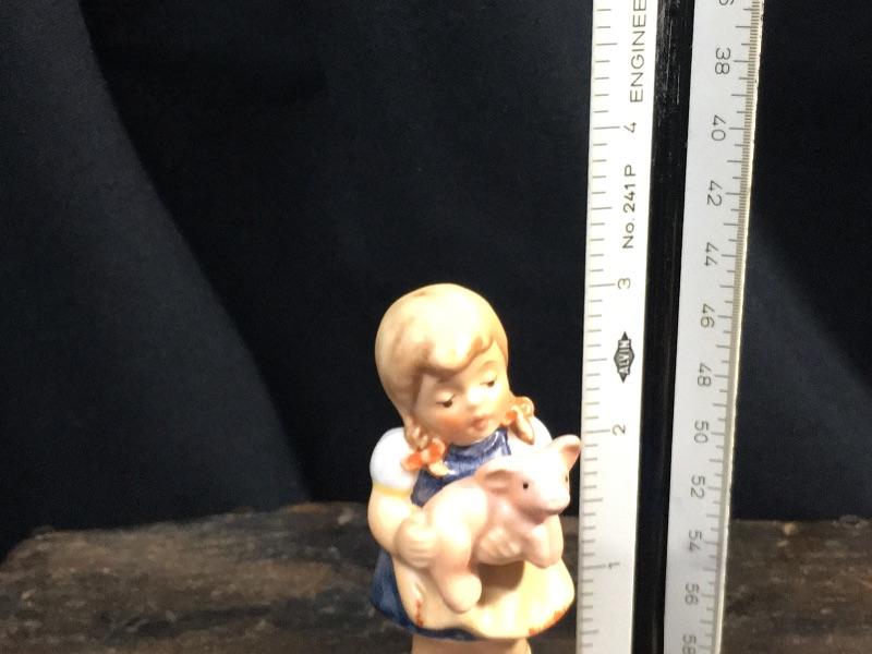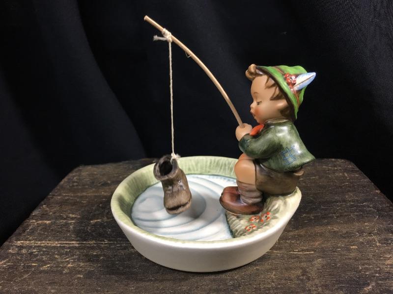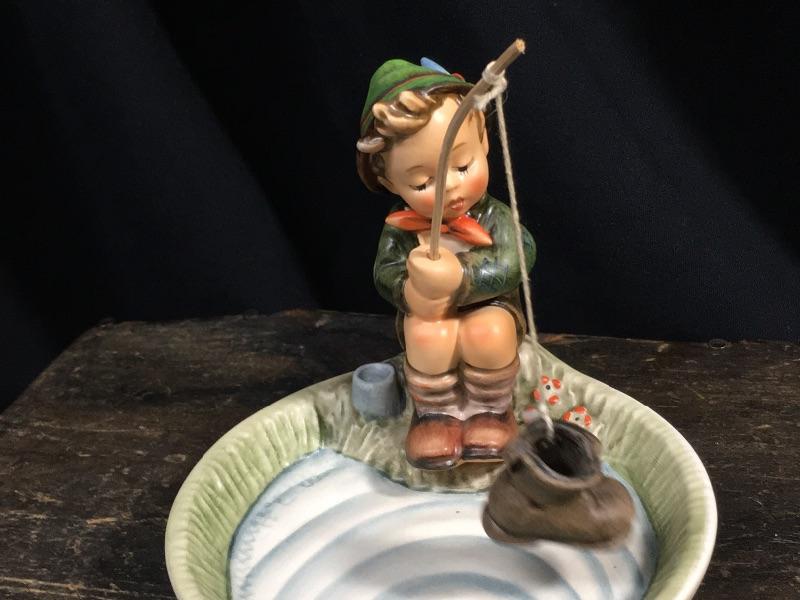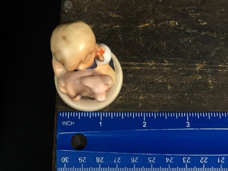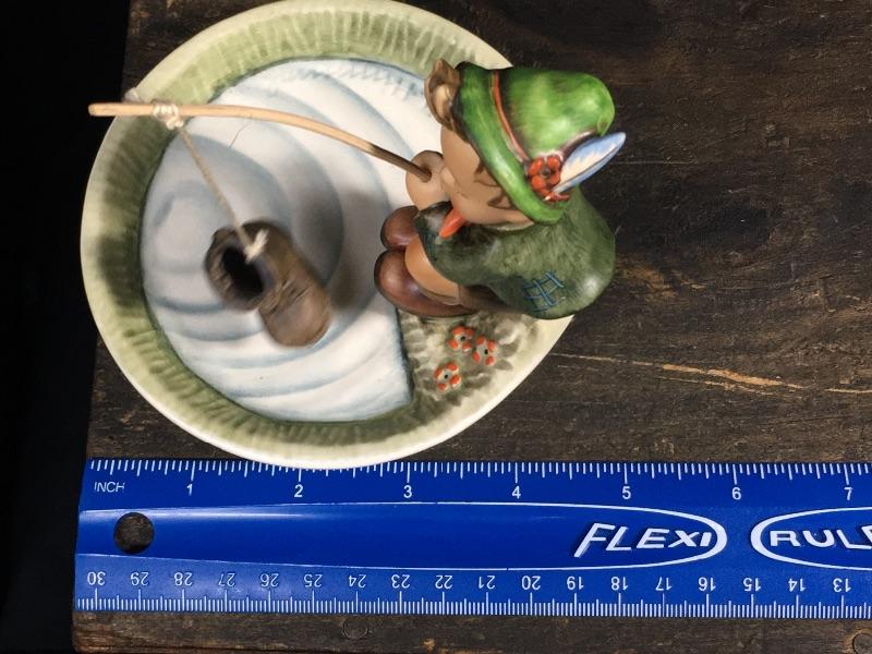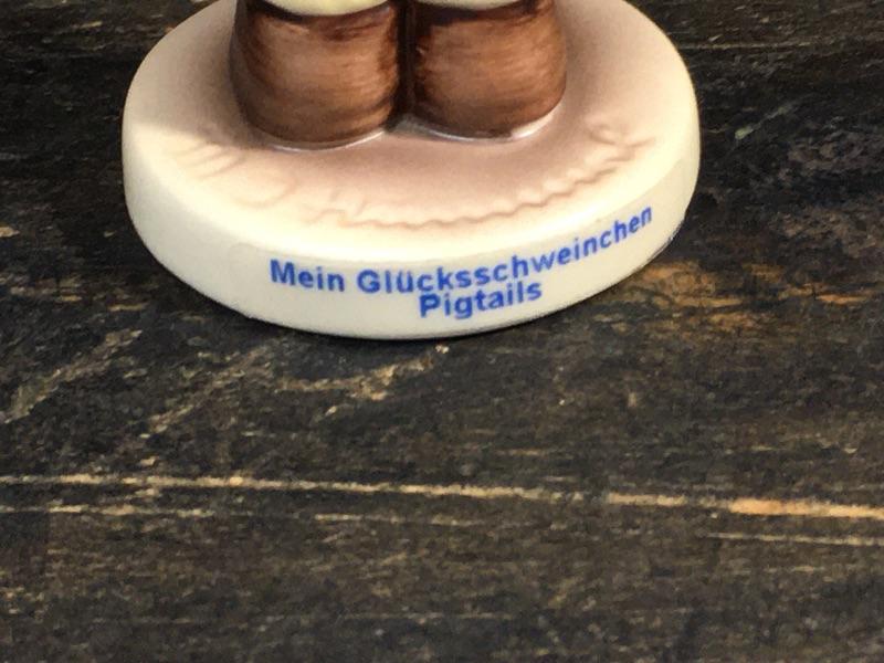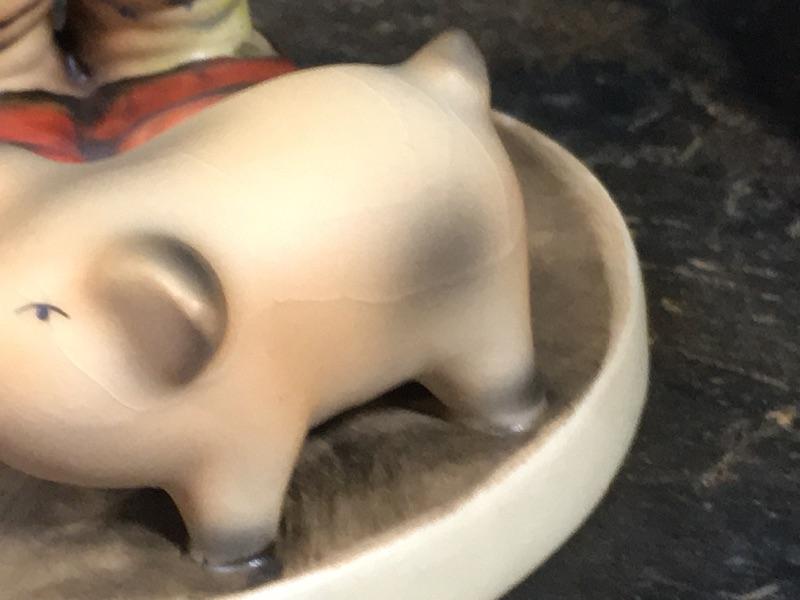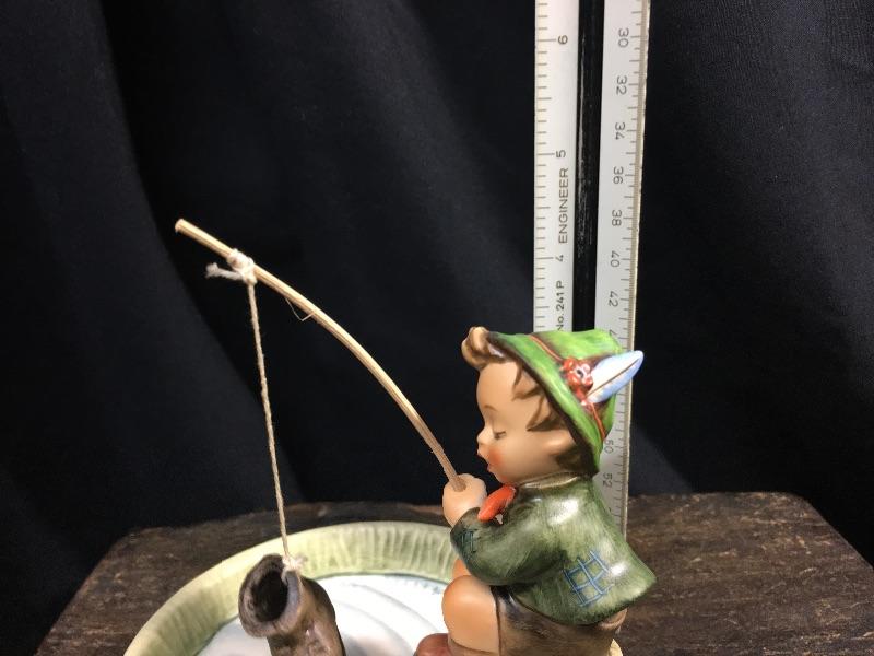 This lot of 3 Hummels contains Hummel #373 “Just Fishing”, #2052 “Pigtails”, and #66 “Farm Boy”. “Just Fishing” is a TMK 6 Hummel and is in mint condition with no signs of crazing. “Pigtails” is a TMK 7 Hummel and is also in mint condition with no signs of crazing. “Farm boy” is a TMK 3SS and has light crazing on the pigs of its figure, as shown in the pictures.