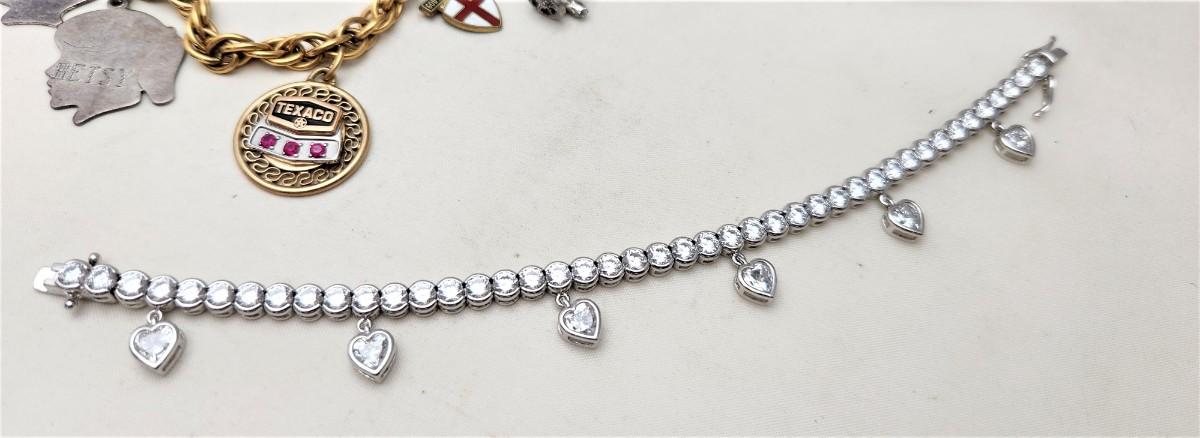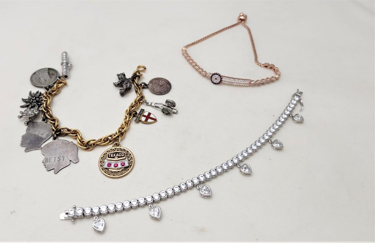 Lot #39  Jewelry Lot - Vintage Charm Bracelet and 2 other bracelets (1 Sterling)