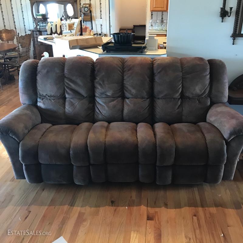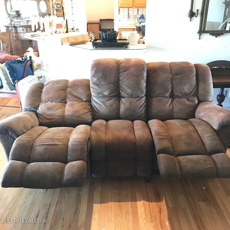 Reddish Brown La Z Boy ultraPlush Fully Reclining Sofa with Suede Leather Like Fabric (Microfiber?)