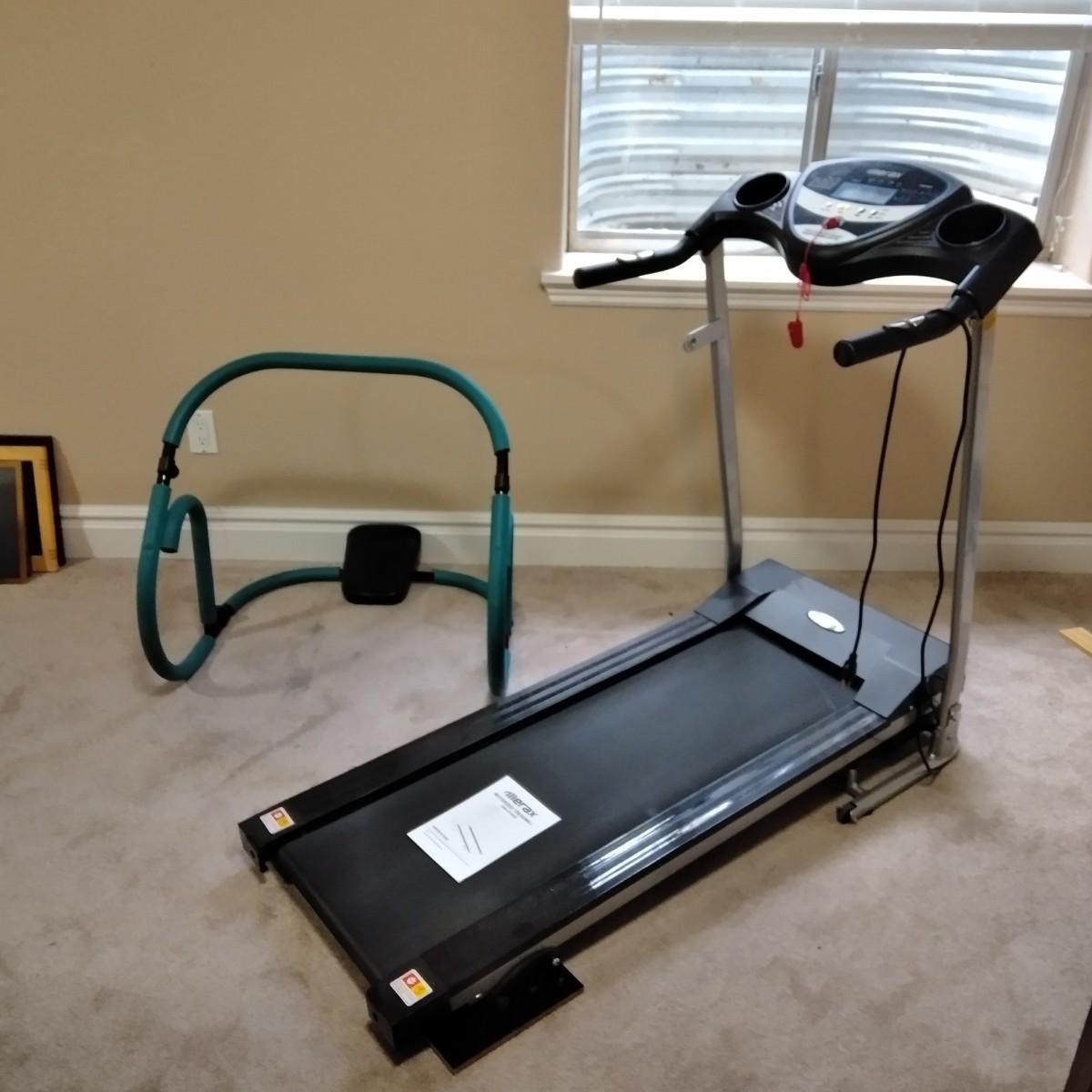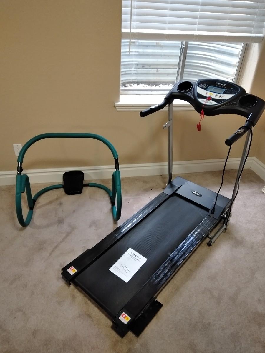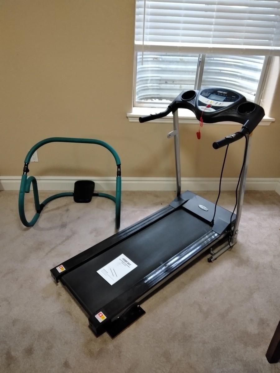 MERAX MOTORIZED VERY LIGHT WEIGHT TREADMILL MODLE KBR-JK1603E WITH INSTRUCTION MANUAL. COMES WITH AN ABDOMINAL EXCERCISE MACHINE