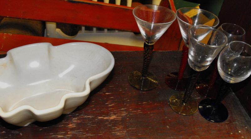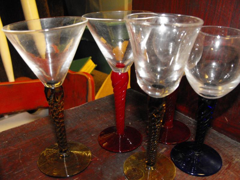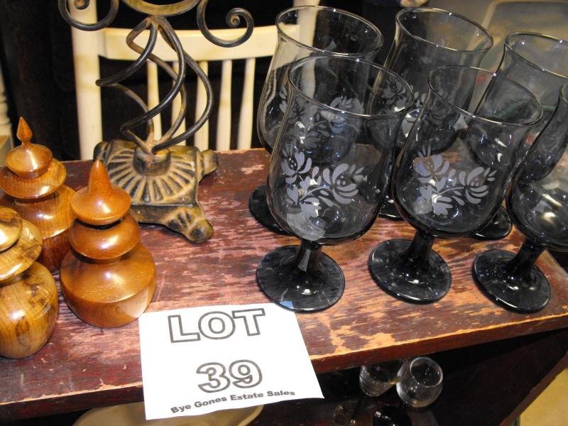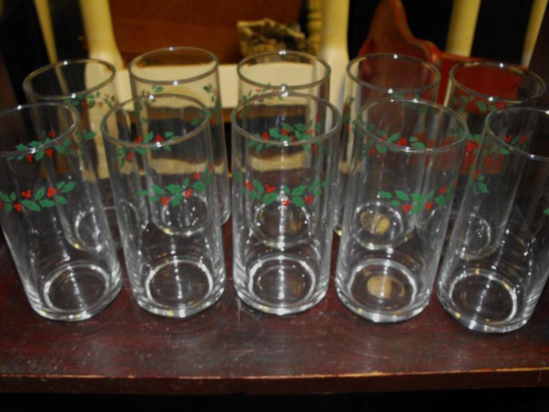 6 Smokey Gray Stemware glasses, 10 Christmas Glasses with Holly and Berries