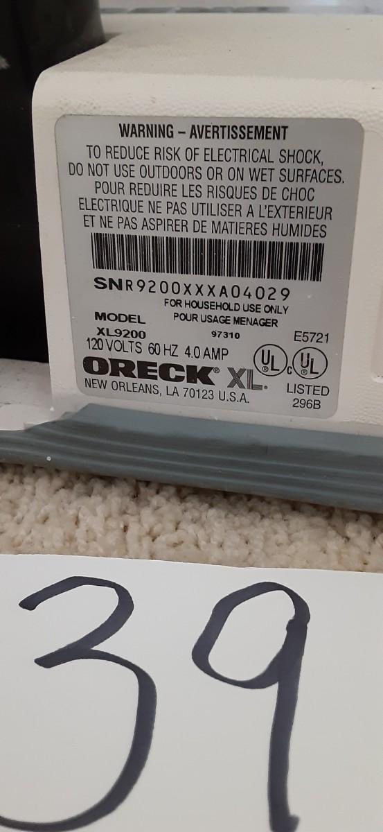 LOT 39 ORECK XL 9200 VACUUM CLEANER