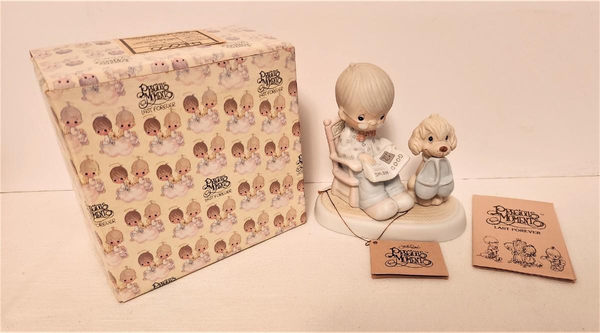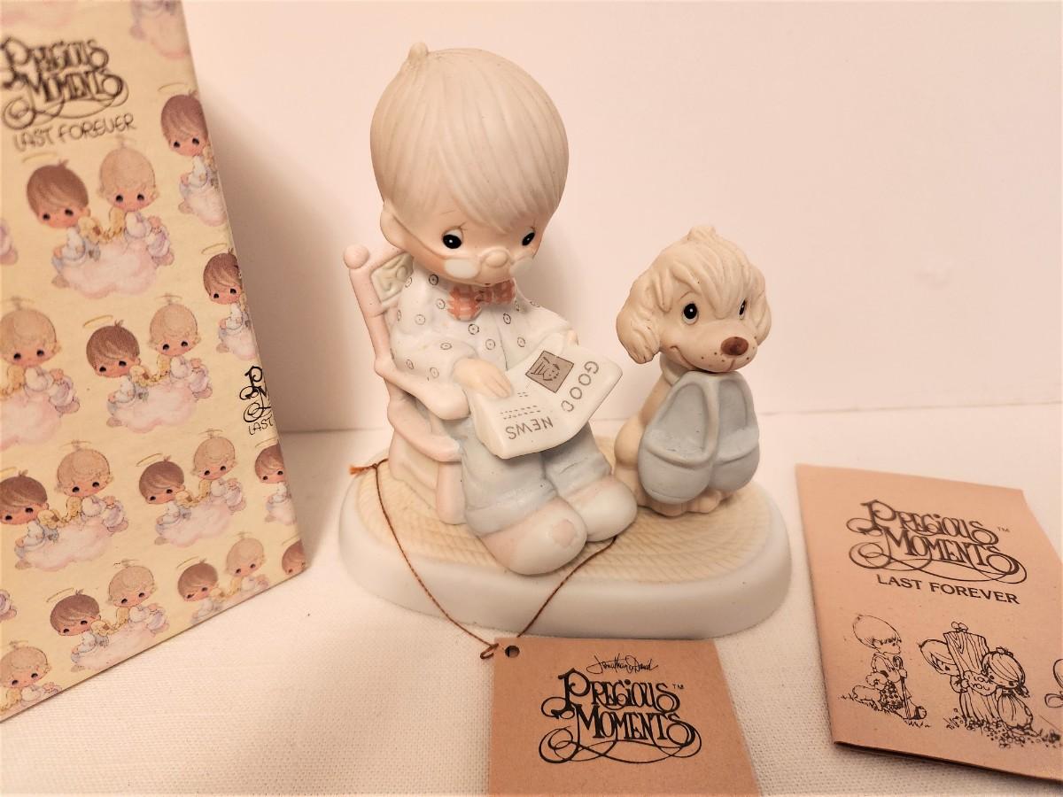 1981 Precious Moments Figurine with box and hangtag - "The Perfect Grandpa", Design E-7160, original price 27.50. Very good condition.