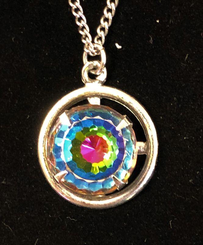 I wasn't sure how to describe this pendant, but with the way the colors are, it looks like a bulls-eye and hence, the name. It is marked Sarah Cov on the back of the pendant and is in excellent condition. The chain is 18" long.