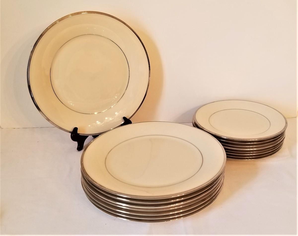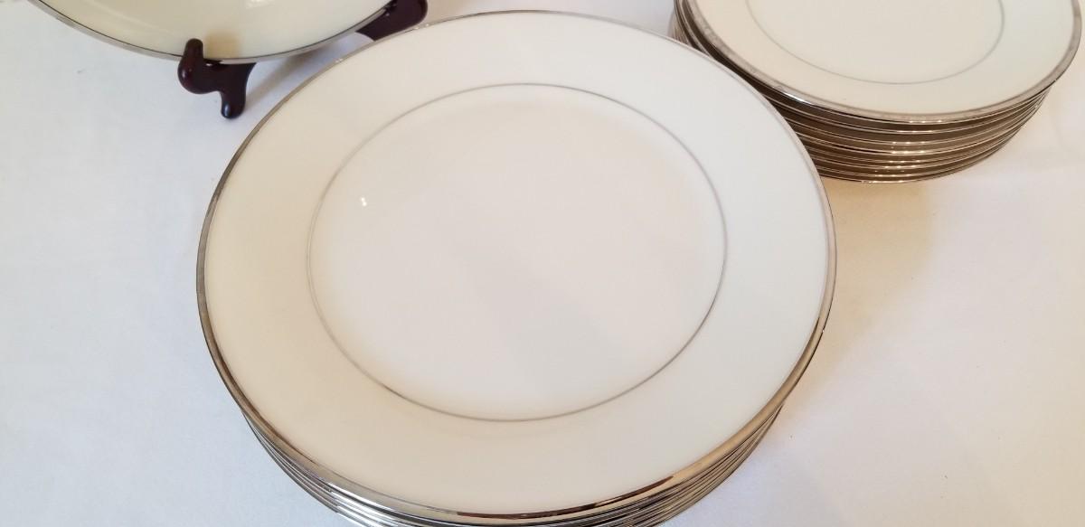 Nice china that's actually dishwasher safe! You get 8 dinner plates and 8 salad plates. Only gently used - platinum style rim. Plates are a generous 10.5" across.