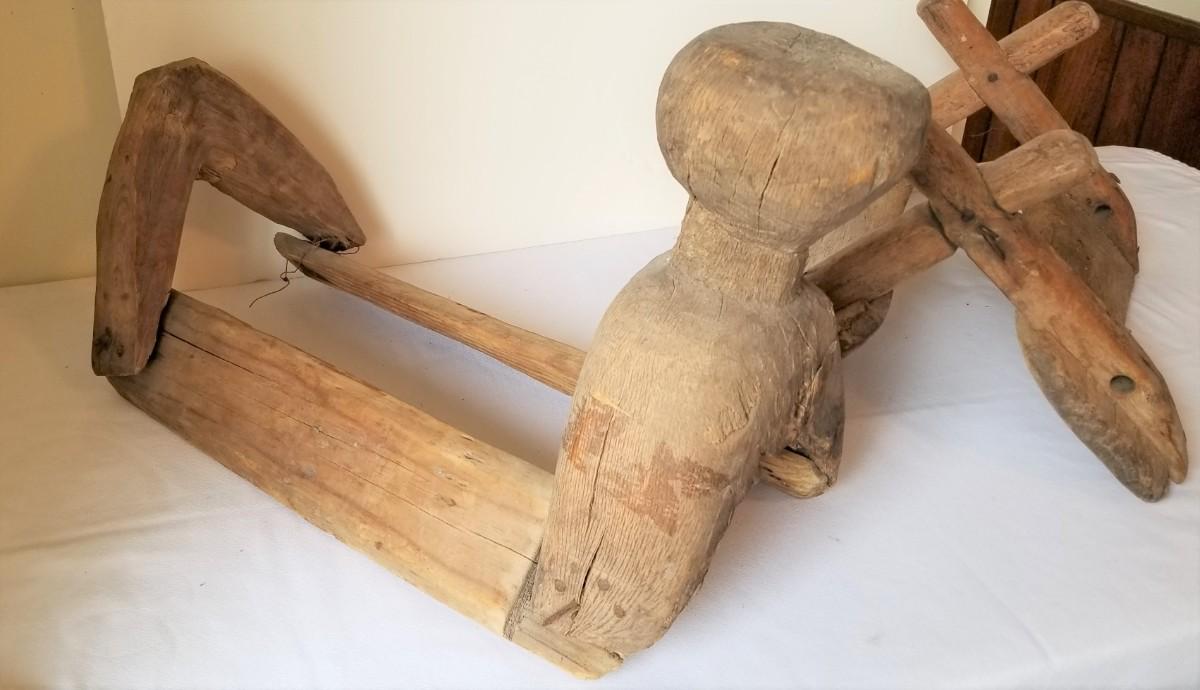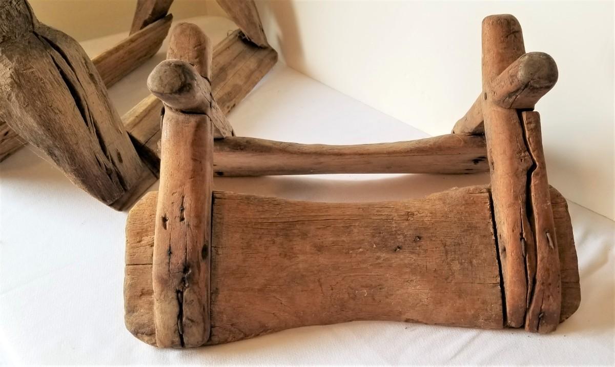 Two antique/vintage camel saddles - both handmade (just when you think you've seen everything.......) The one with the pommel is 11" tall, 17.5" long - the other is 15" long and 8.5" tall.