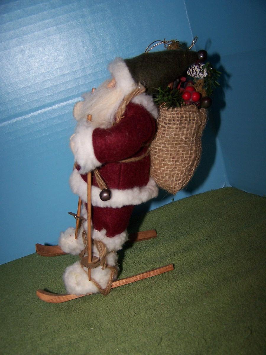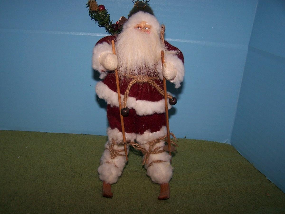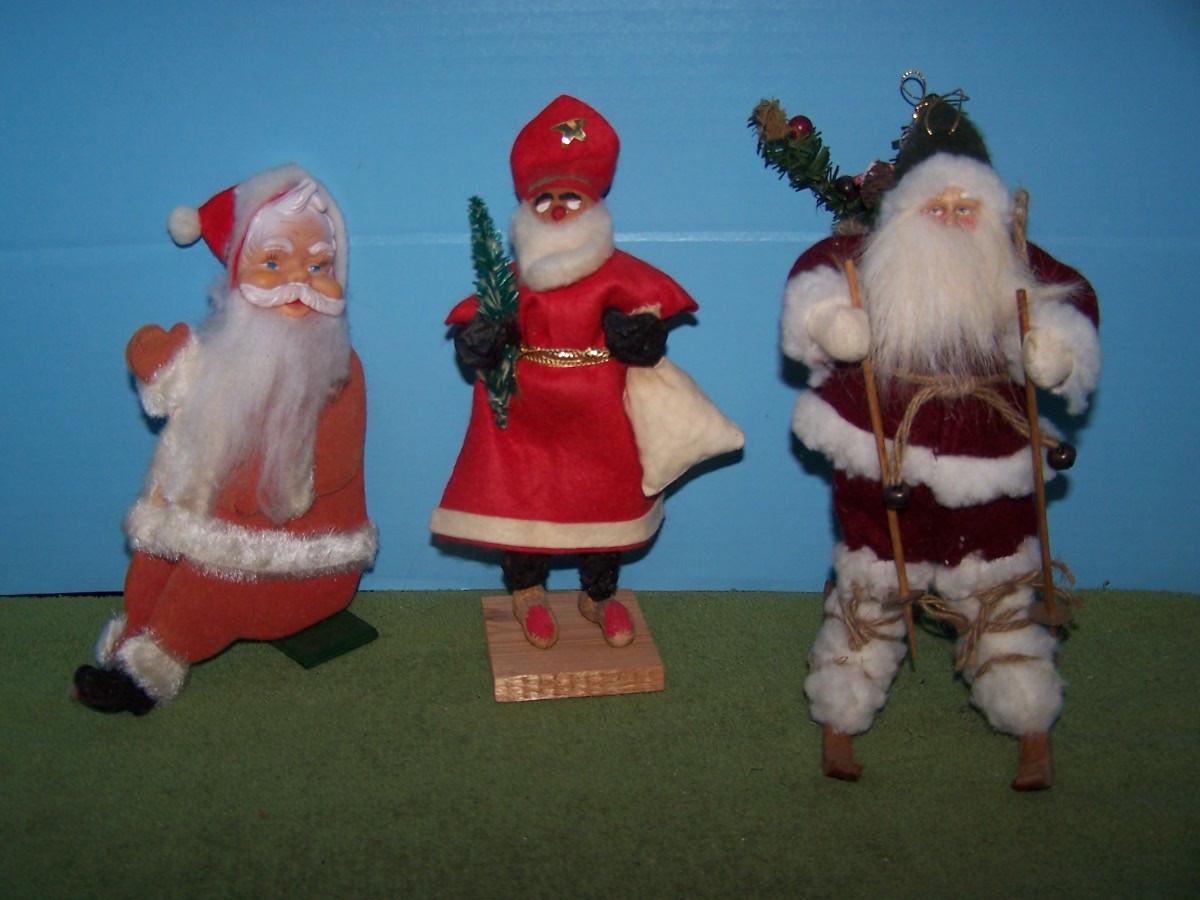 THESE ARE GREAT UNIQUE COLLECTIBLE CHRISTMAS SANTAS!!! UNMARKED.. SITTING SANTA DOESN'T SIT VERY WELL.. SKIING SANTA IS AN ORNAMENT.. PEANUT SHOES SANTA IS 8 1/2'' TALL.. LIGHT WEAR...