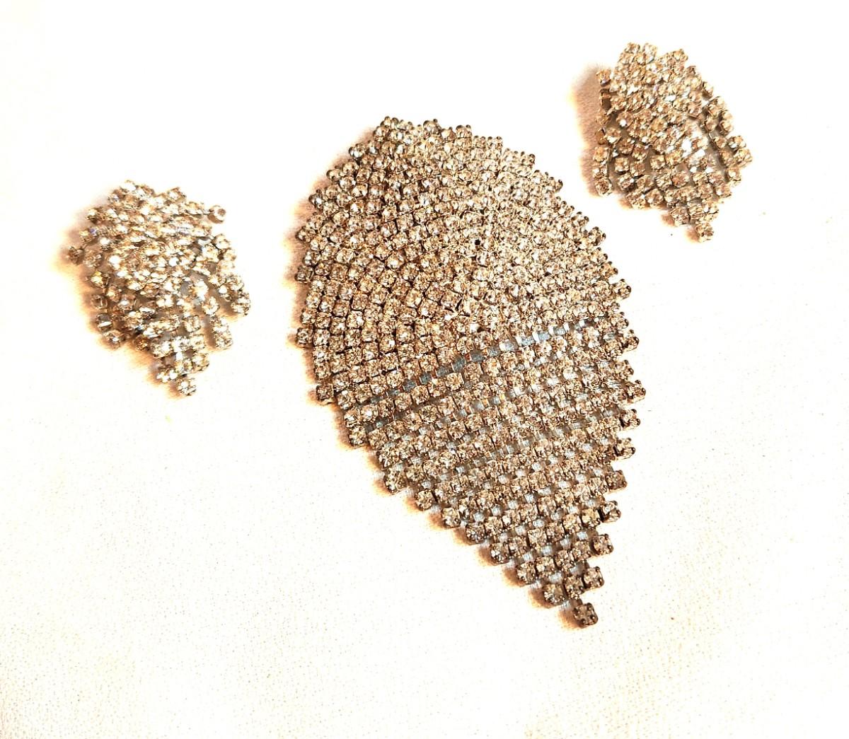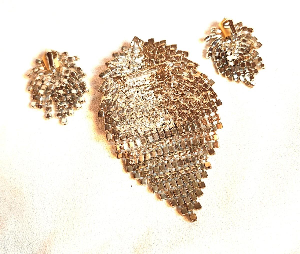 Lot #39 Vintage Rhinestone Brooch and Clip Earring Set - Worn to the White House - Blingy!