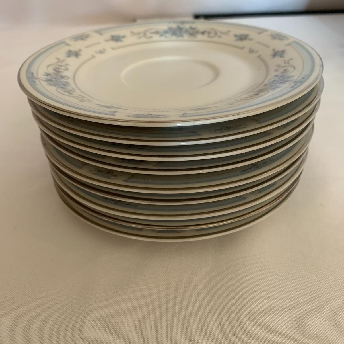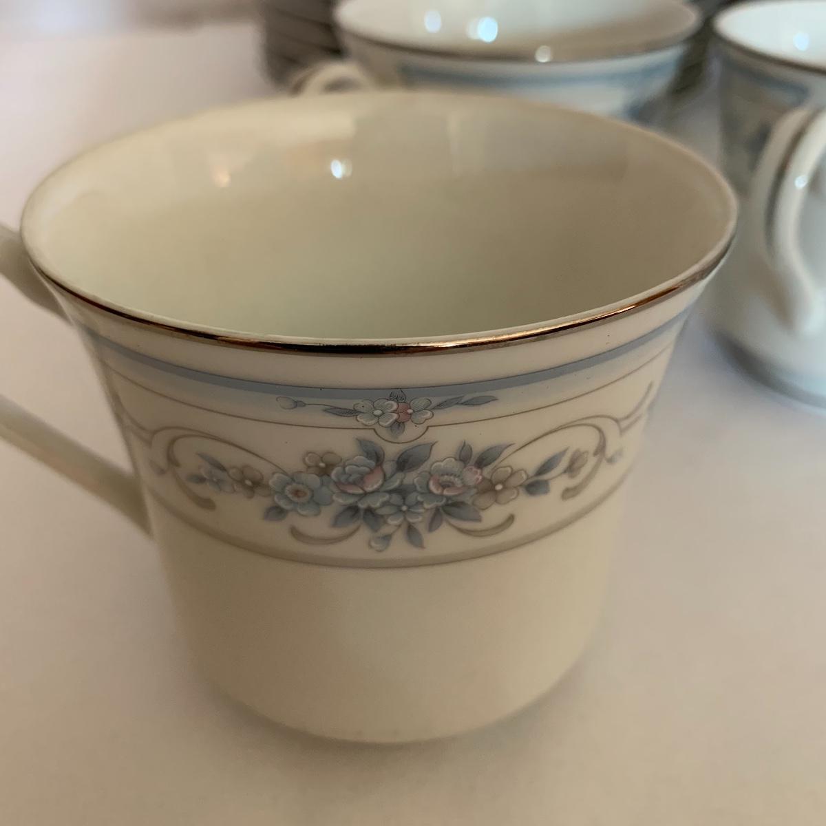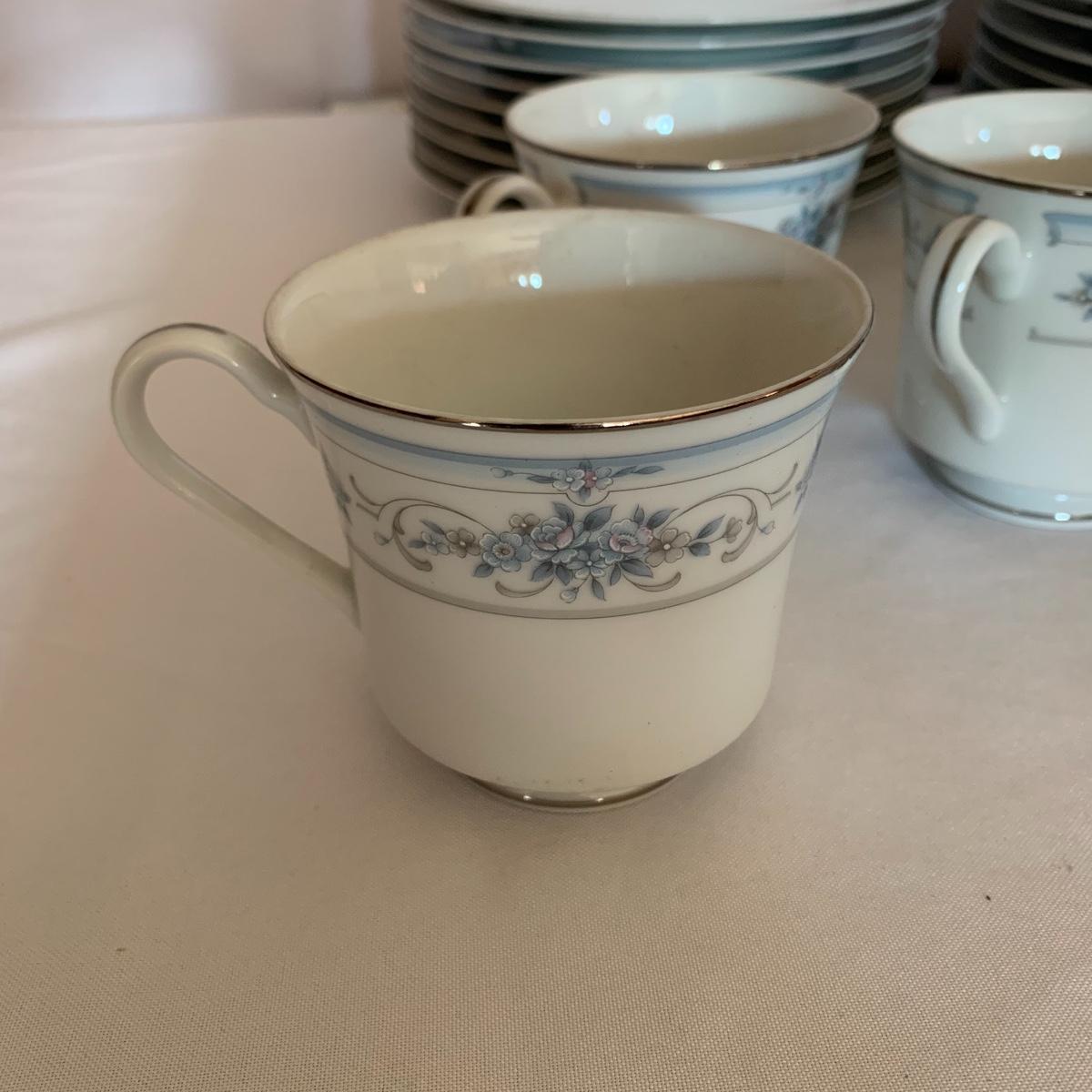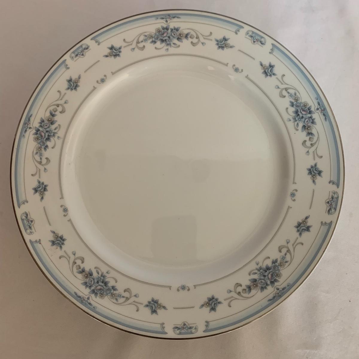 This China set is just stunning! Nitro Claridge is the manufacturer of this collection. All pieces feature a beautiful blue and silver flower design and silver rims. This set includes nine 11” dinner plates, nine 8” salad plates, and nine 6” desert plates. All pieces are in good condition, and are free of cracks, chips, and crazing. Local pick up only.