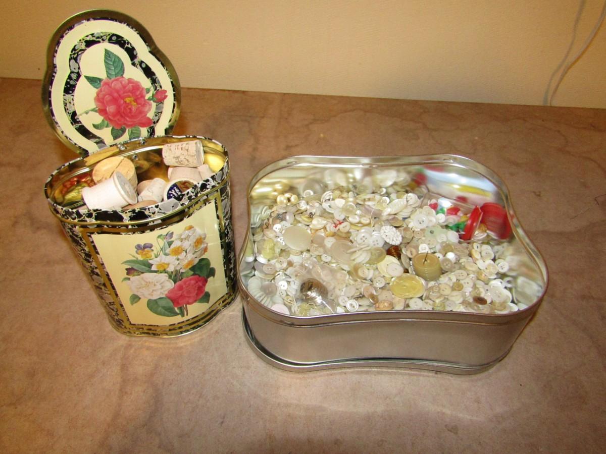 LOT 390 VINTAGE BUTTONS AND WOODEN THREAD SPOOLS