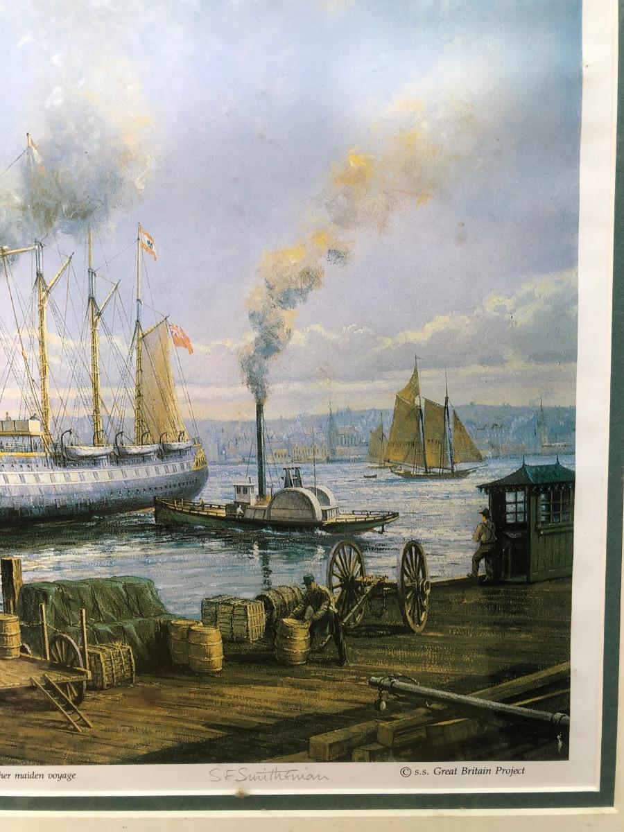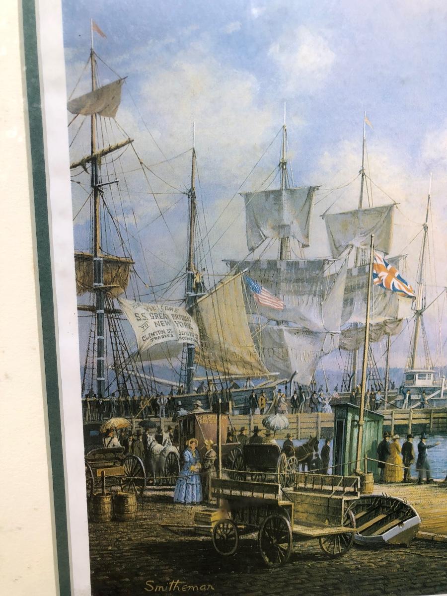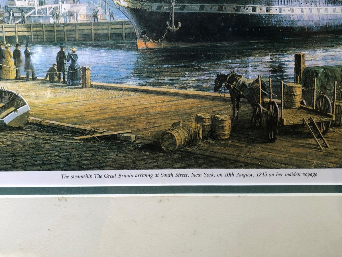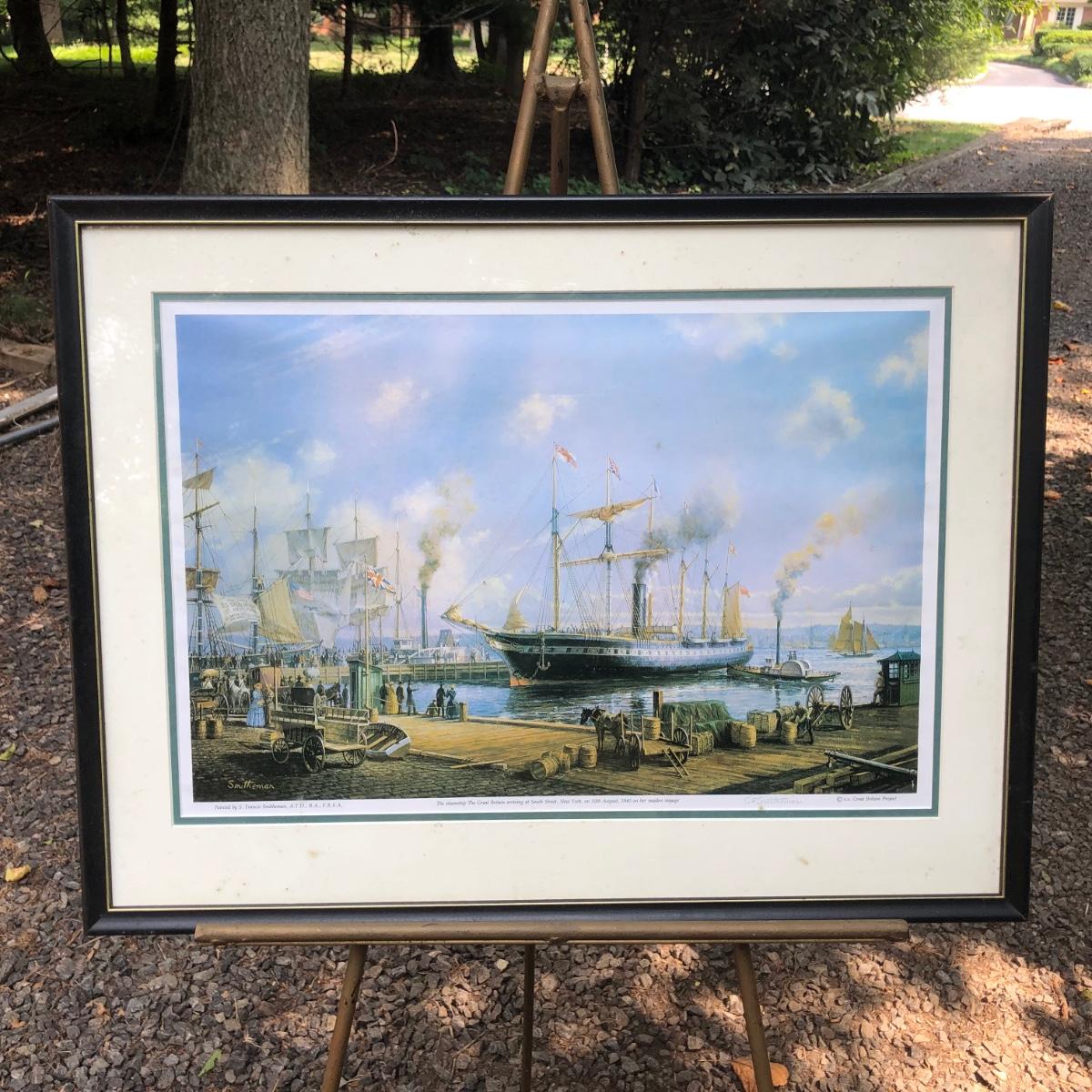 LOT 390G: Framed & Signed Print of The Steamship The Great Britain arriving at South Street, New York on 10 August 1845 by S. Francis Smitheman (British, 1927-2016)