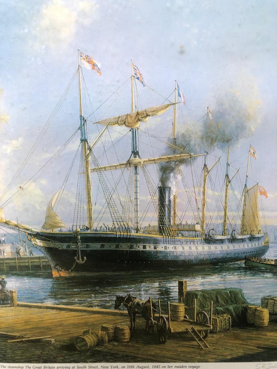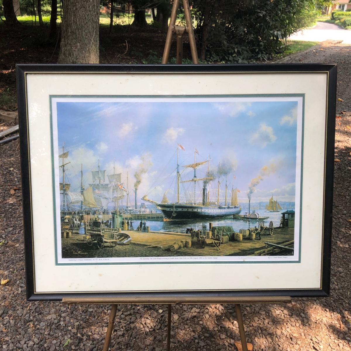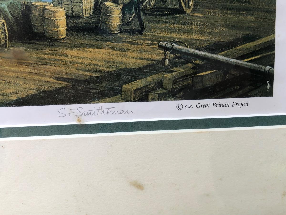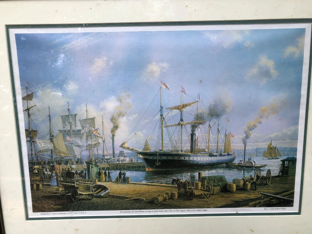 LOT 390G: Framed & Signed Print of The Steamship The Great Britain arriving at South Street, New York on 10 August 1845 by S. Francis Smitheman (British, 1927-2016)