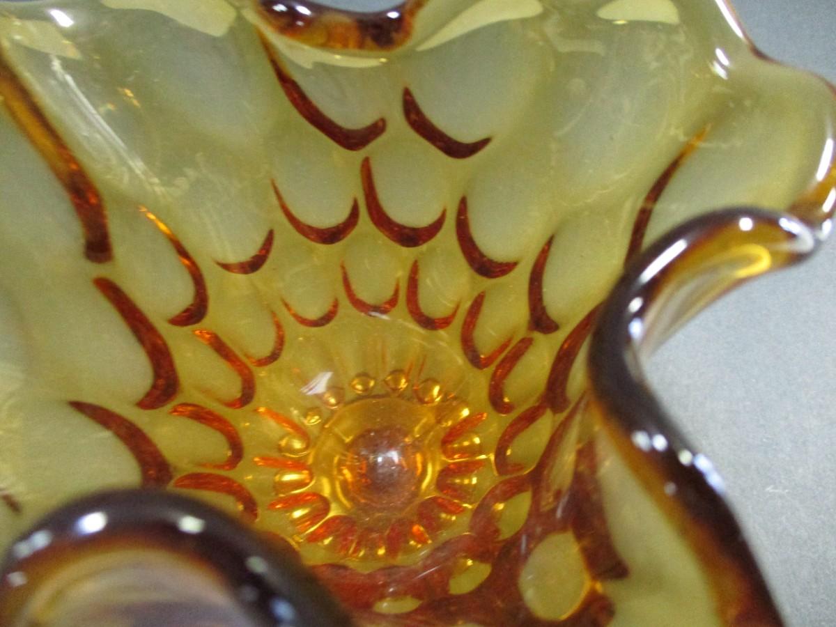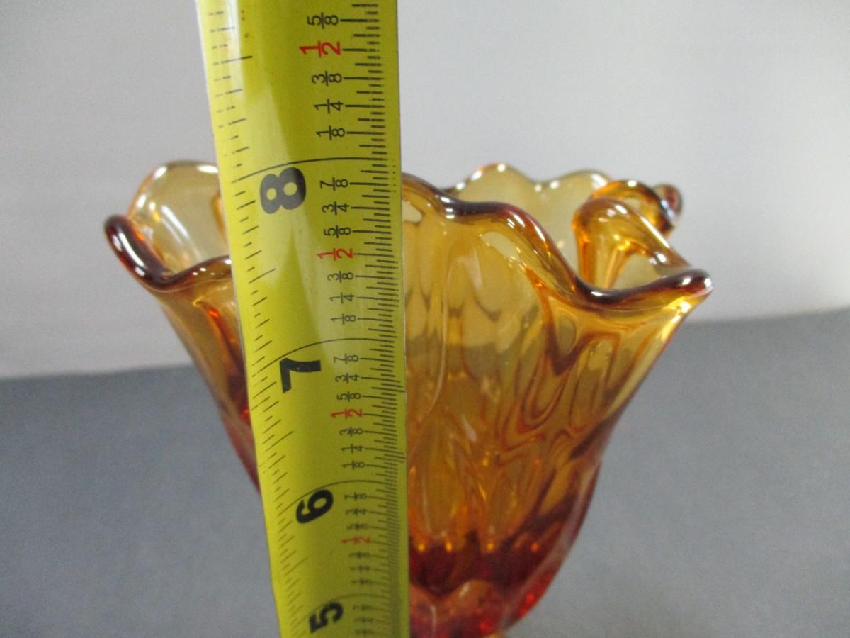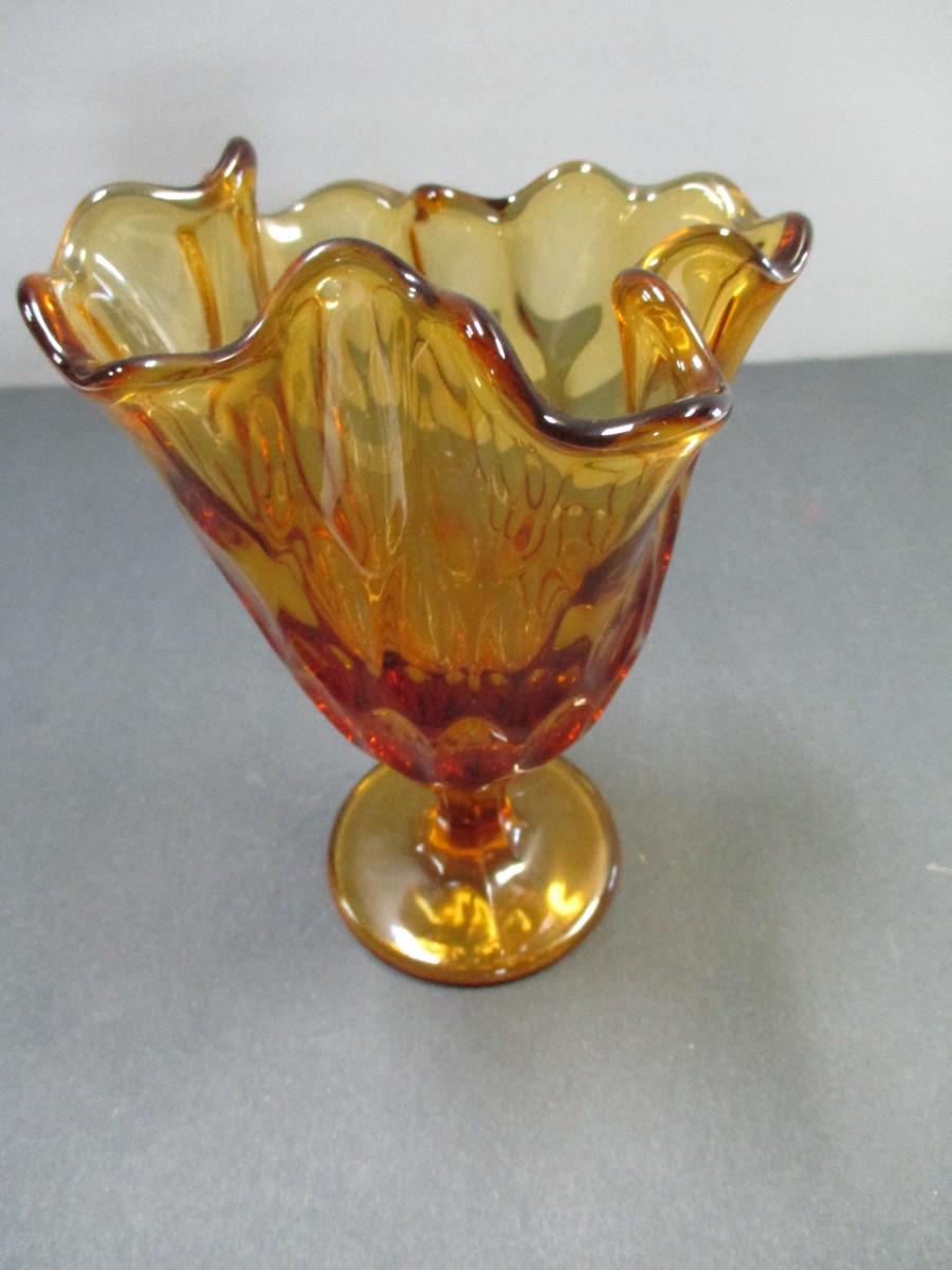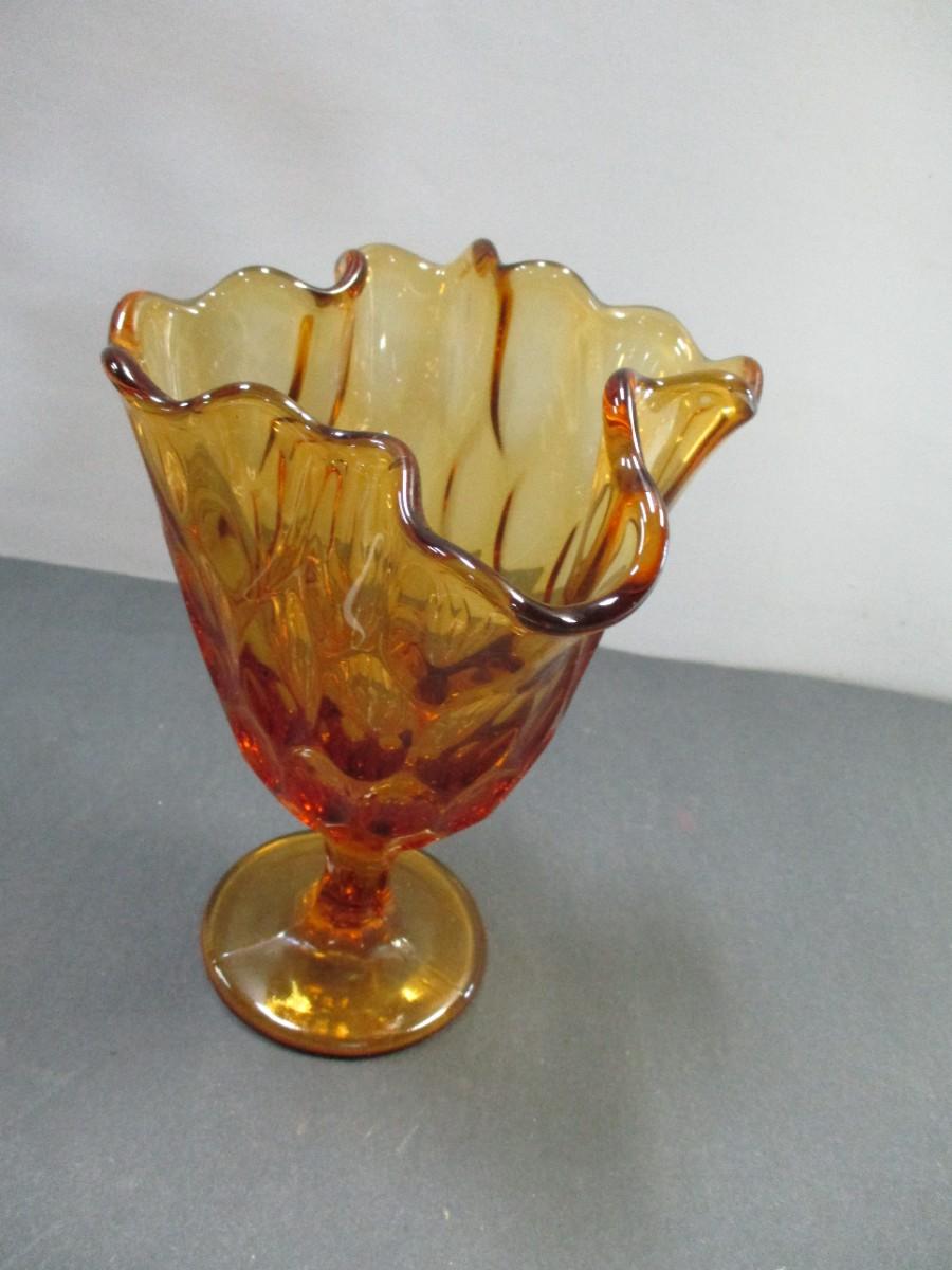 Lot 391 - Amber Ruffled Top Pedestal Vase