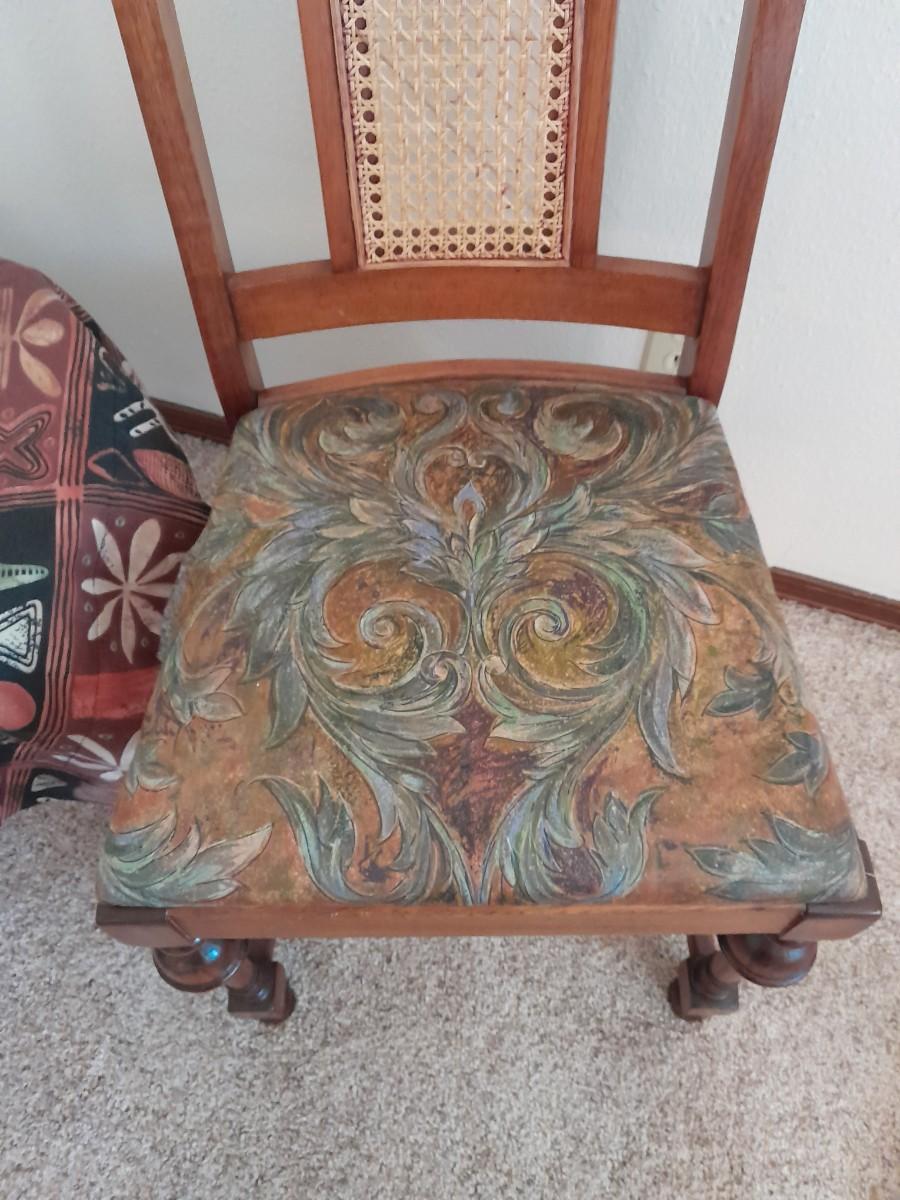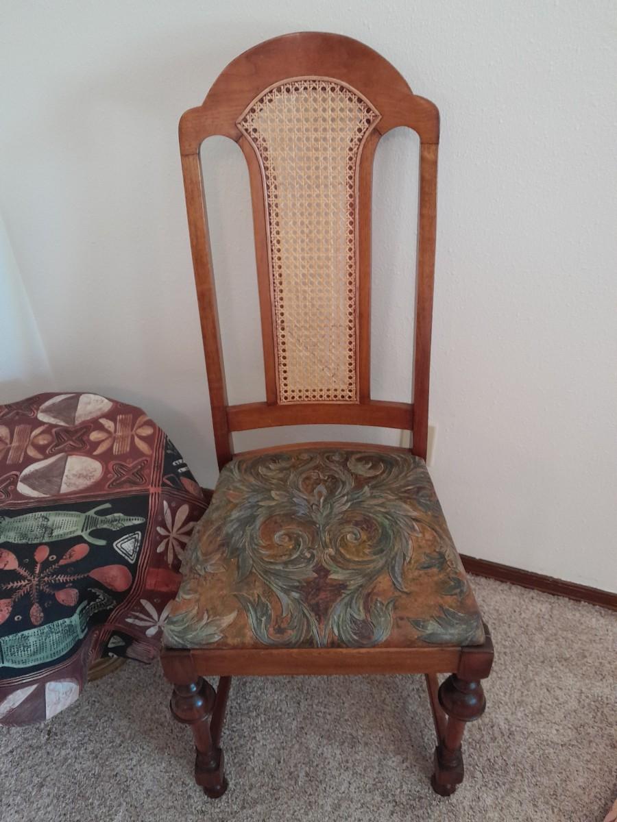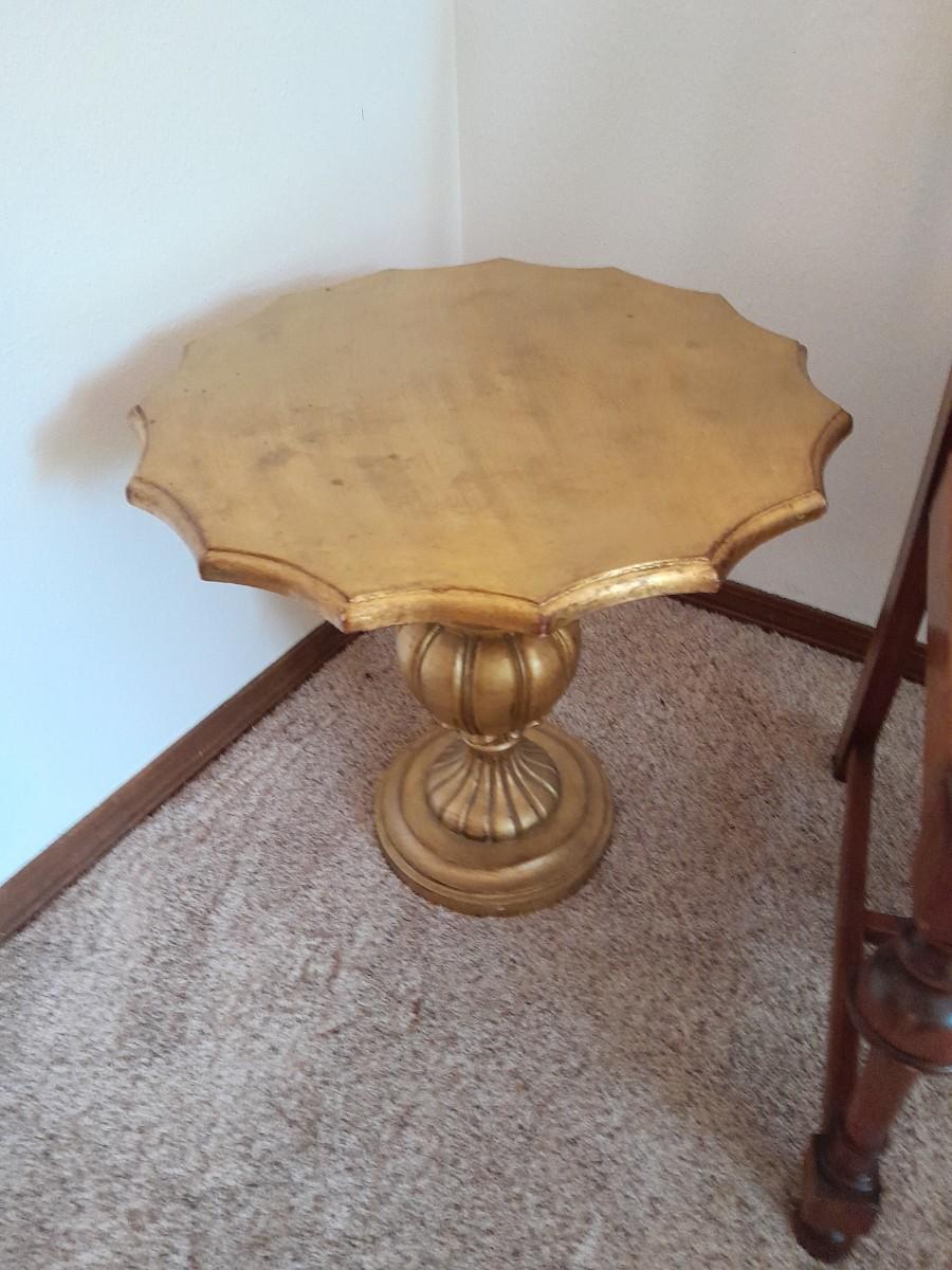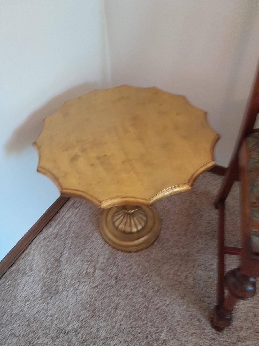 LOT 391 CHAIR AND SMALL GOLD COLORED TABLE