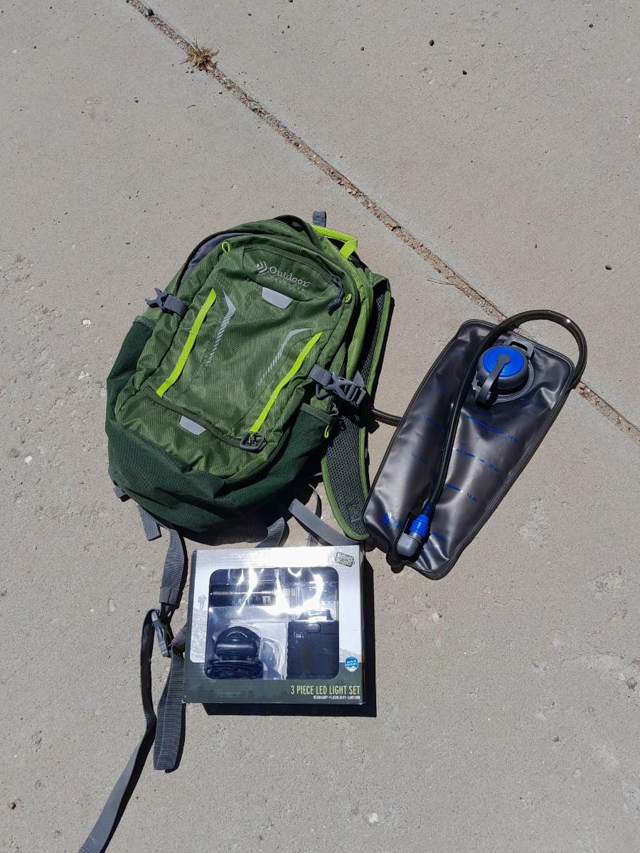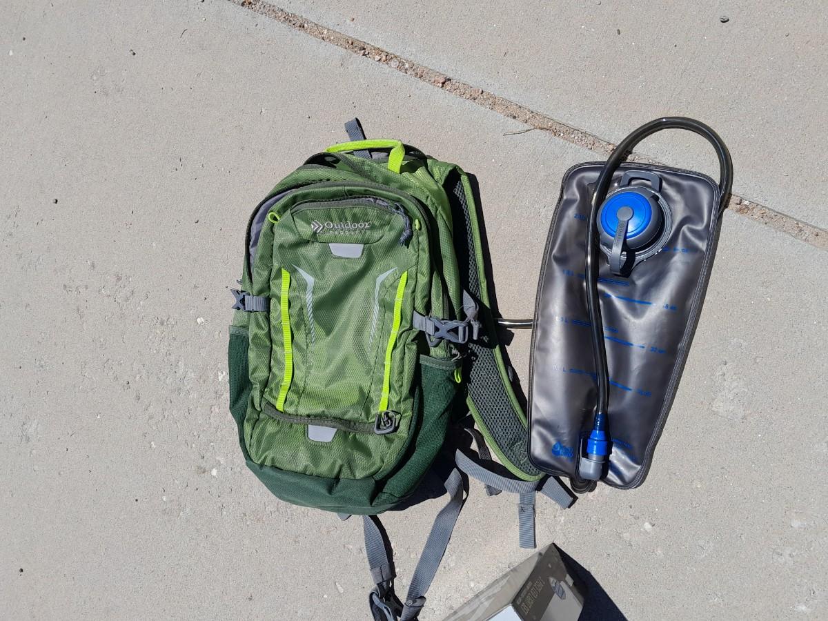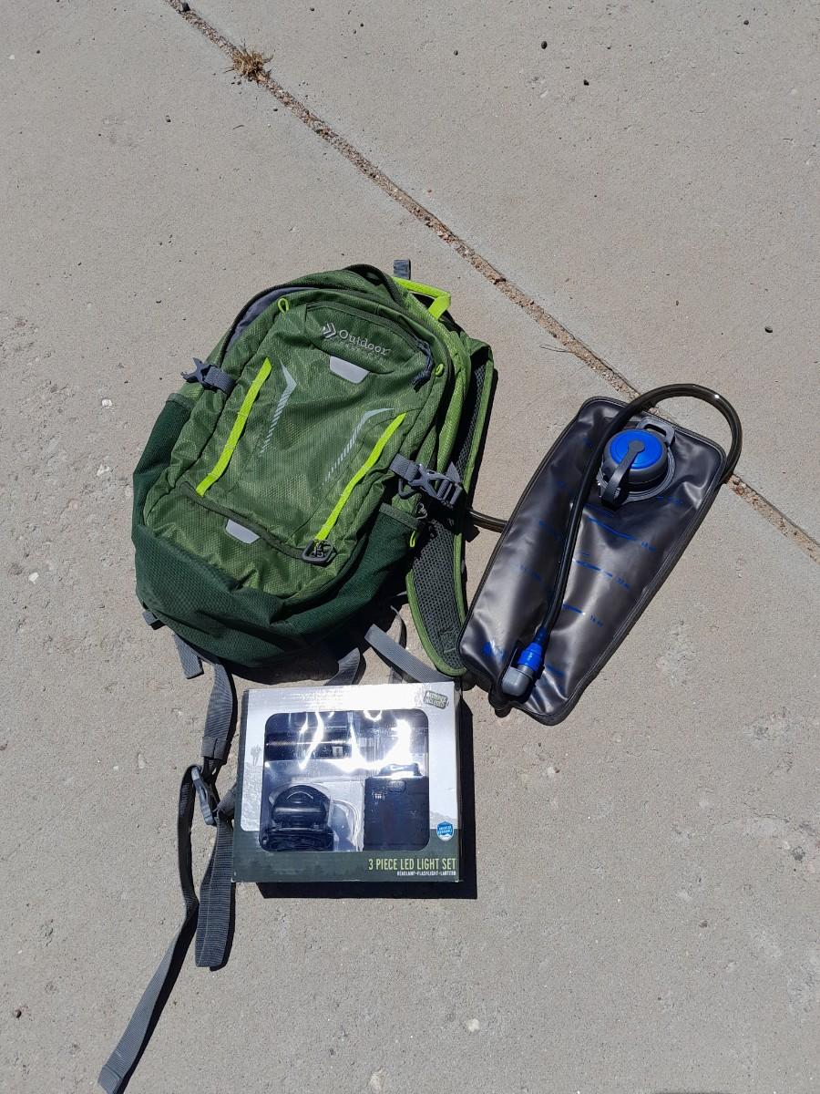 OUTDOOR PRODUCTS BACKPACK WITH WATER BLADDER AND NEW LED LIGHT SET