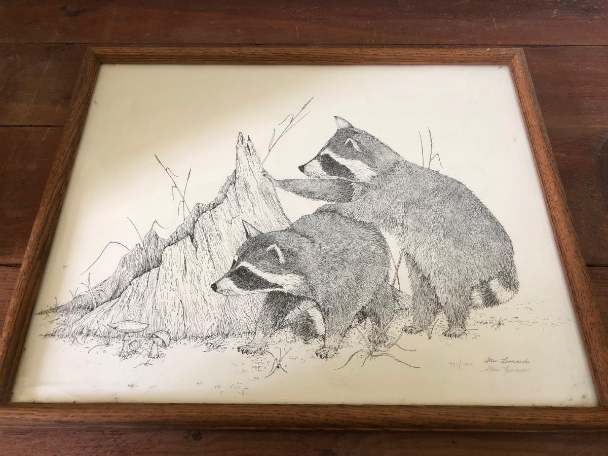 LOT 391Z: Signed & Numbered Steve Leonardi Racoon Art Print LE 771/1000