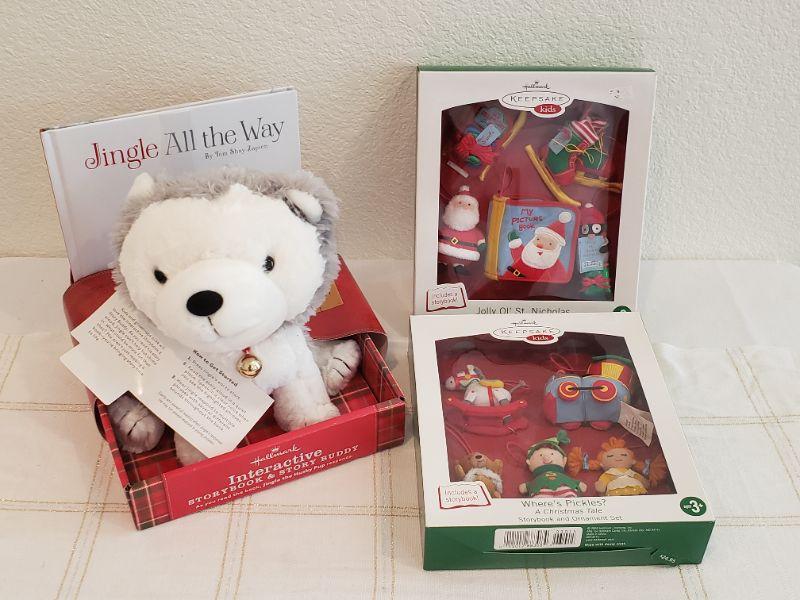 Lot 394: New JINGLE book and Plushie & 2 Boxes of Soft Ornaments