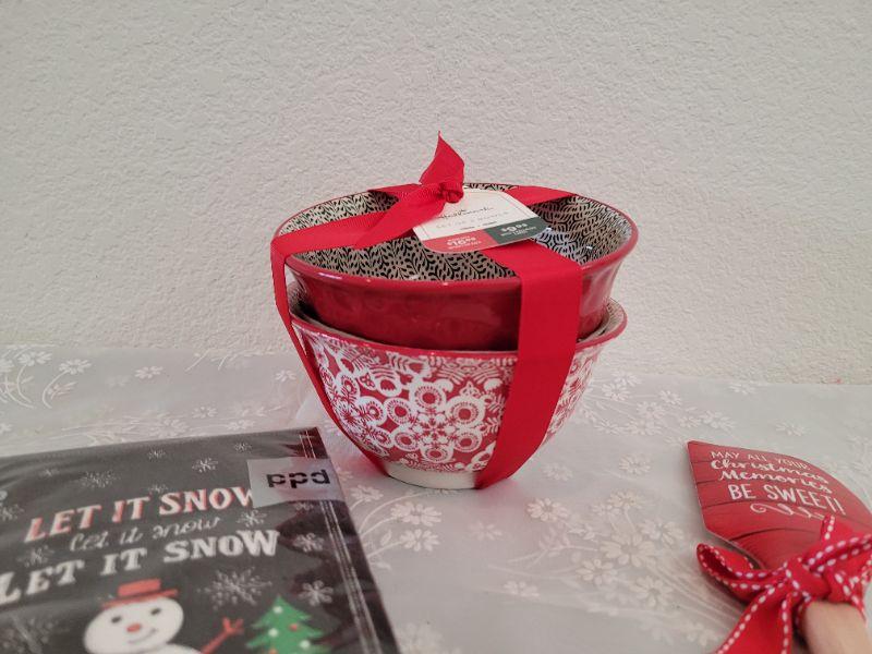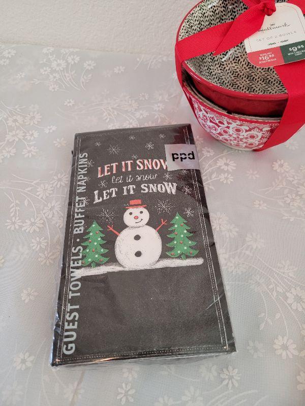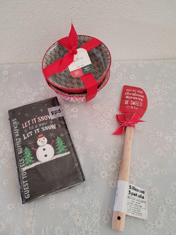 Lot 392: New Christmas Kitchen Small Bowls, Silicone Spatula and Disposable Napkins