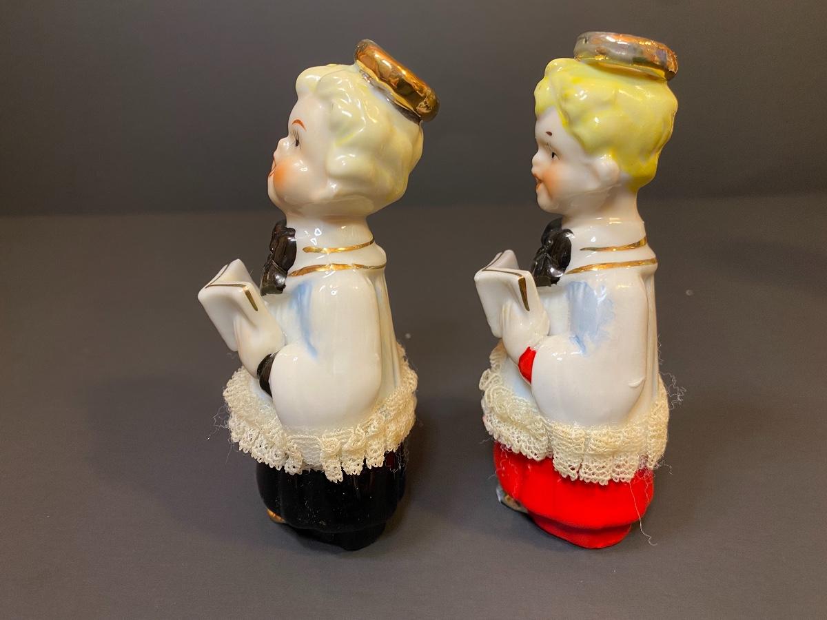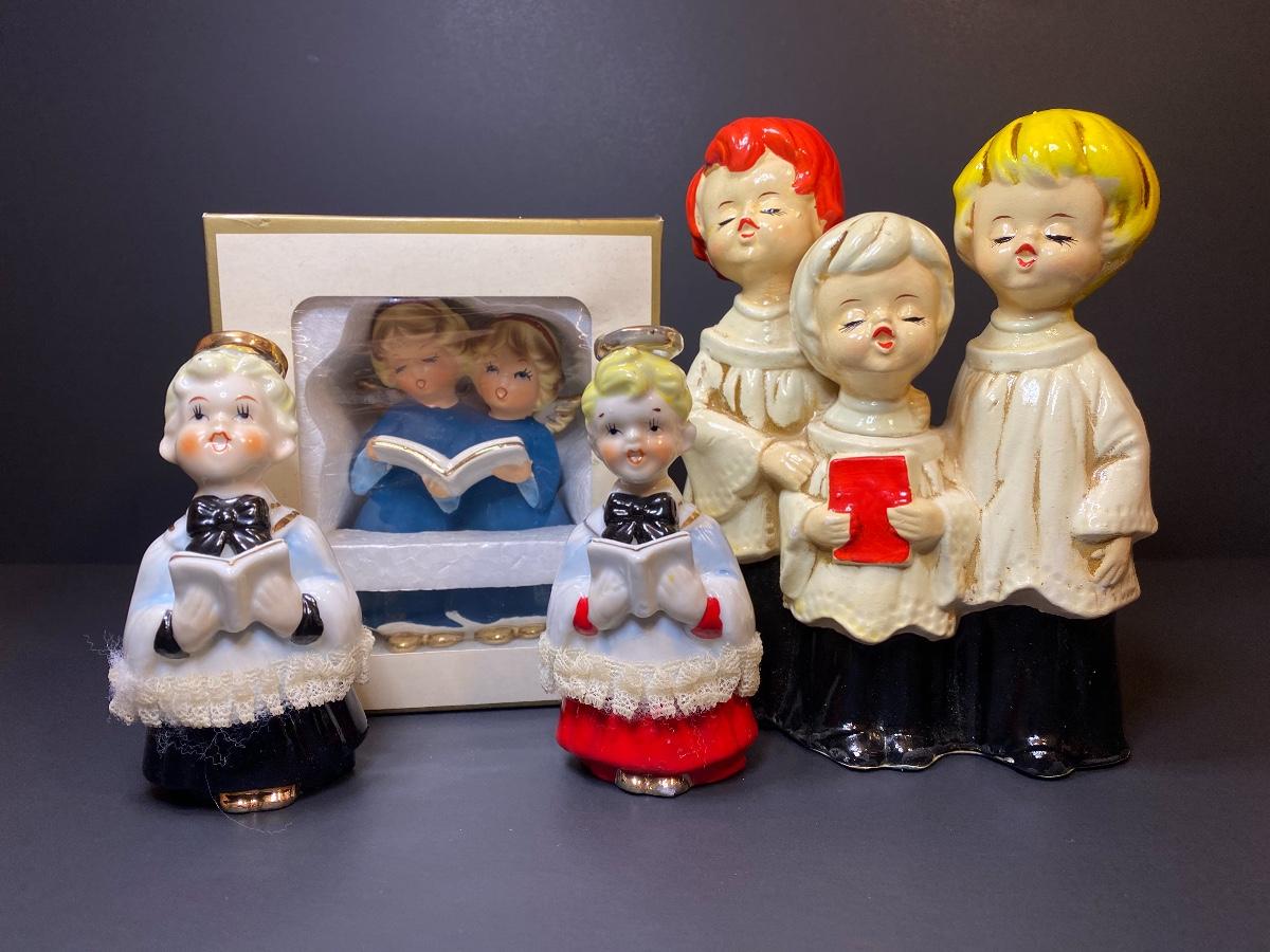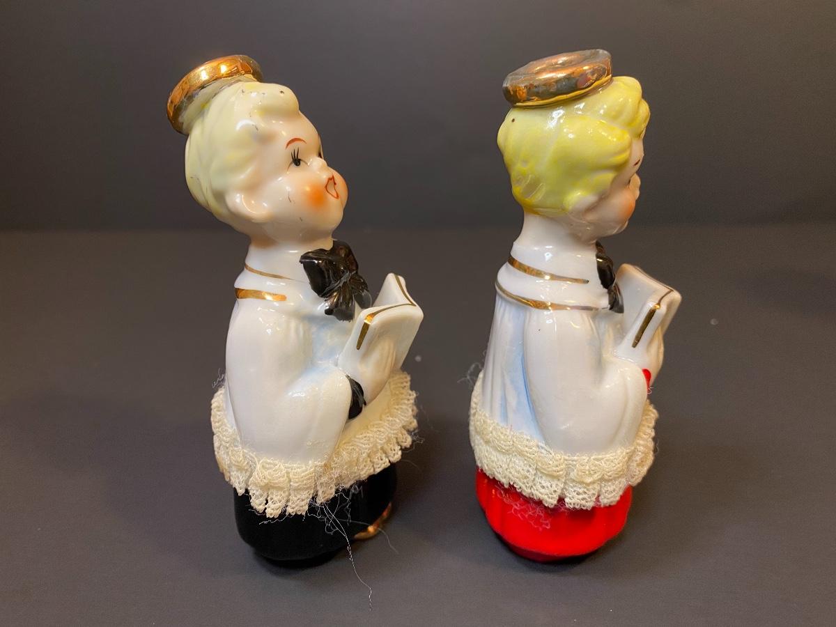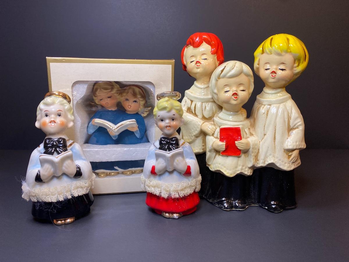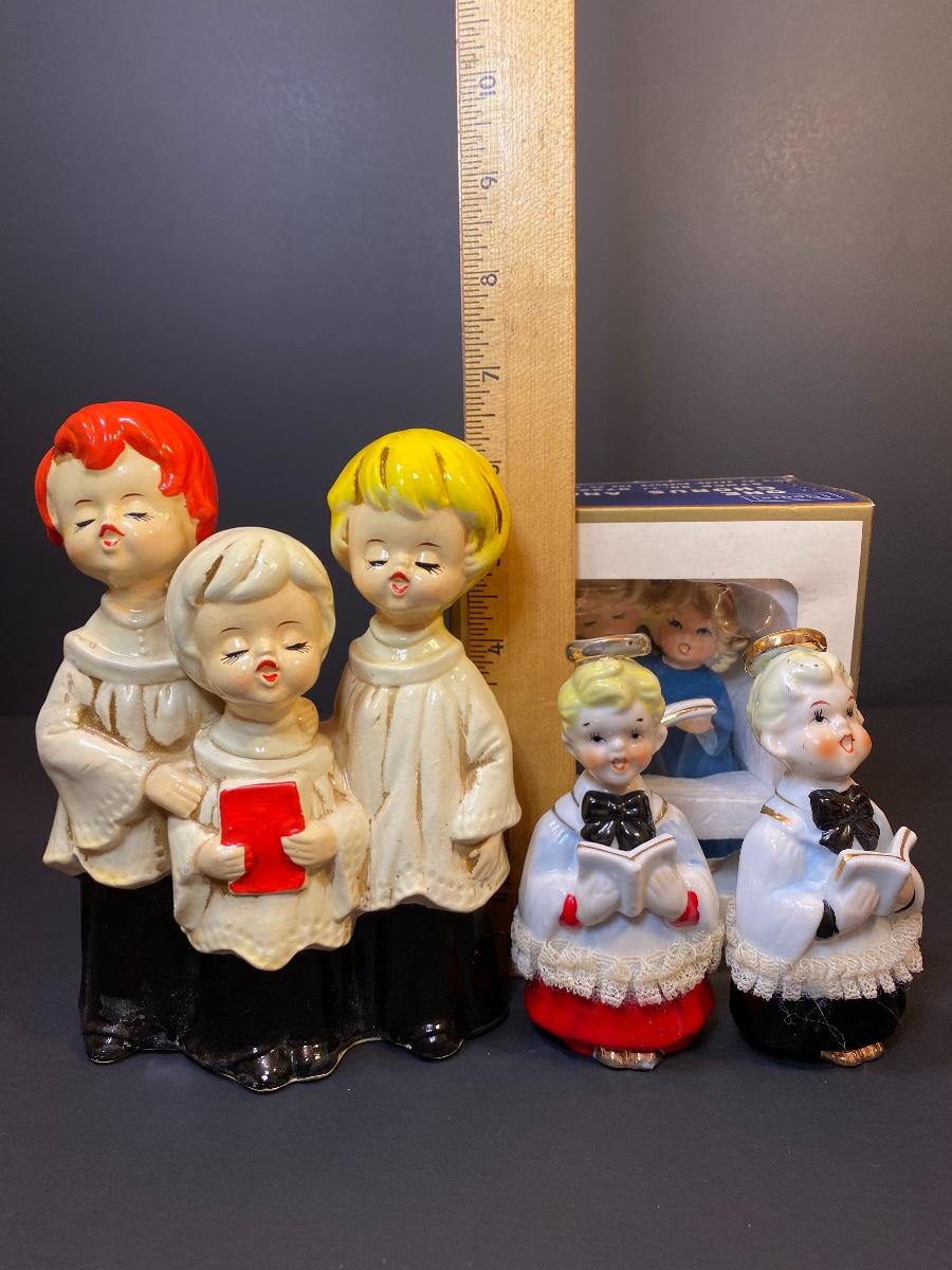 Choir Angels new in box, musical choir angels (no longer plays music). Set of two single choir angels. The pictures show condition, measurements if taken, and what is included in the lot. Due to the large amount that we photograph and the time frame, we are not always able to take measurements. All items unless noted, are pre-owned and have been used, and are untested. Thank you.