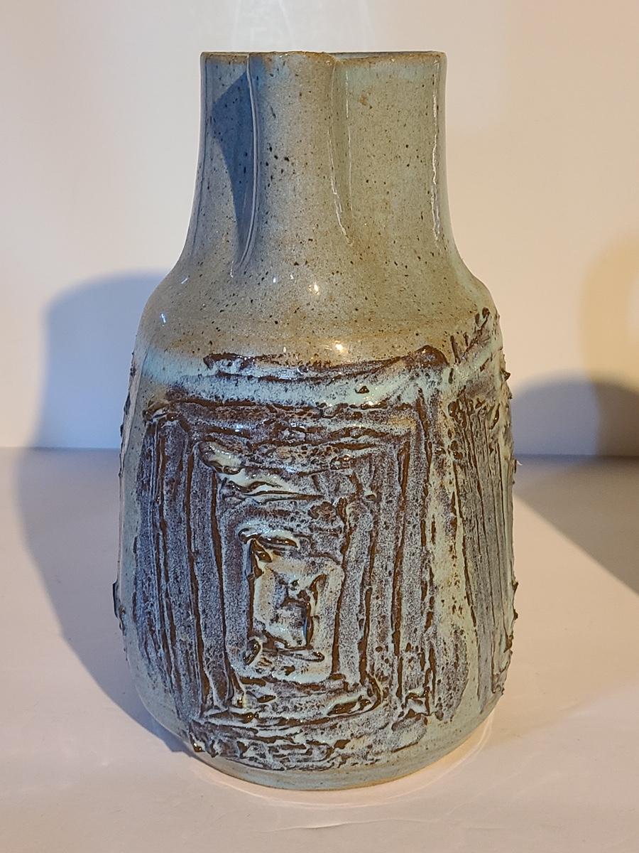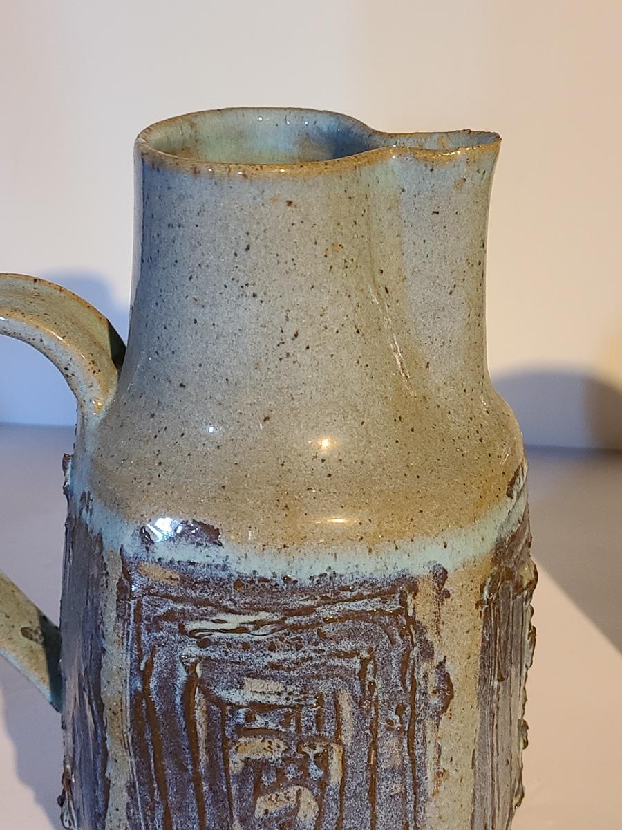 Two well designed and functional pieces of pottery. The first is a blue textured pitcher by Gamberware in the 90's and the other is a Carlos Lopez Pocket Potter Piece for any type of storage, from pens and pencils, to plants! Please see all pictures as they are the best representation of the items. The pictures show condition, measurements if taken, and what is included in the lot. Due to the large amount that we photograph and the time frame, we are not always able to take measurements. All items unless noted, are pre-owned and have been used. If you purchased furniture, you must bring help. We do not allow one person to carry large furniture out on their own. Bring help, tools and a truck for the safety of our client’s homes, and your personal safety. Company policy. Thank you.
