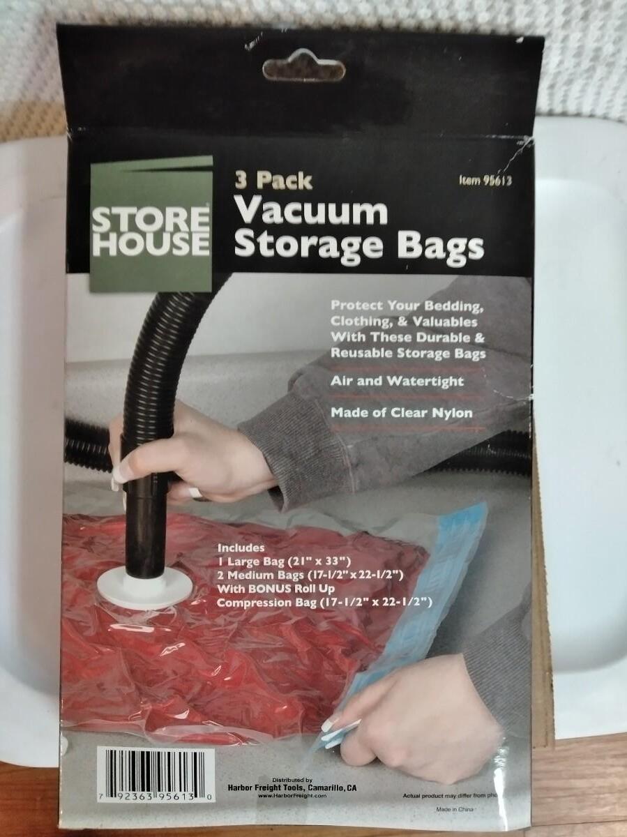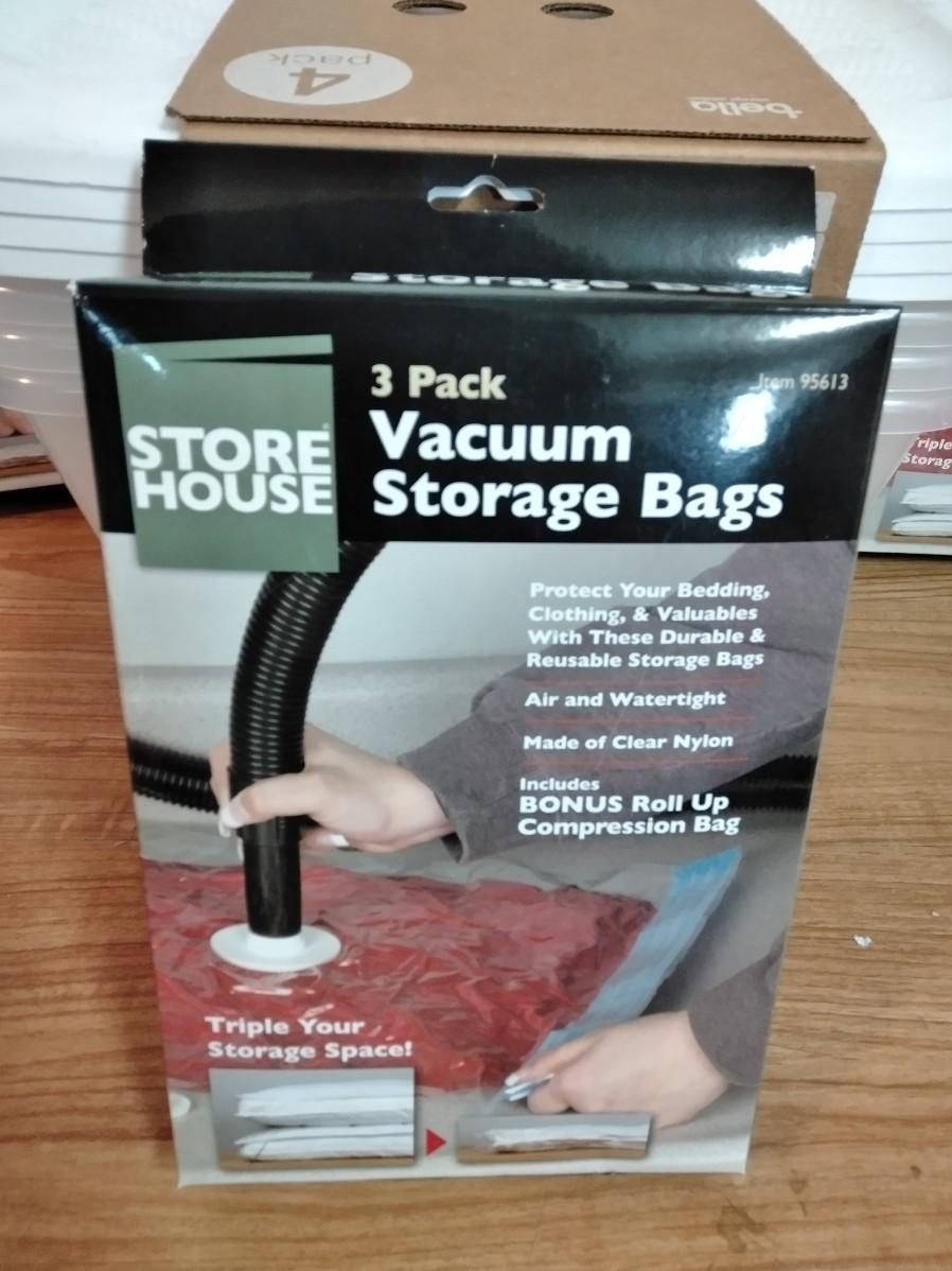 LOT 392 VACUUM STORAGE BAGS & 4 TOTES
