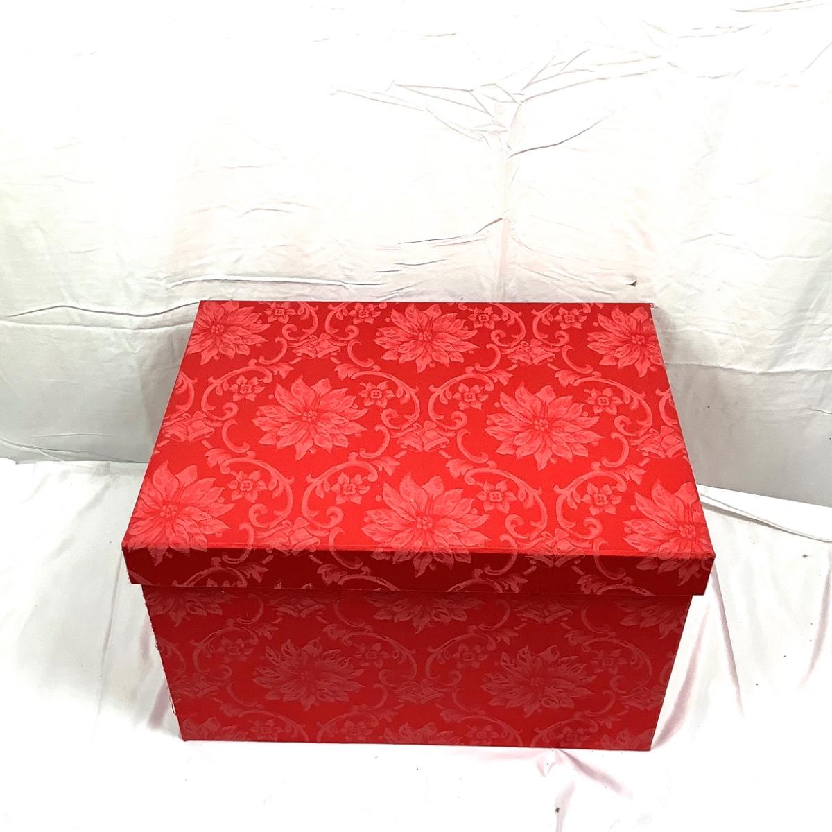 Lot 393 Red Damask Christmas Ornament Storage Box ( #2 )