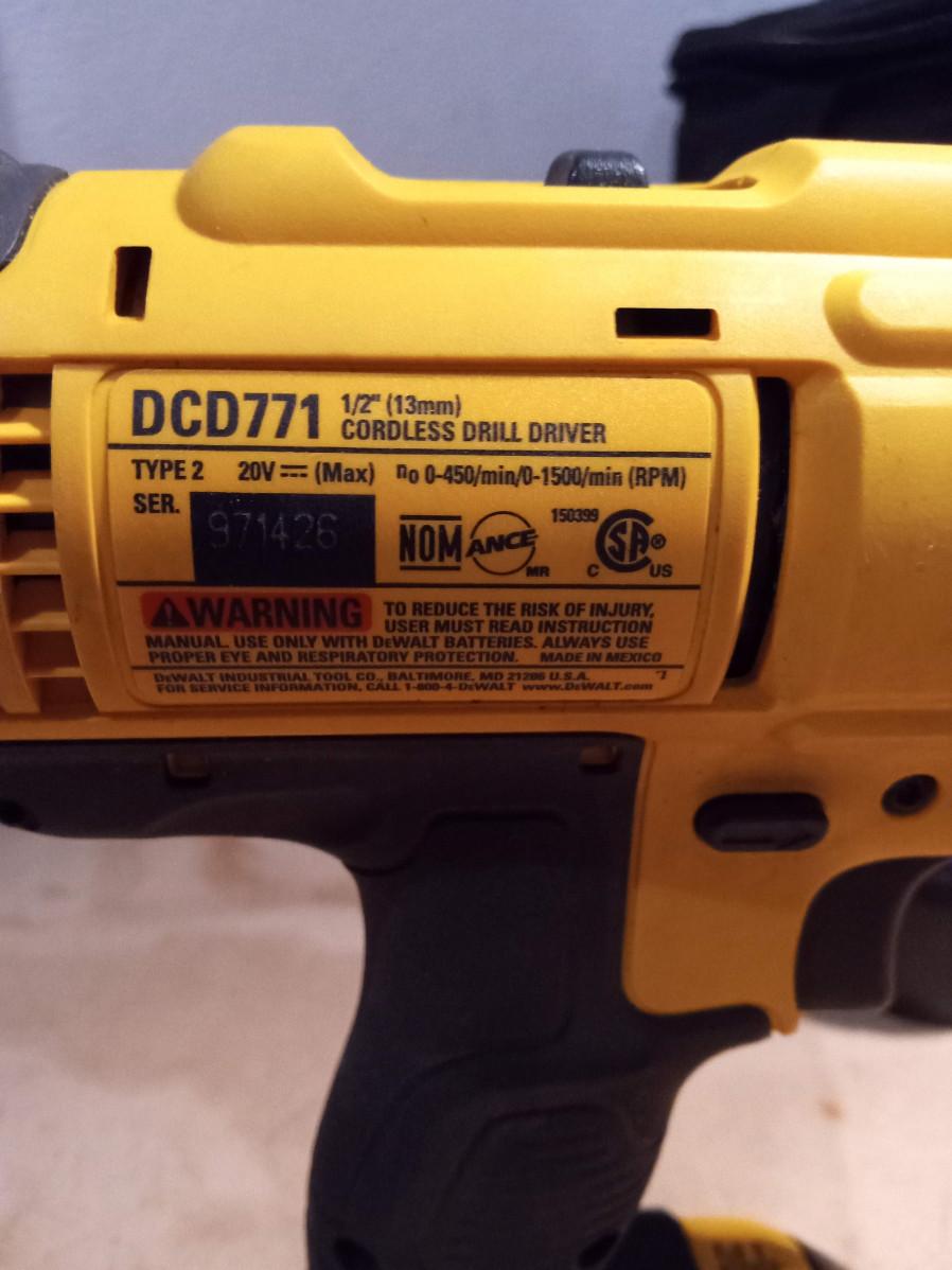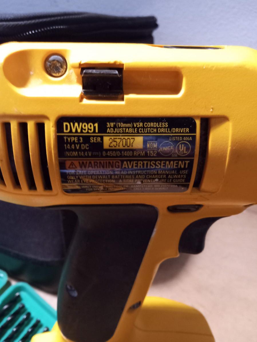 1/2" AND 3/8" DEWALT CORDLESS DRILL DRIVERS, EACH HAS A BATTERY BUT THERE IS NO CHARGER
