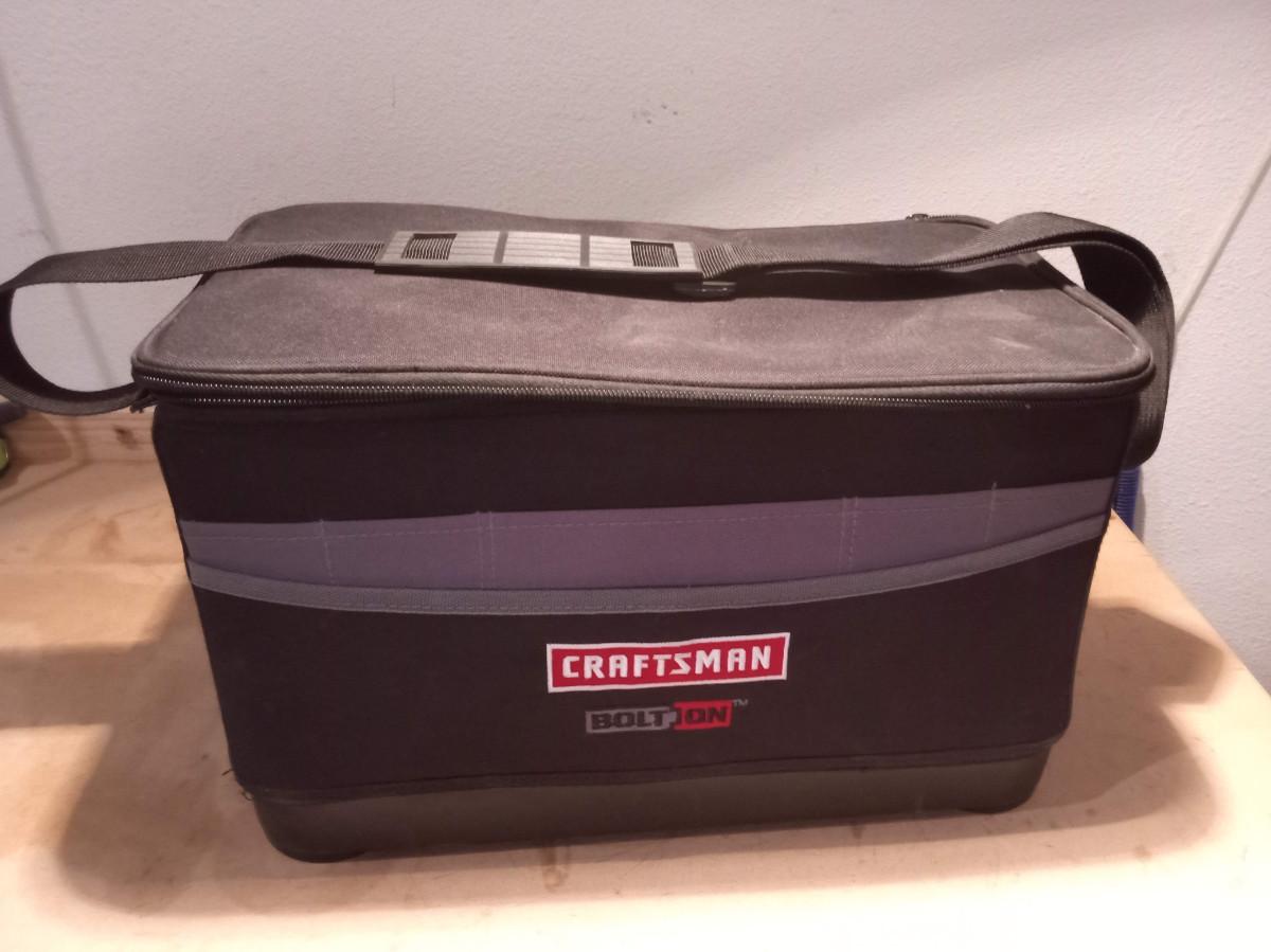 LOT 393 TWO DEWALT CORDLESS DRILLS, BITS AND TOOL BAG