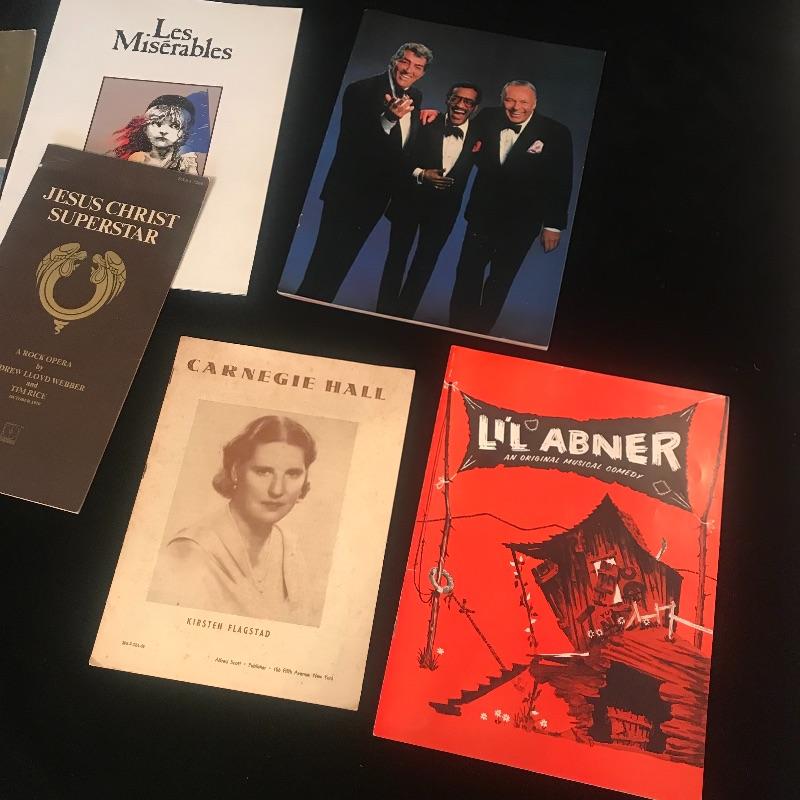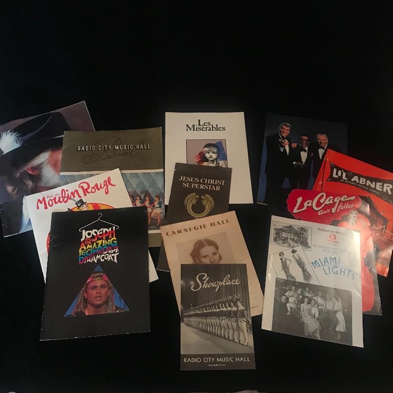 Nice collection of great plays, musicals, concerts and more. Programs date back from the 50s, 70s and 80s and are in good condition. See Pix for details of the titles. Shipping available.