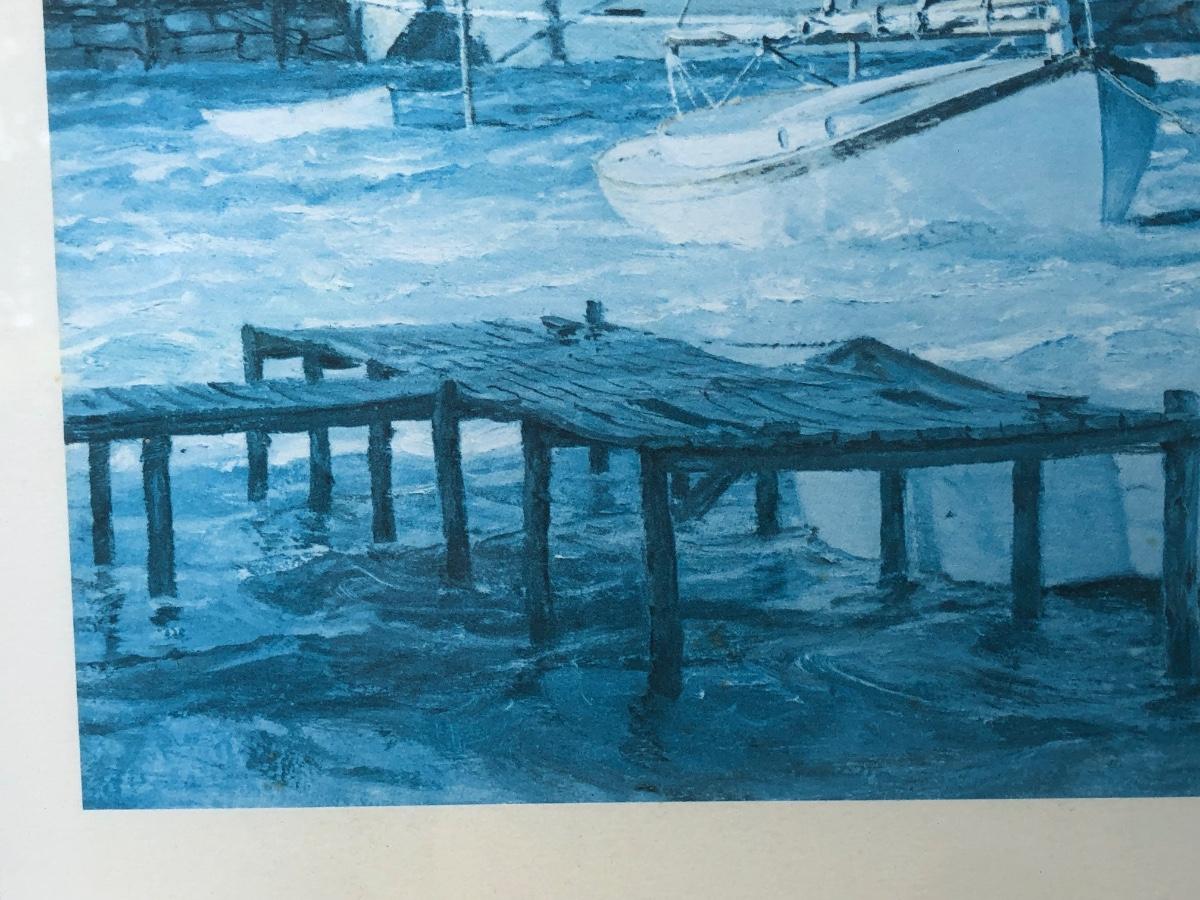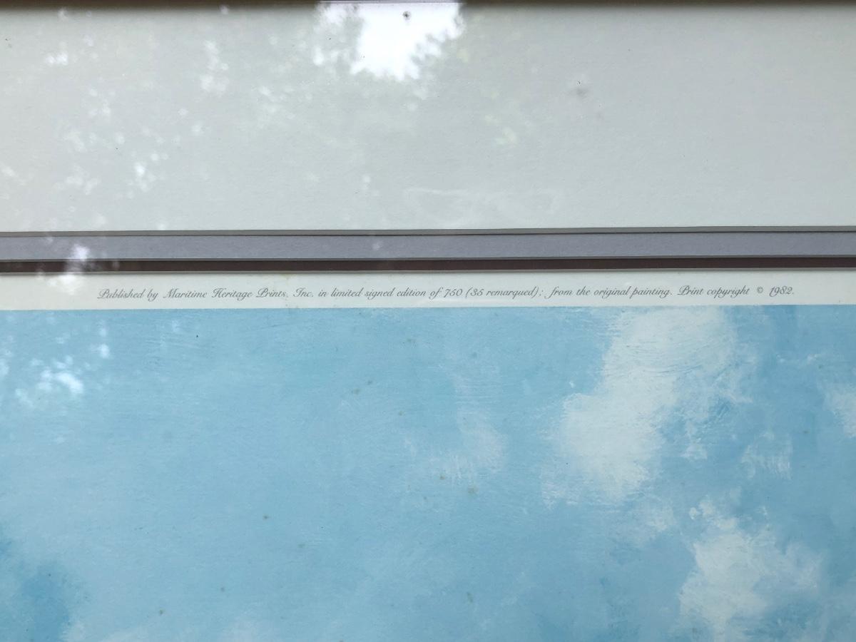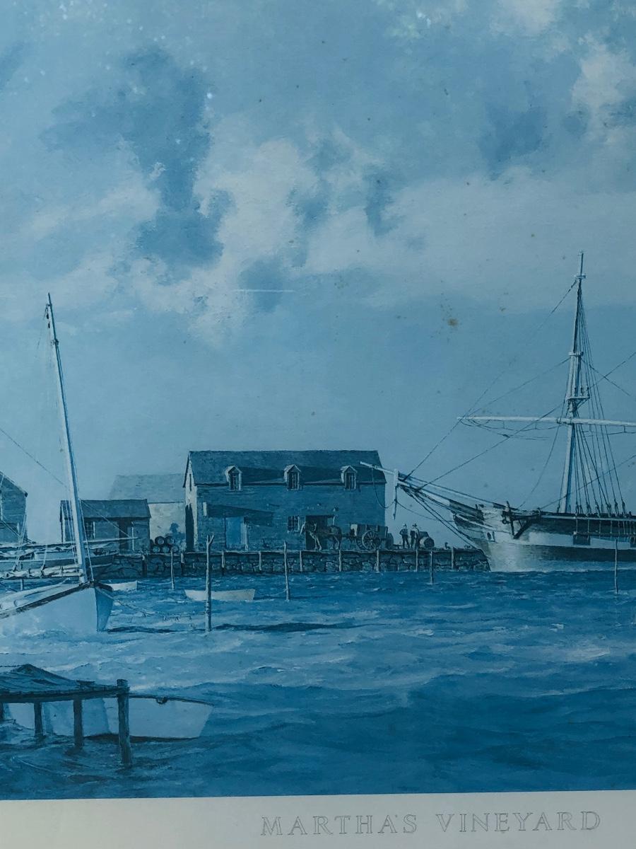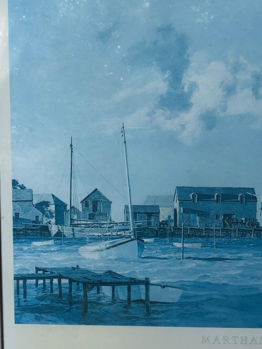 LOT 393G: Signed & Numbered 1982 John Stobart (British, 1929-2023) Martha's Vineyard The Bark "Mattapoisett" at Osborn's Wharf, Edgarton in 1886 Print (327/750)