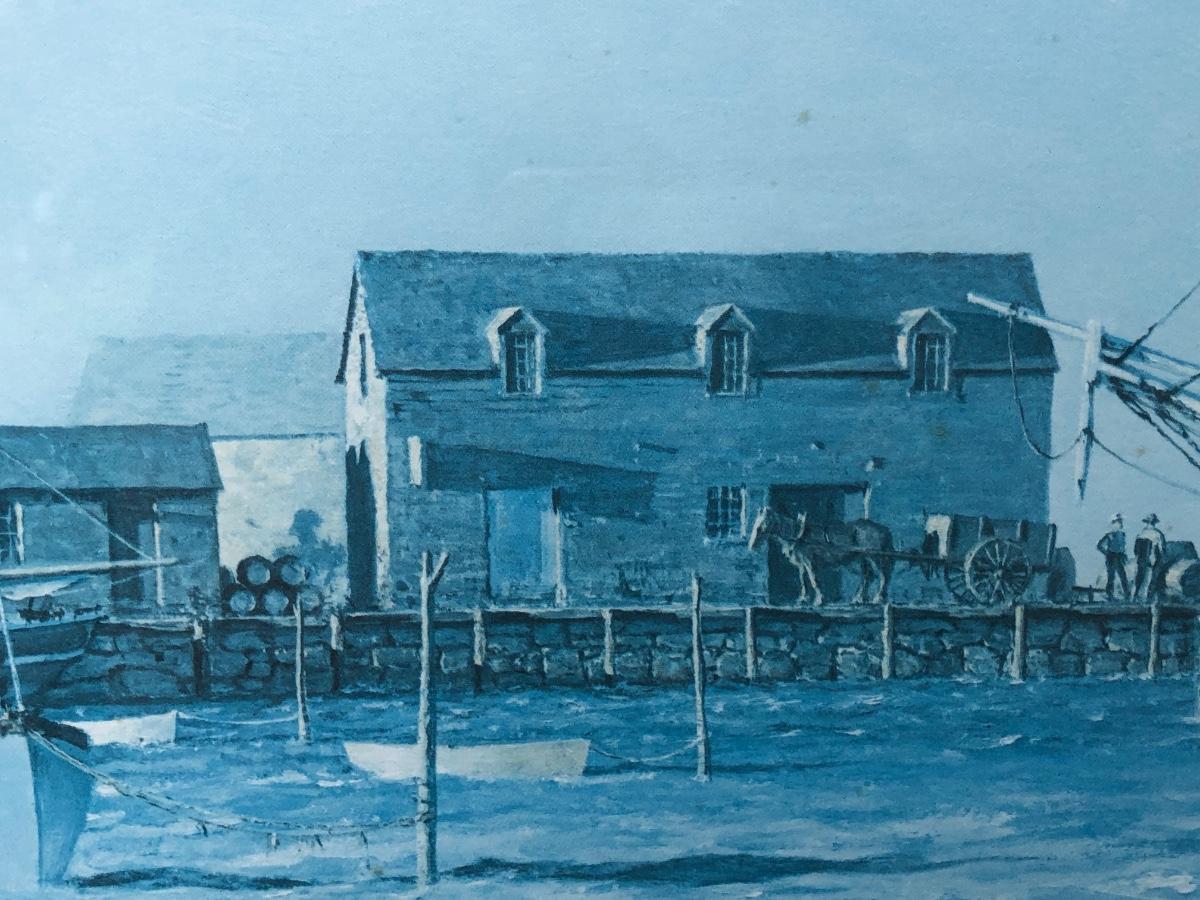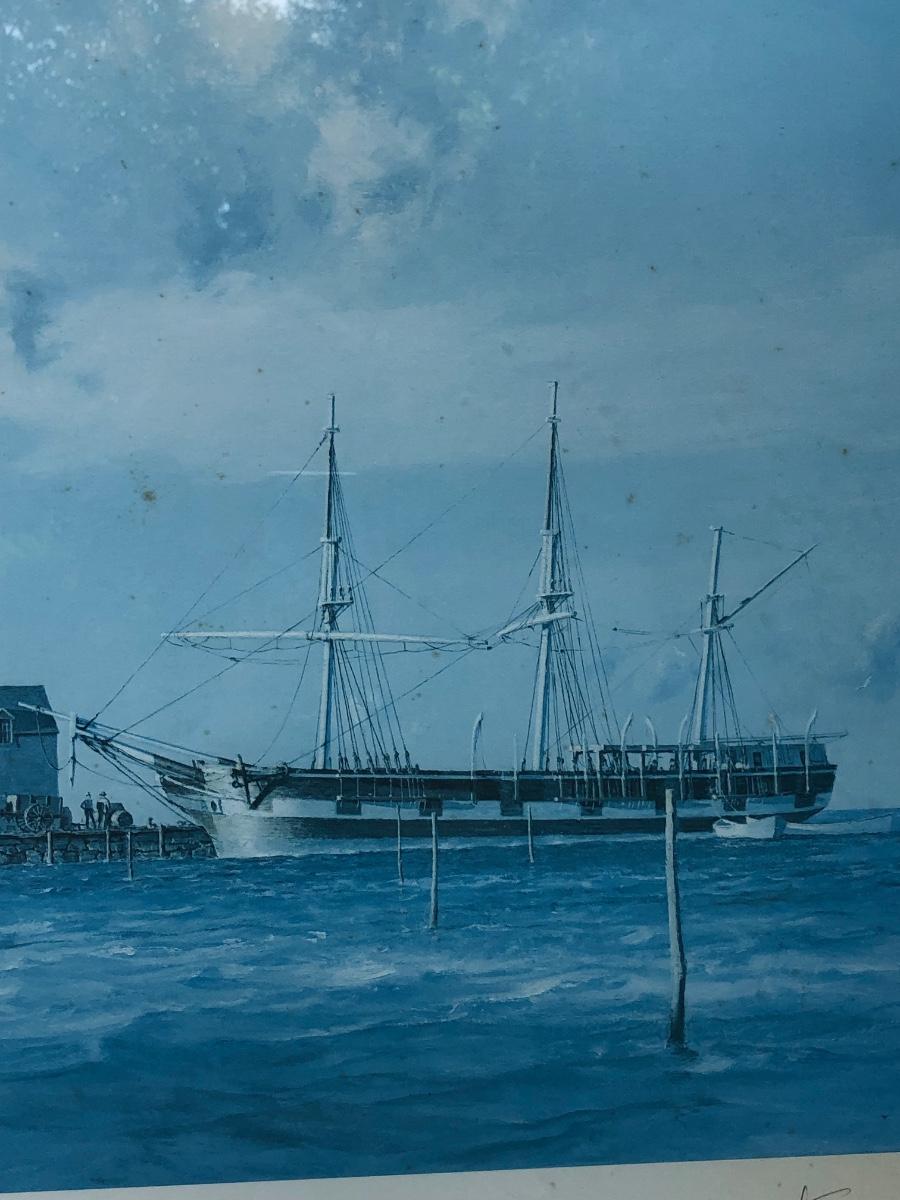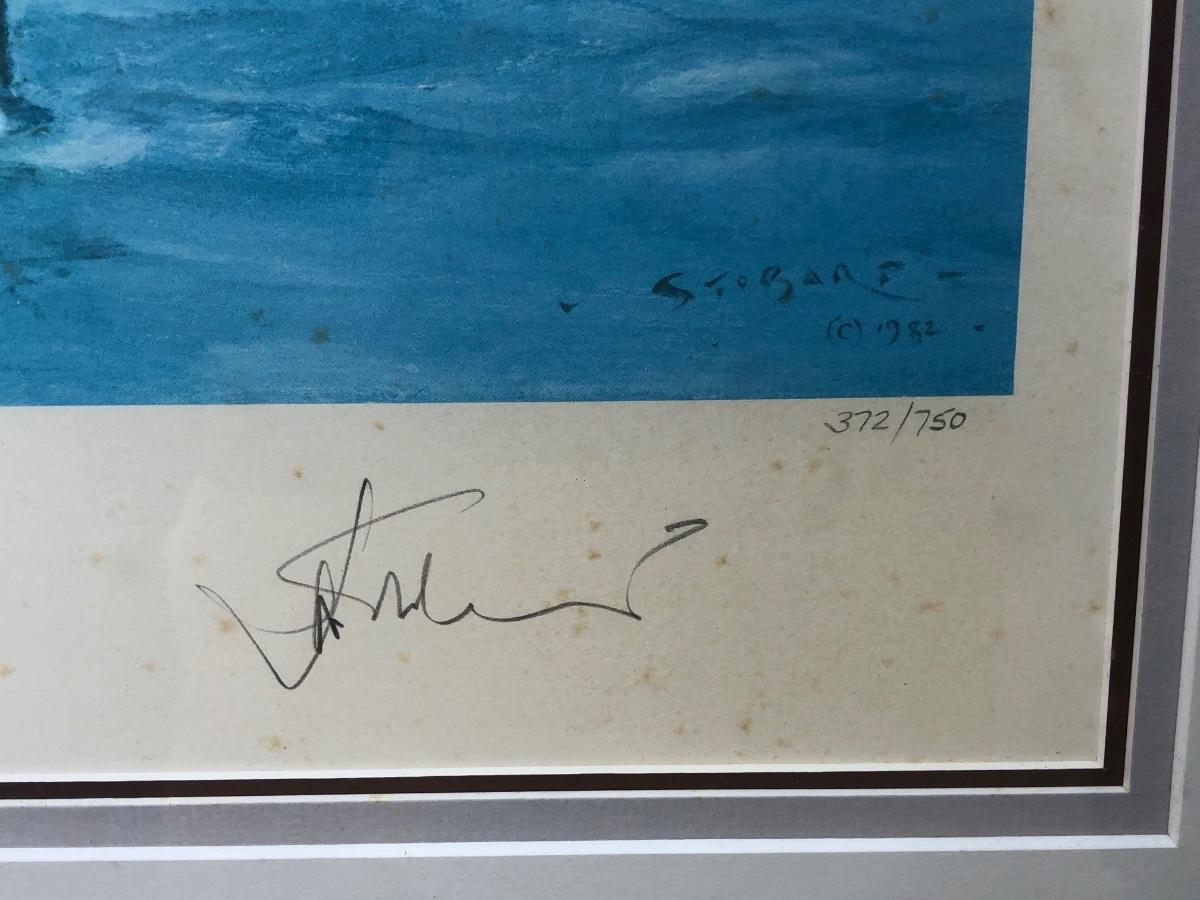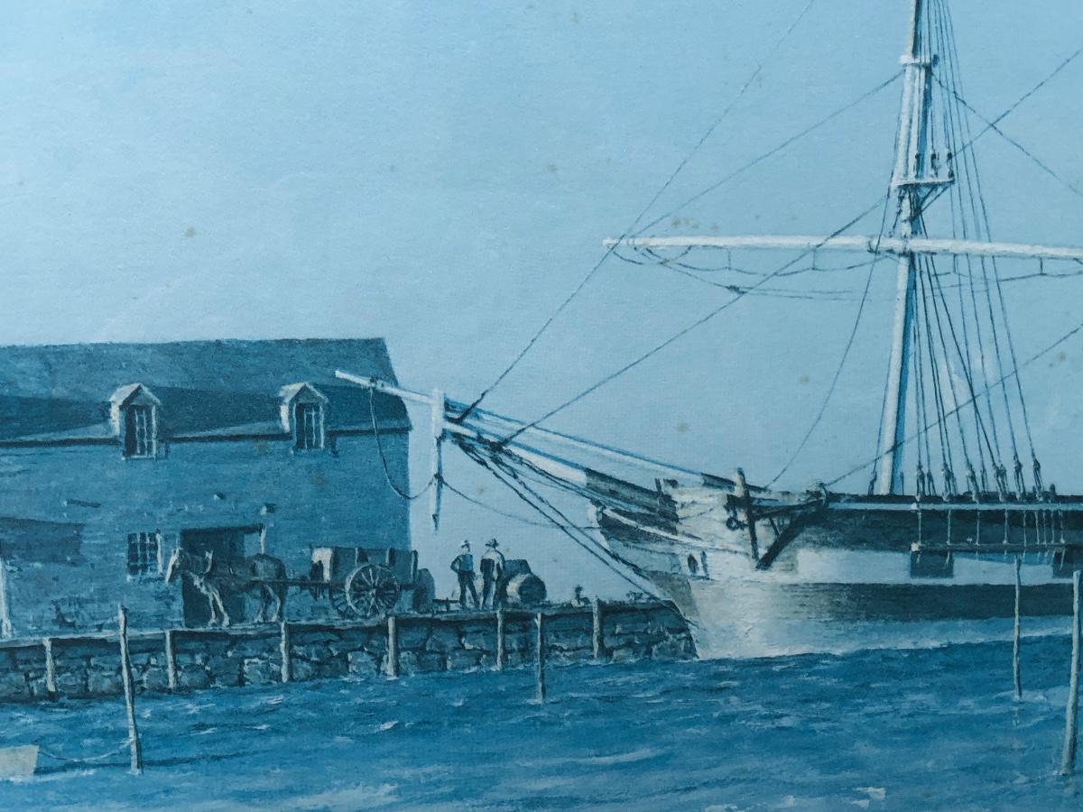 LOT 393G: Signed & Numbered 1982 John Stobart (British, 1929-2023) Martha's Vineyard The Bark "Mattapoisett" at Osborn's Wharf, Edgarton in 1886 Print (327/750)