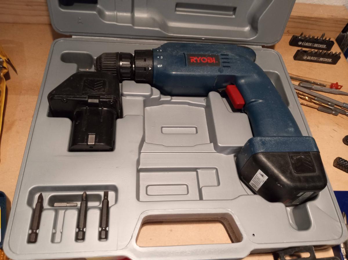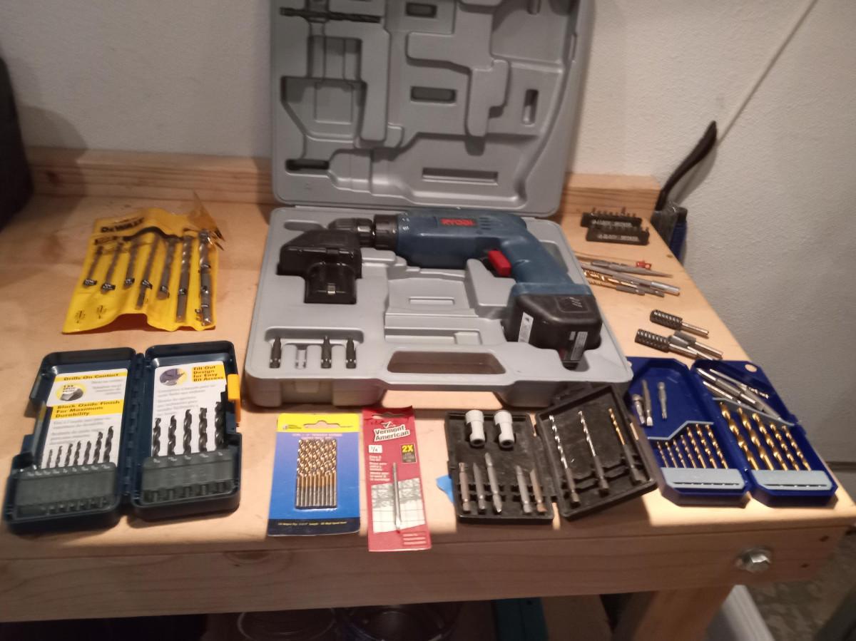 LOT 394 RYOBI CORDLESS DRILL WITH MANY DRILL BITS