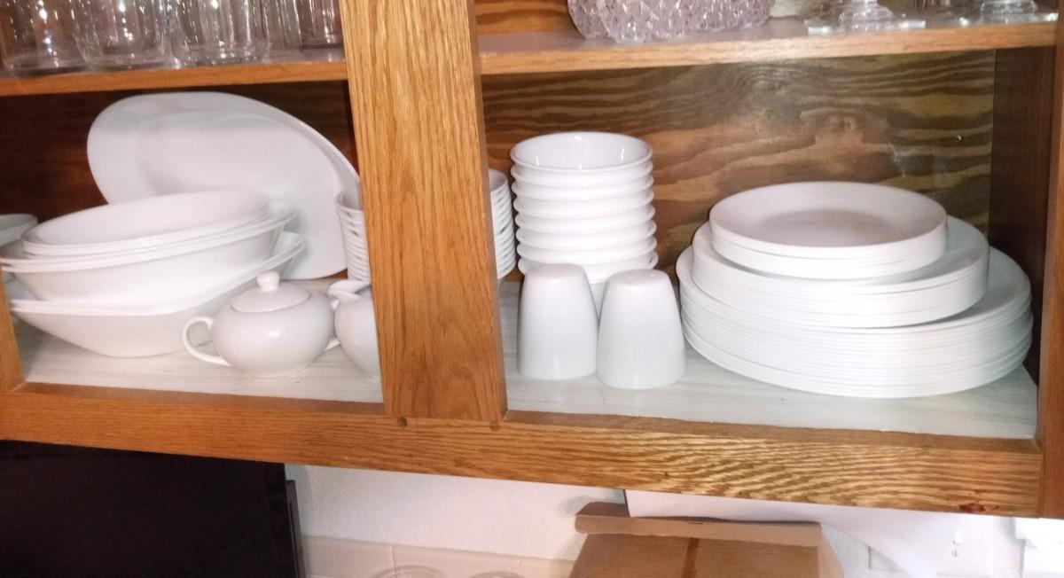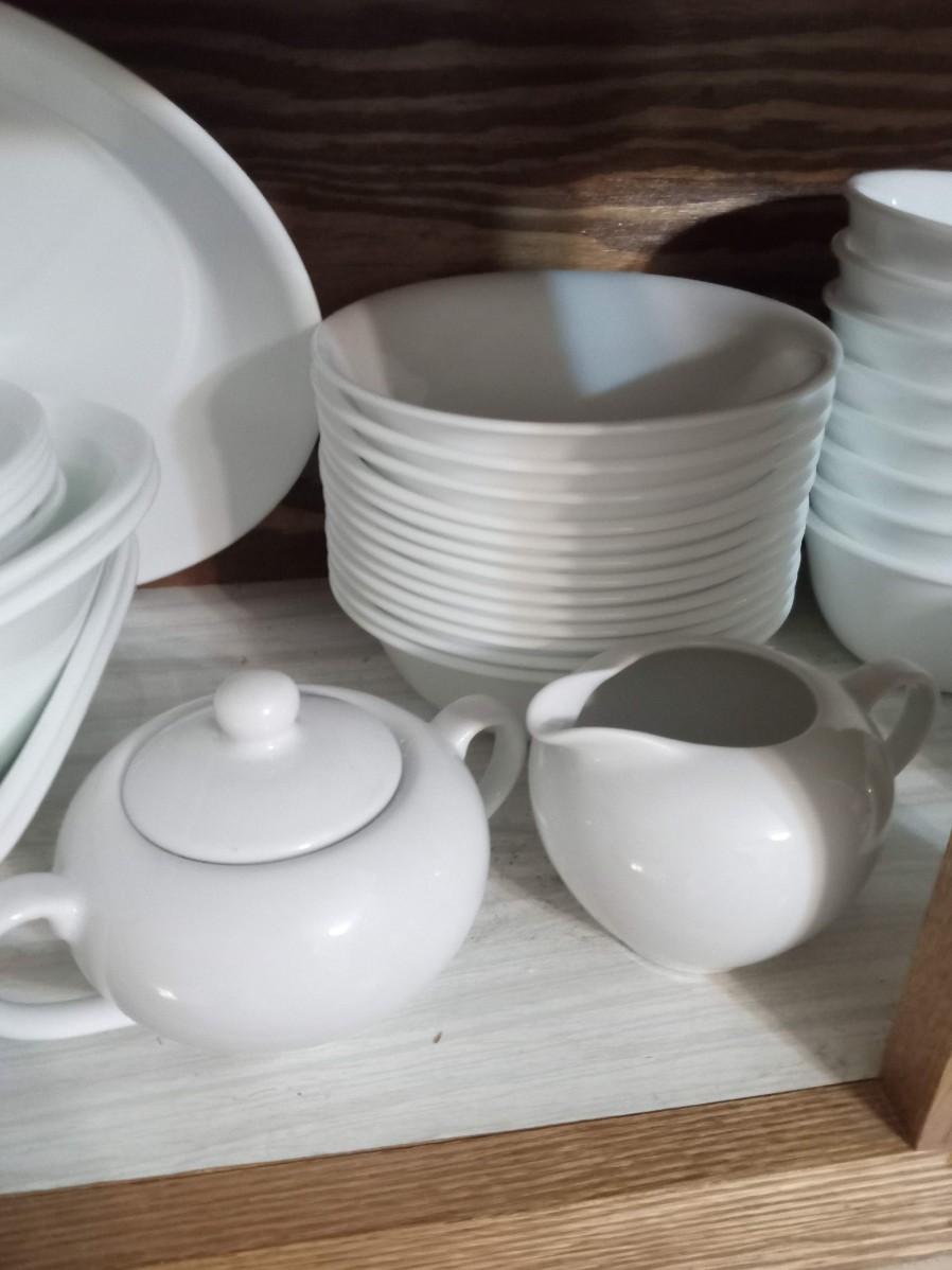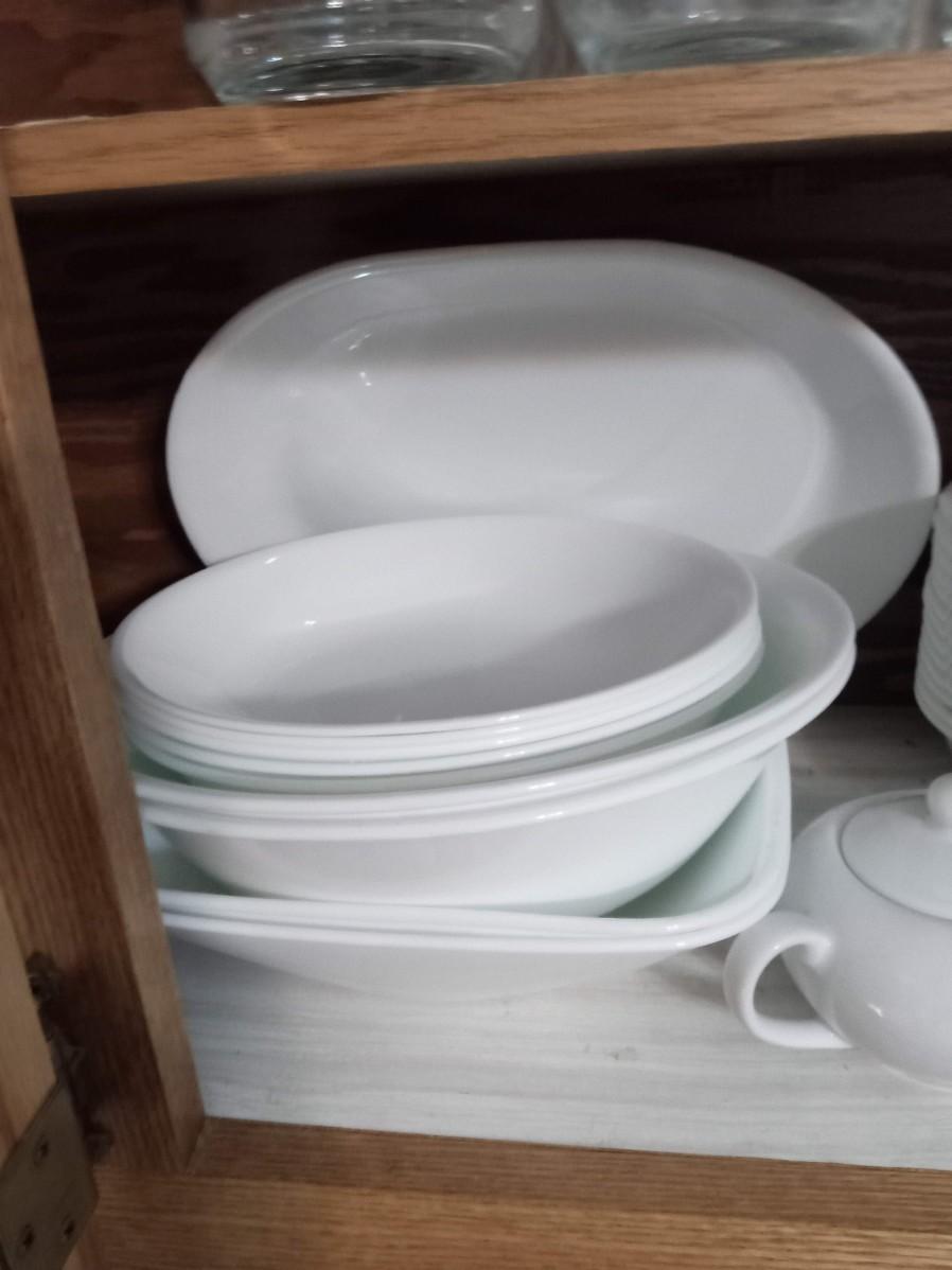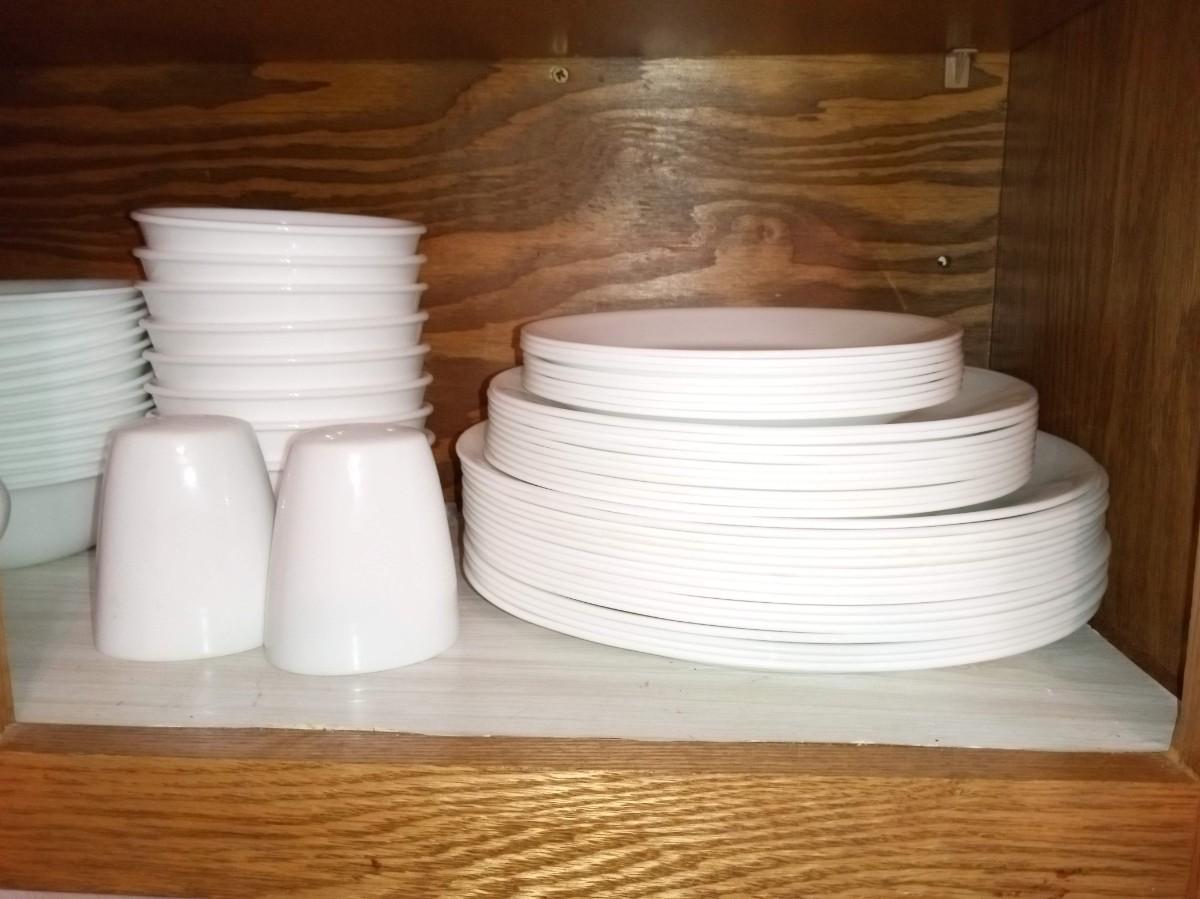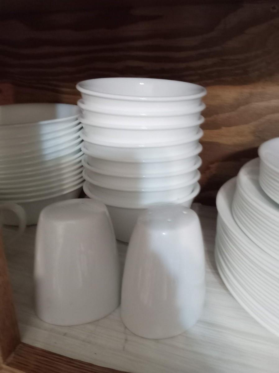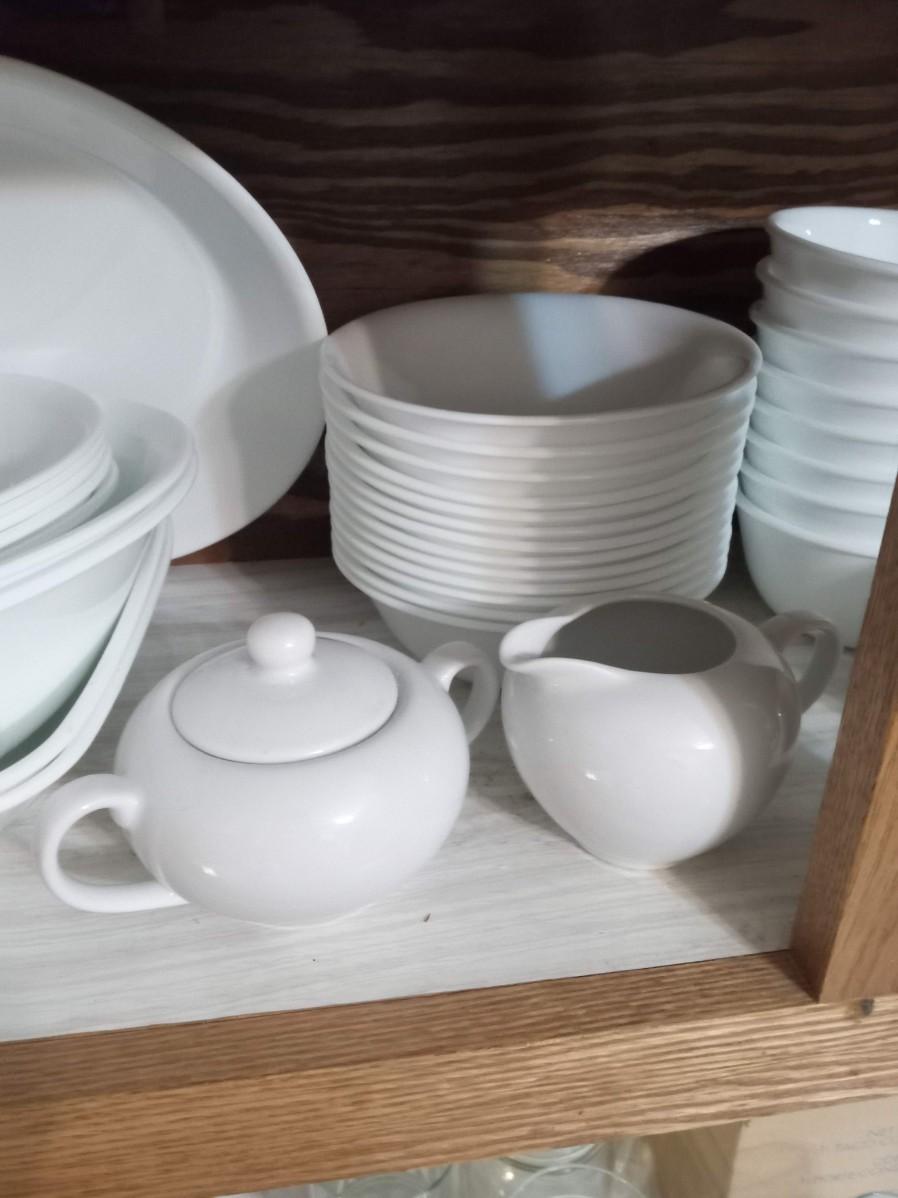 16 DINNER PLATES, 10 SALAD PLATES, 8 SAUCERS, 8 CUPS, 8 DESSERT BOWLS, 12 CEREAL BOWLS, 1 PLATTER, 4 LARGER SERVING BOWLS,