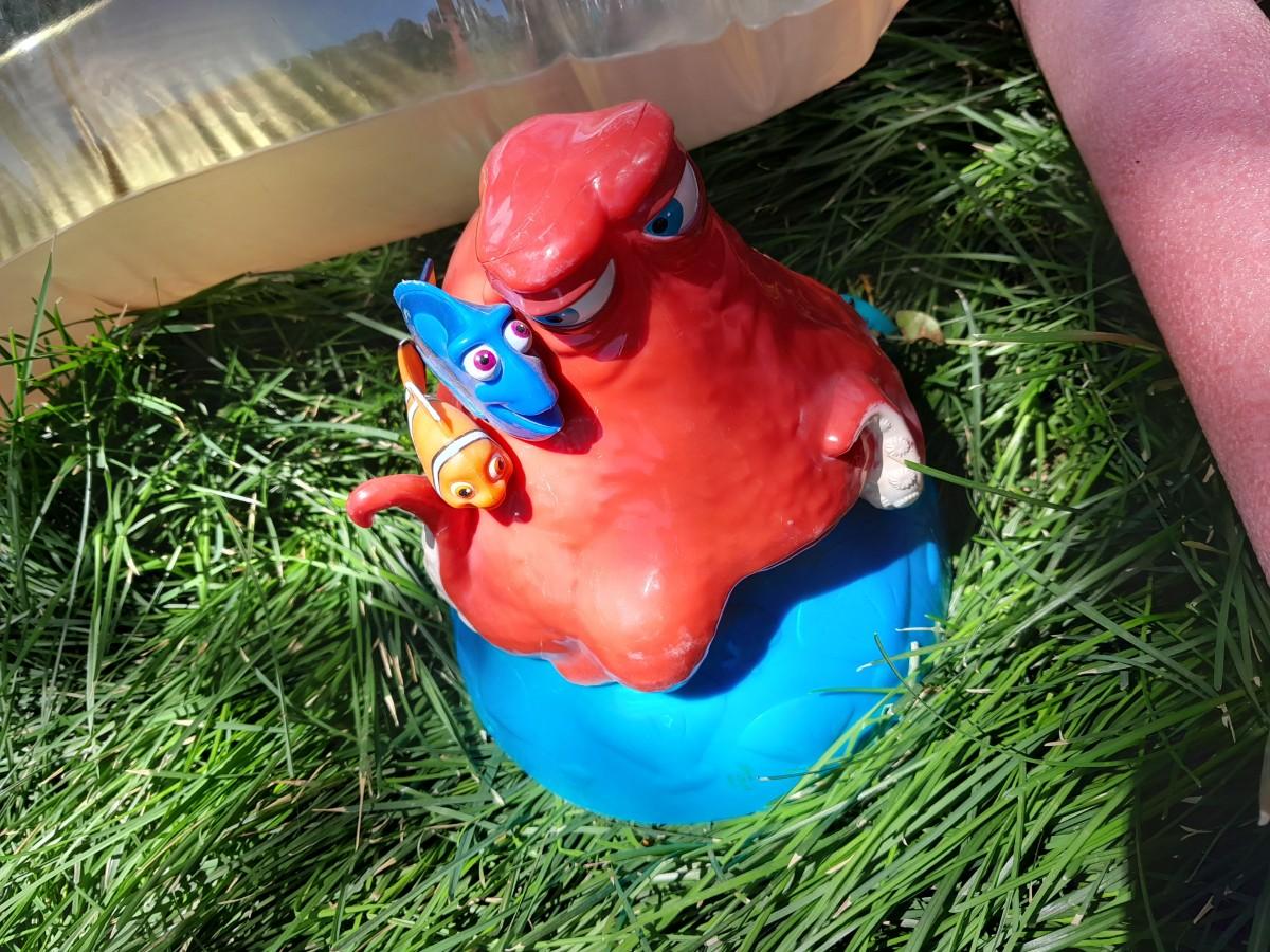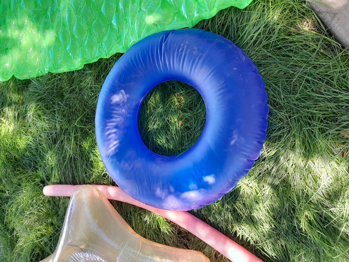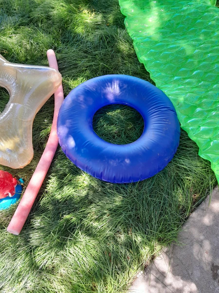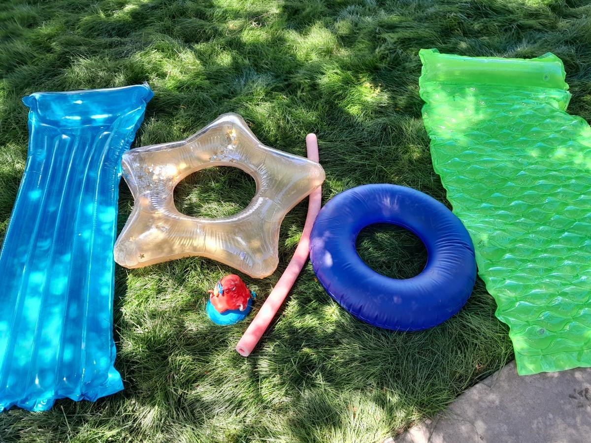 POOL TOYS, FLOATIES AND A BEACH BALL WITH A LITTLE MERMAID SPRINKER