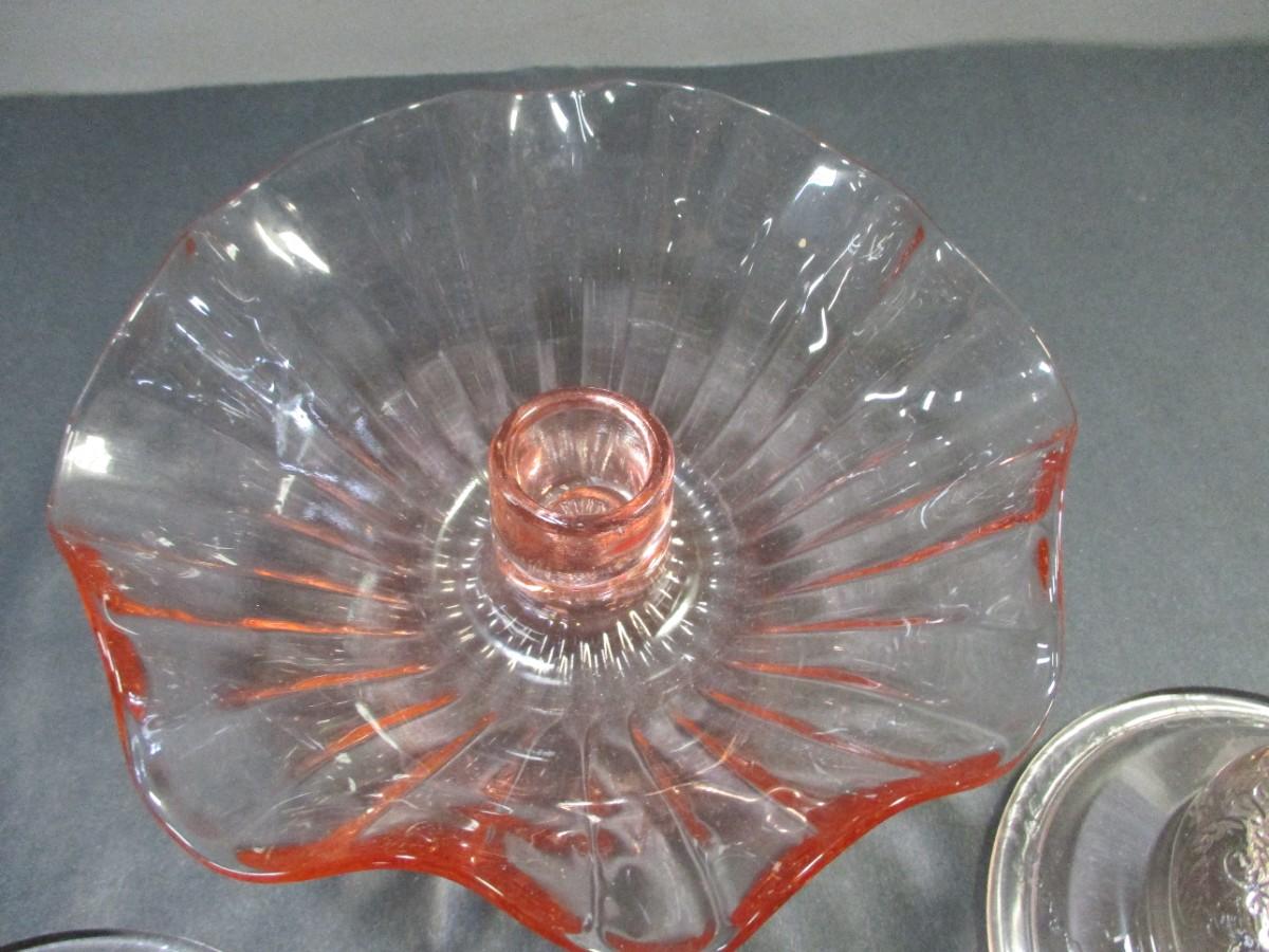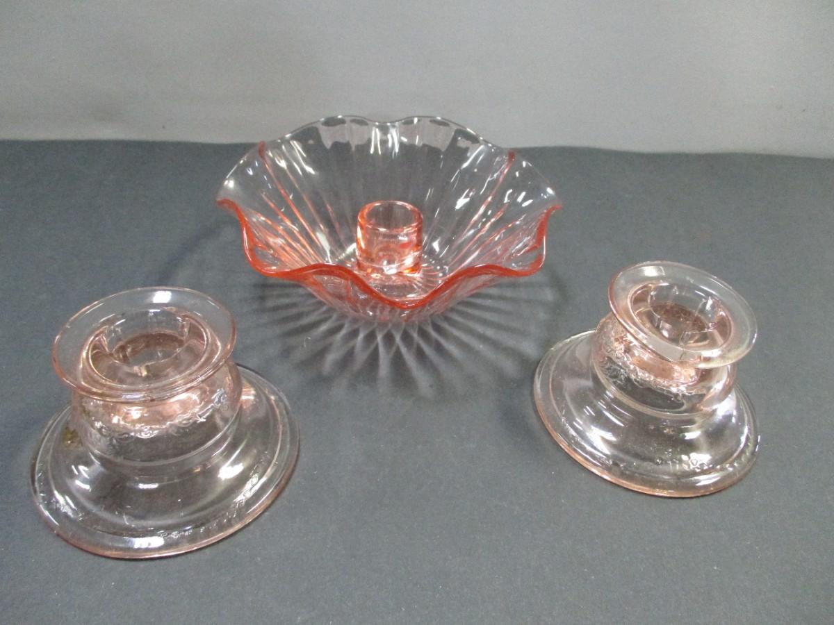 Lot 394 - Vintage Pink Depression Glass - Candle Holders