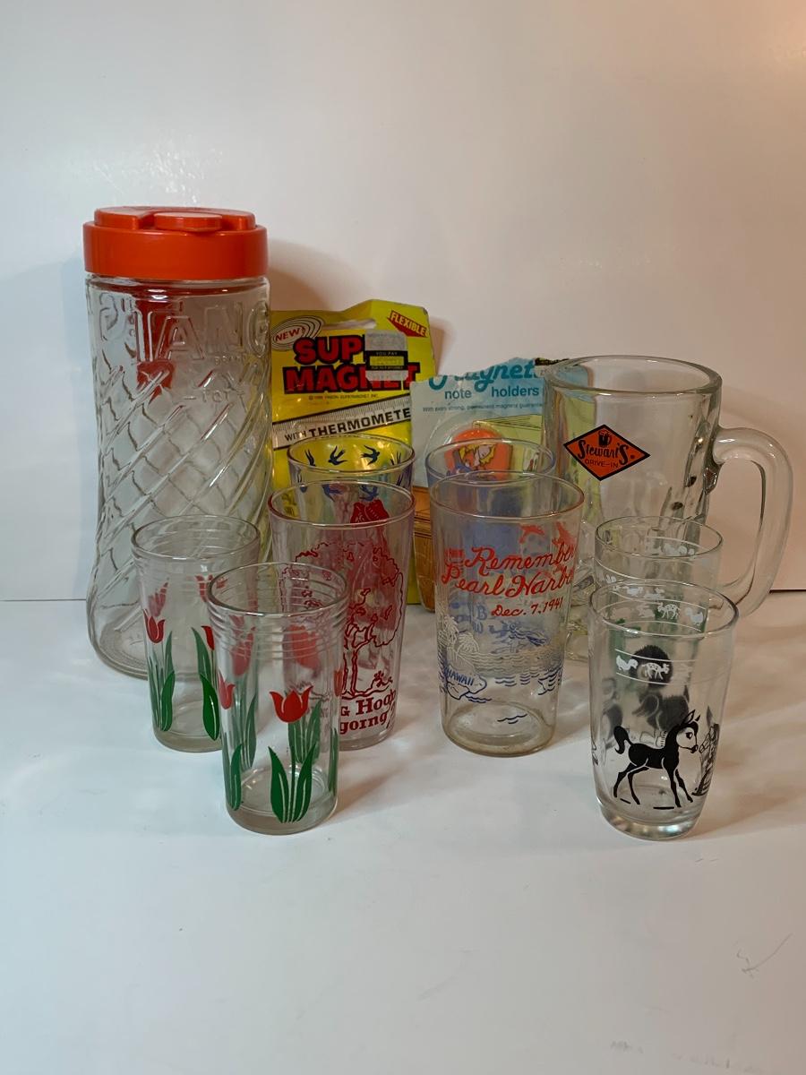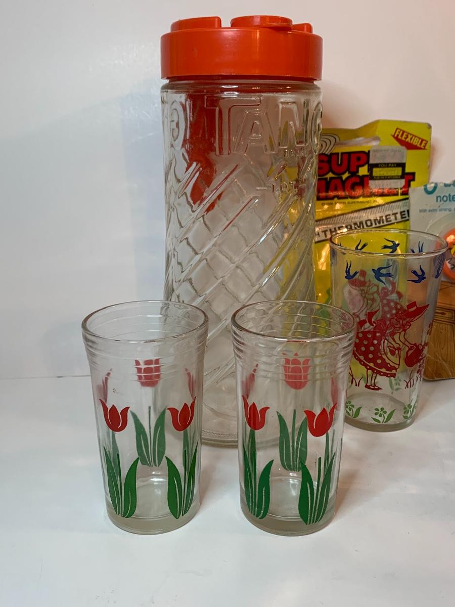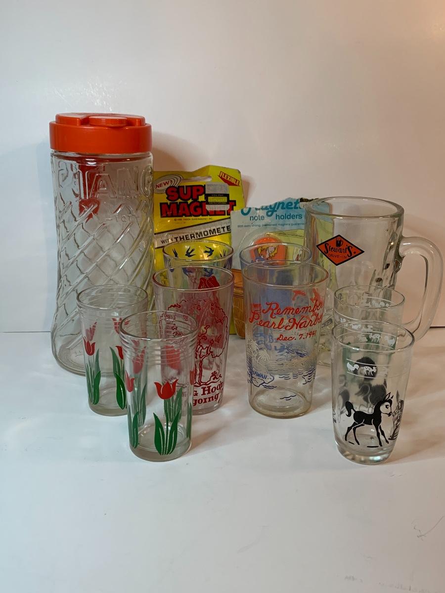 Lot 395: Vintage Tang Pitcher, Rootbeer Mug, Floral Juice Cups and More