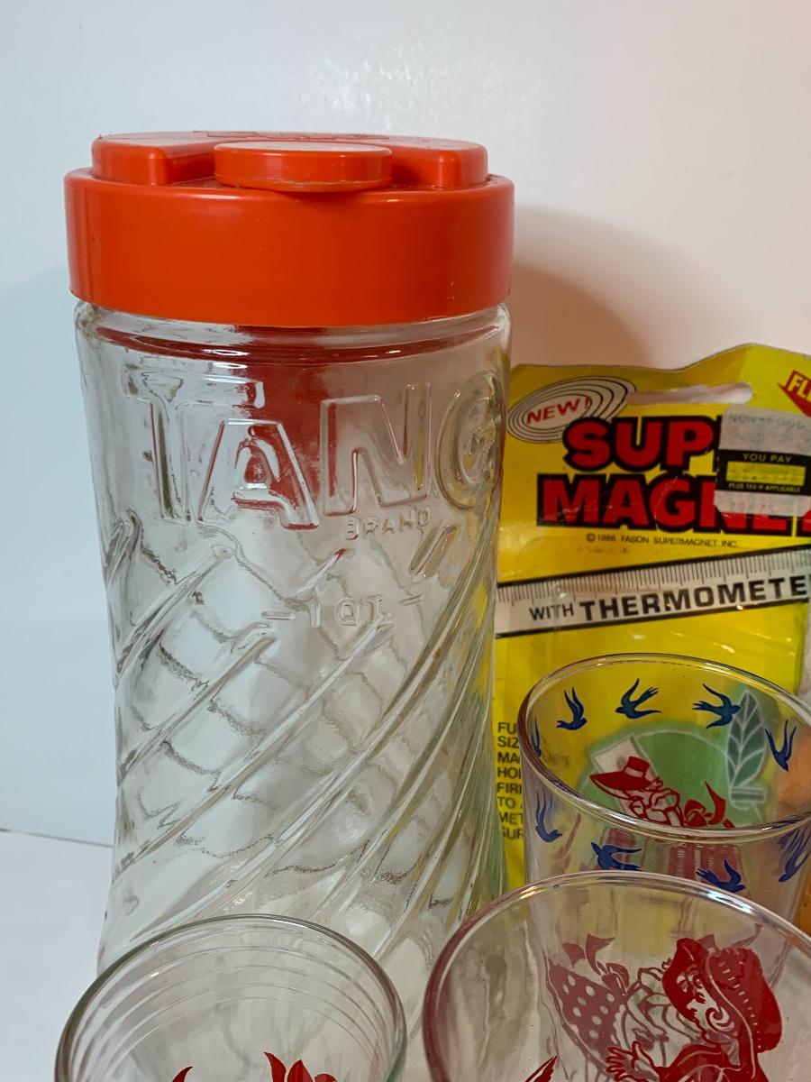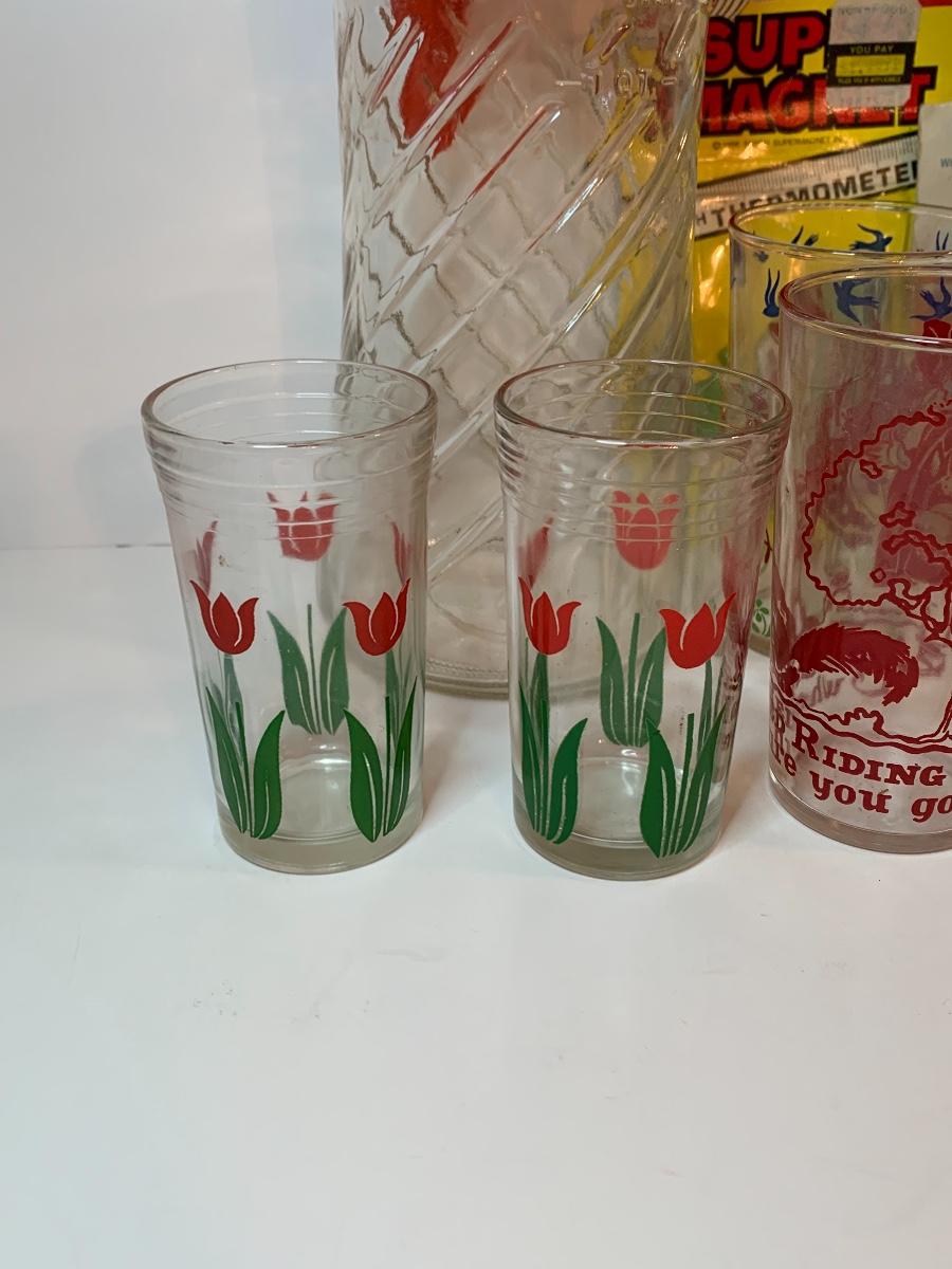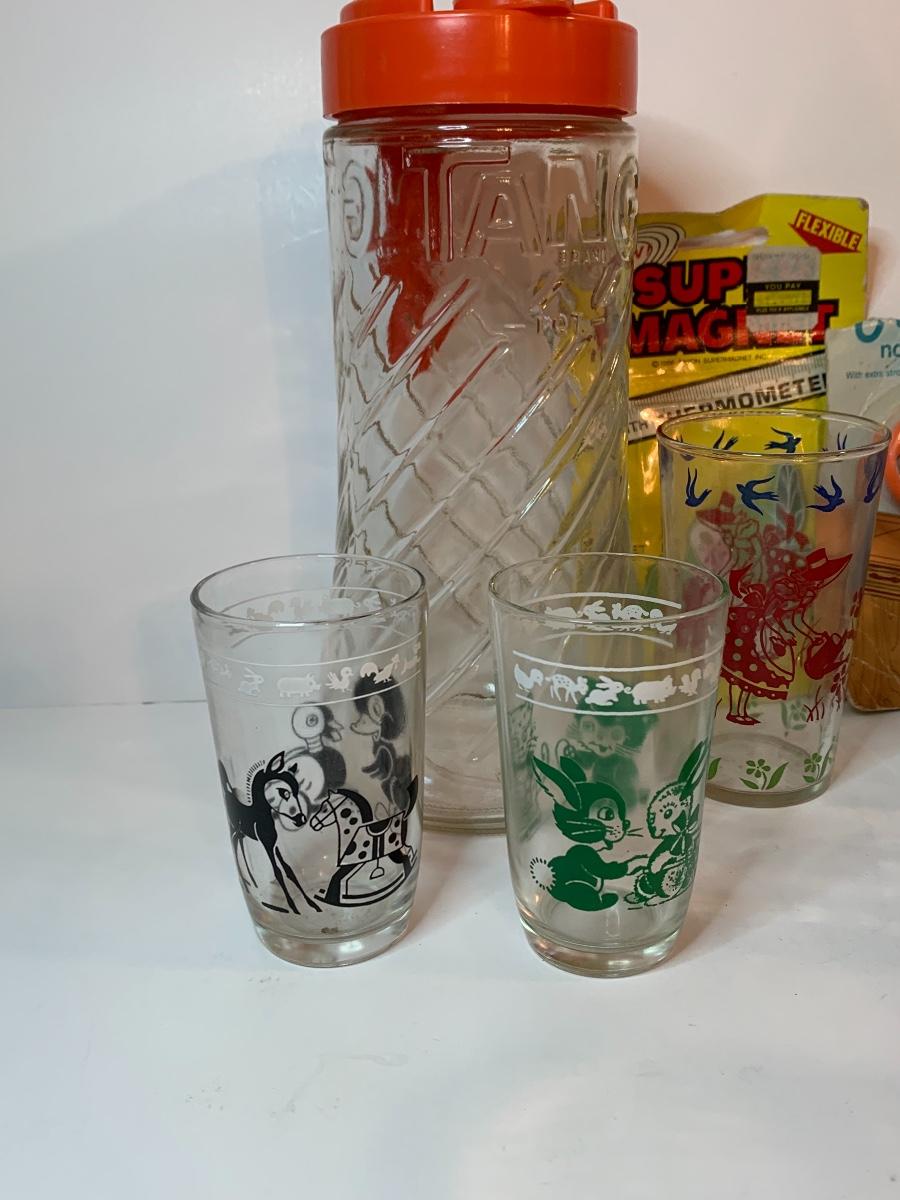 Lot 395: Vintage Tang Pitcher, Rootbeer Mug, Floral Juice Cups and More