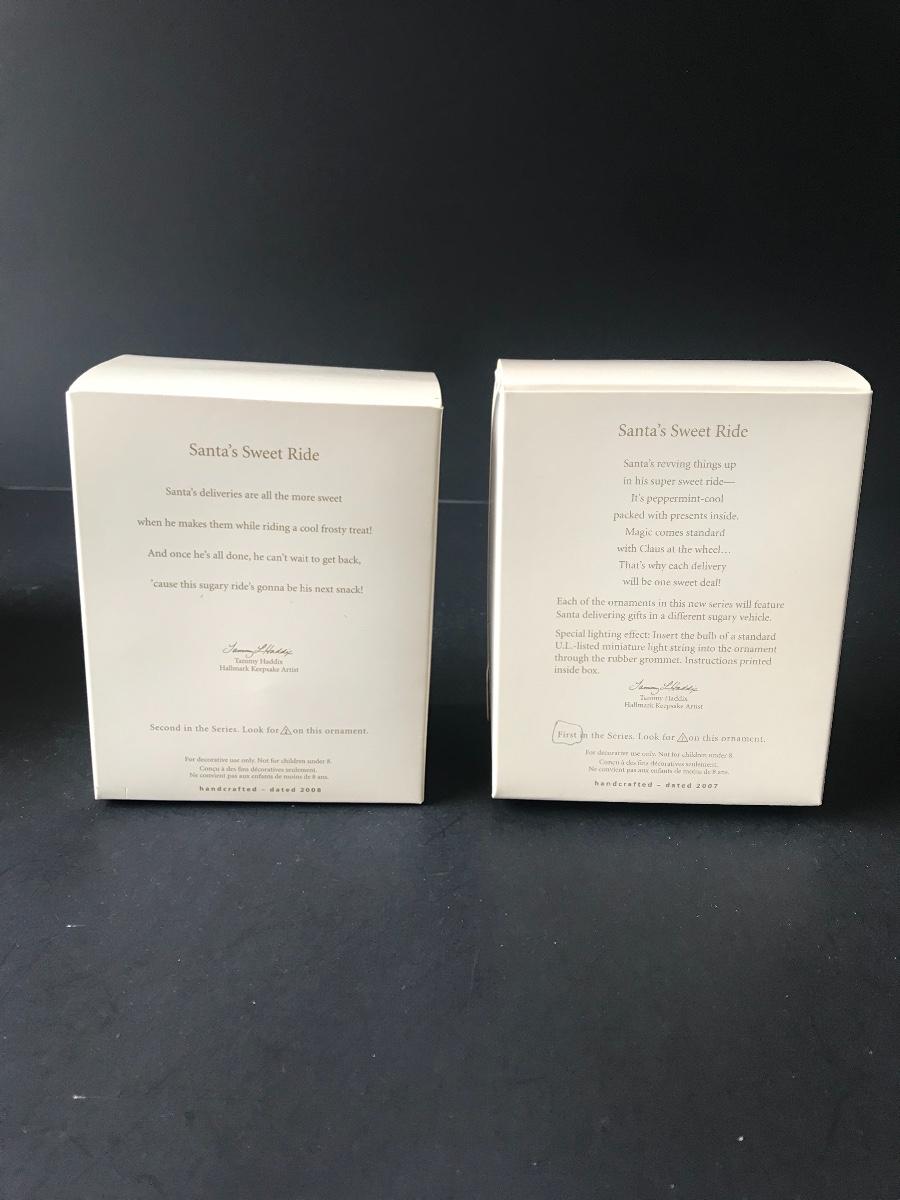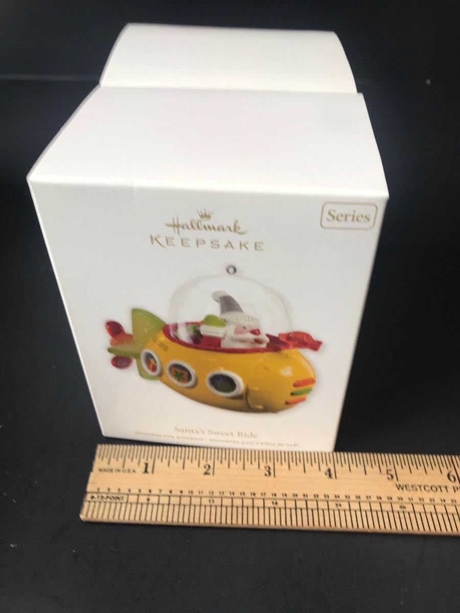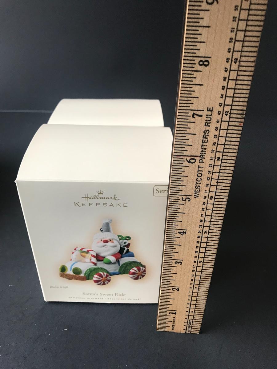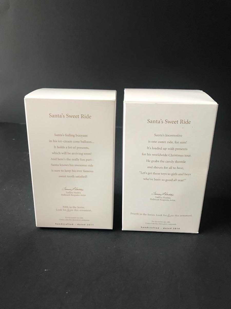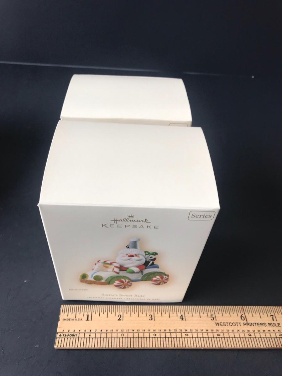 Santa's Sweet Ride Hallmark Keepsake Christmas Ornaments. All Holiday items in this auction are as-seen. The client collected a lot of holiday pieces and some are new in box, some were displayed once and come with original box, and some have been displayed and come with no box. They are all pre-owned in some fashion and have been stored in an attic or on shelf in library. Please see all pictures. The pictures show condition, measurements if taken, and what is included in the lot. Due to the large amount that we photograph and the time frame, we are not always able to take measurements. All items unless noted, are pre-owned and have been used. Thank you