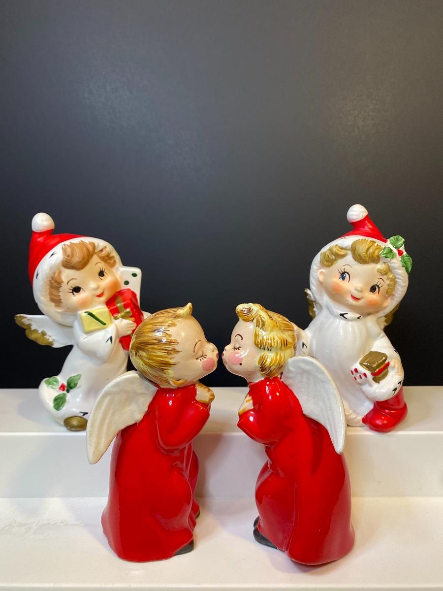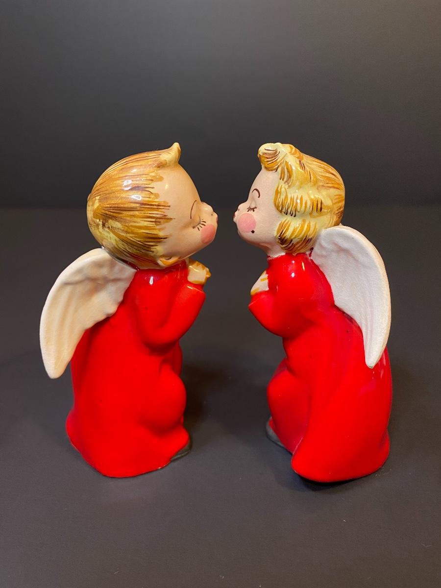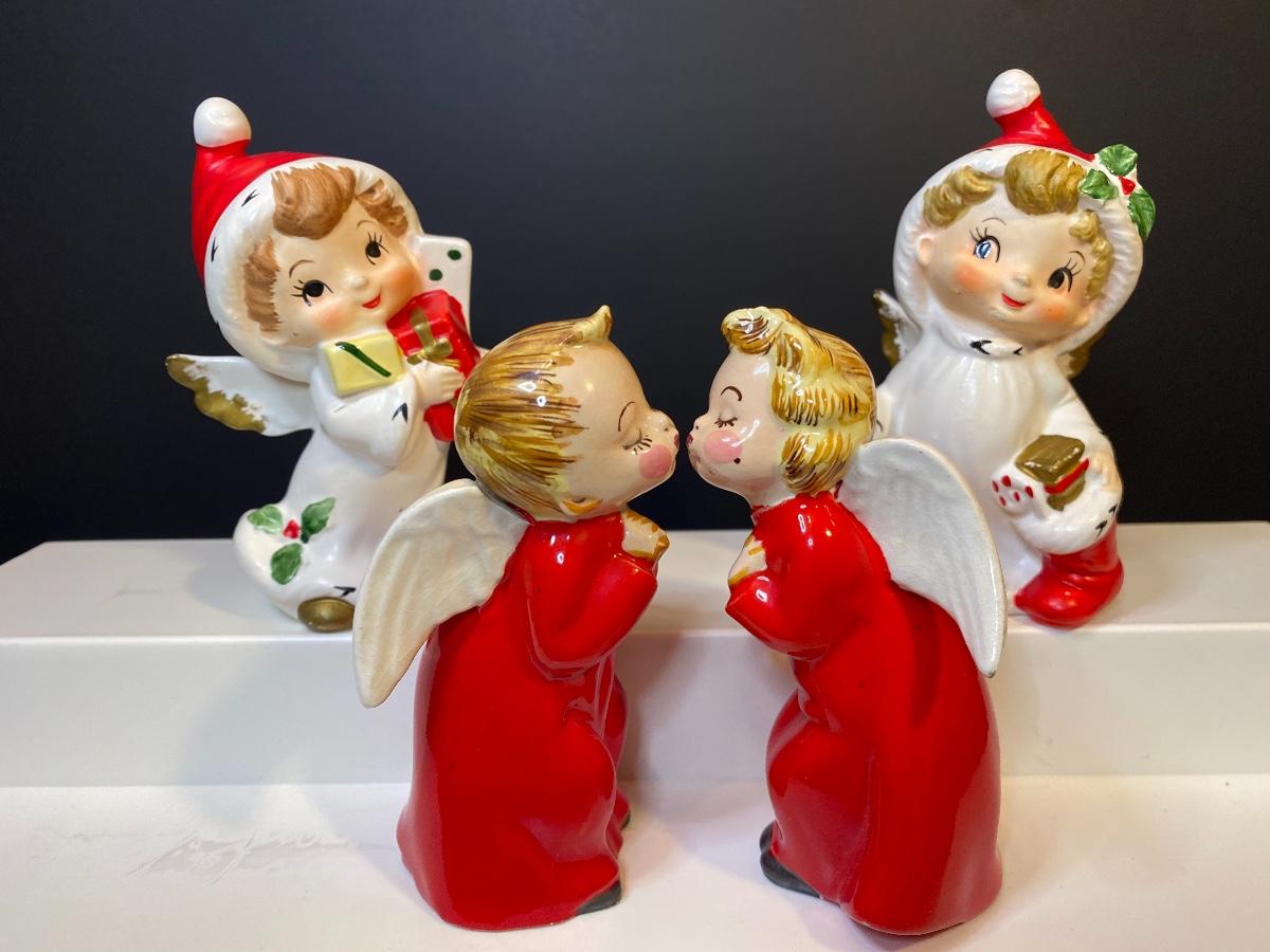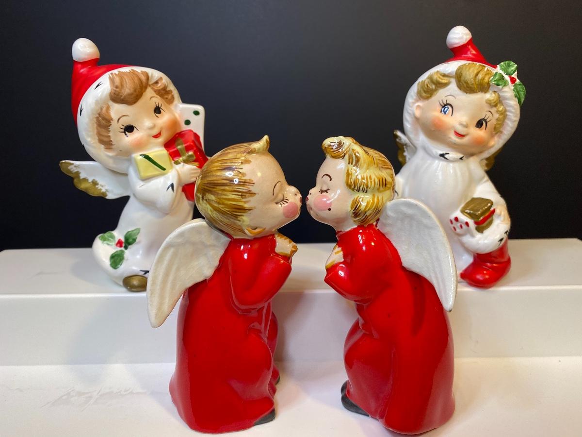 Vintage Catalpa Hill kissing angels and Santa hat angels. The pictures show condition, measurements if taken, and what is included in the lot. Due to the large amount that we photograph and the time frame, we are not always able to take measurements. All items unless noted, are pre-owned and have been used, and are untested. Thank you.