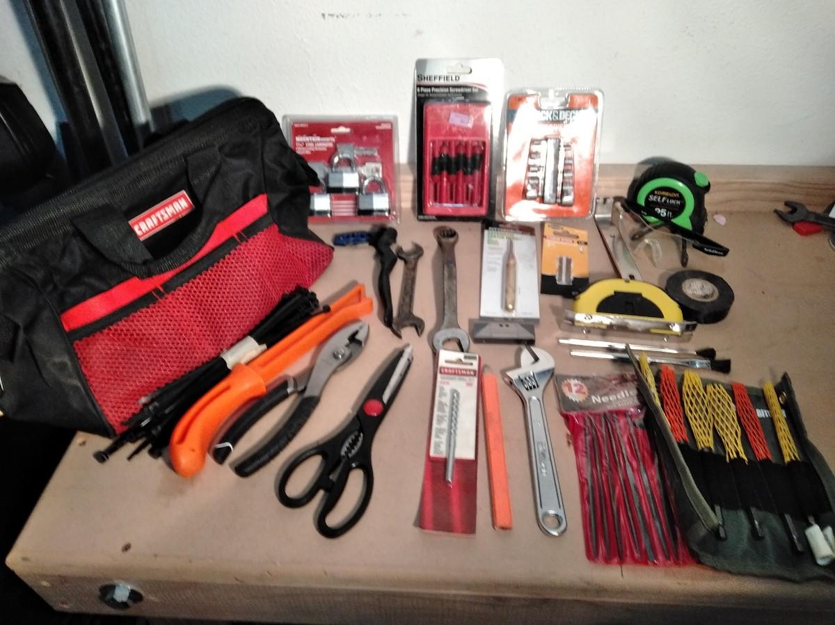 NEW, AND LIGHTLY USED TOOLS WITH CRAFTSMAN TOOLBAG