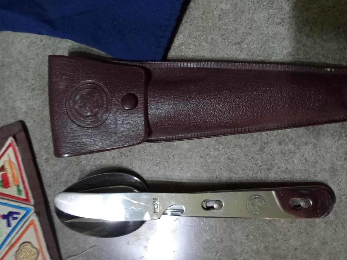 LOT 395 BROWNIE VEST, BOY SCOUT SHIRT AND UTENSIL SET (HD)