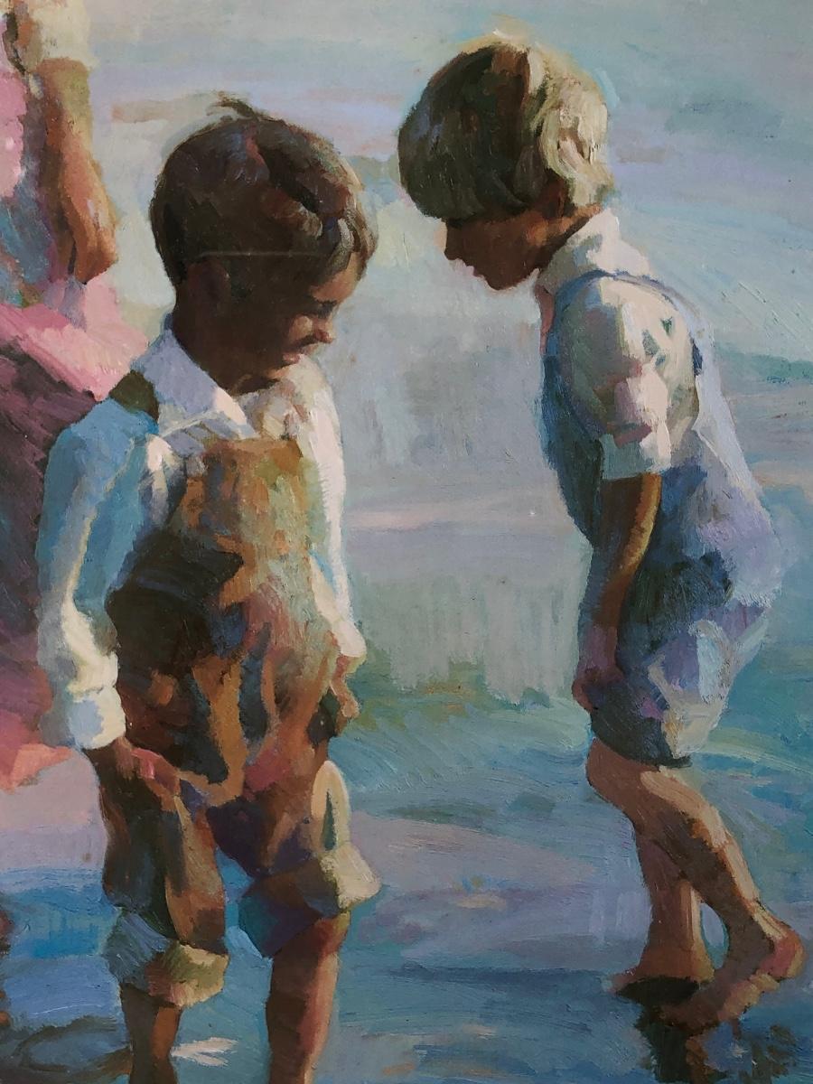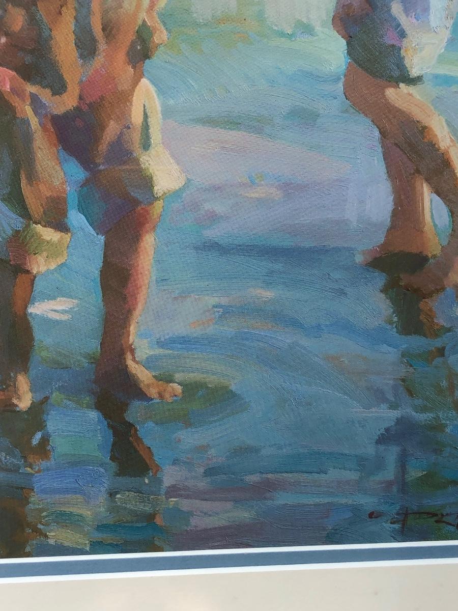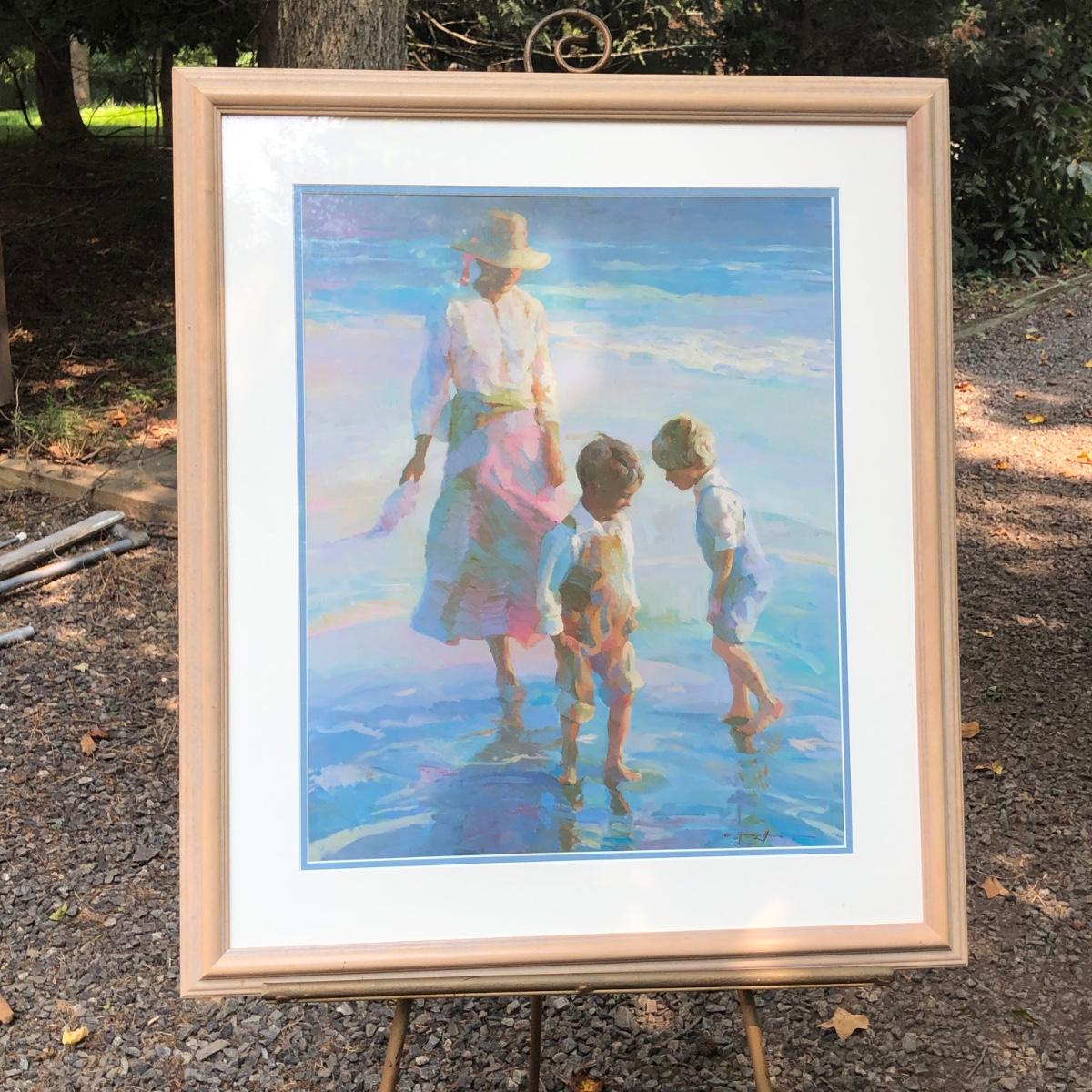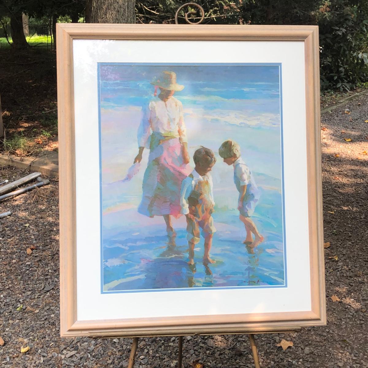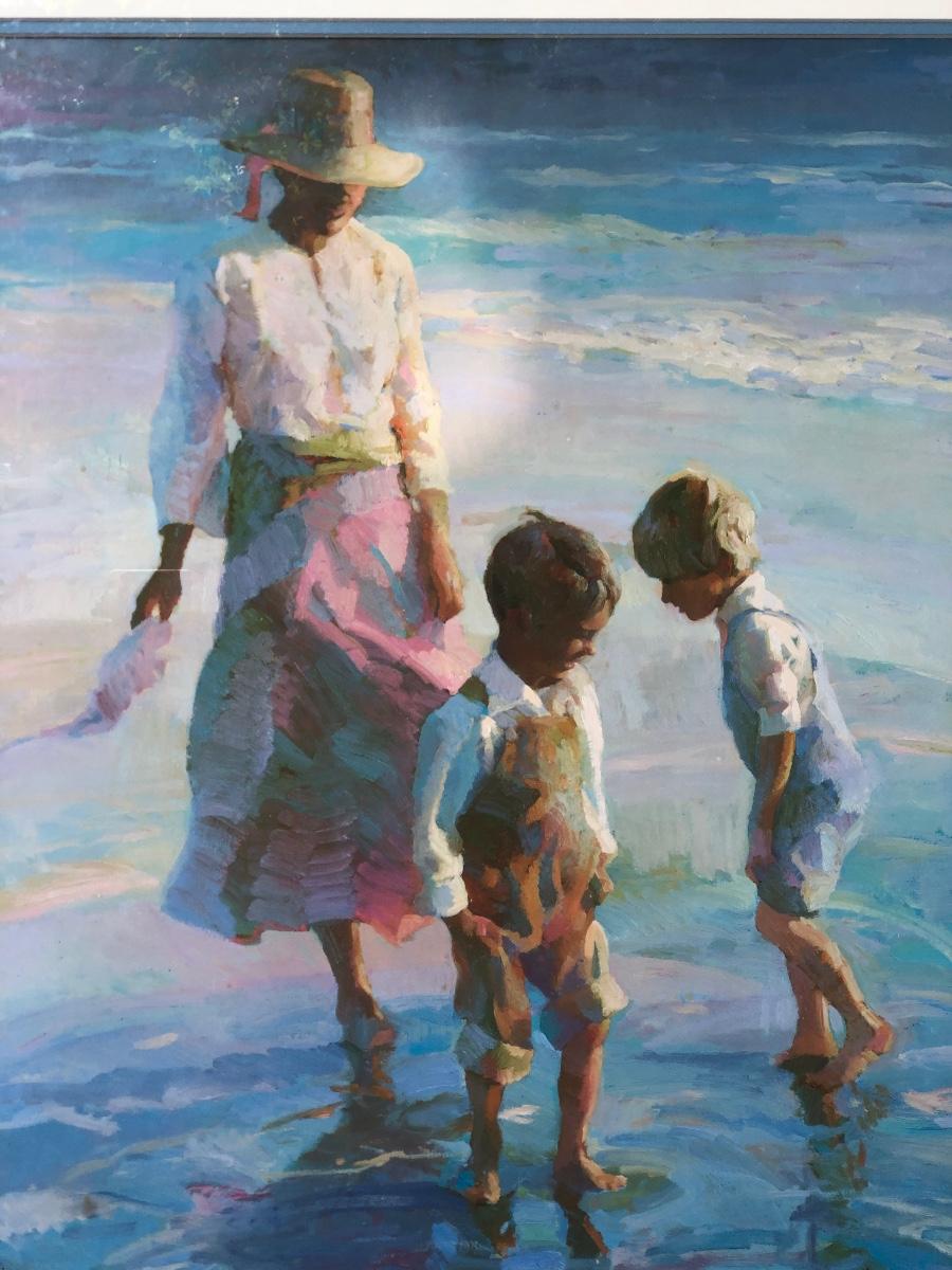 LOT 395G: Framed "Dancing in the Sand" Mother & Children on Beach Lithographic Print by Don Hatfield (American, 1947-)