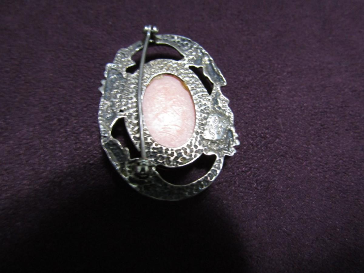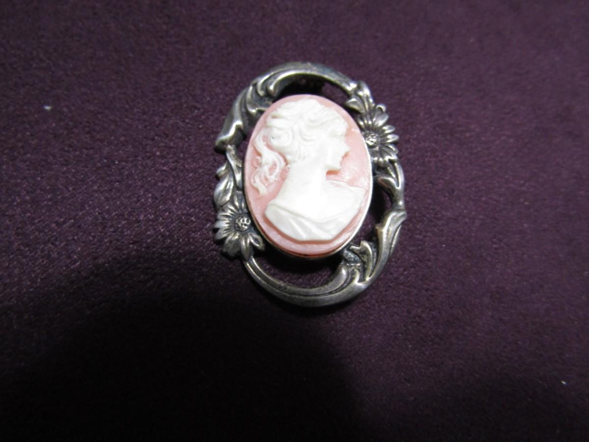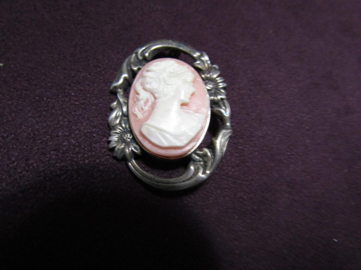 LOT 396 CAMEO BROOCH SET IN STERLING SILVER