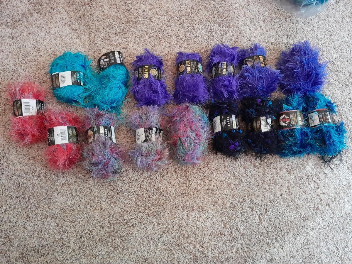 LOT 396 FUN FUR YARN SKEINS MANY FUN COLORS