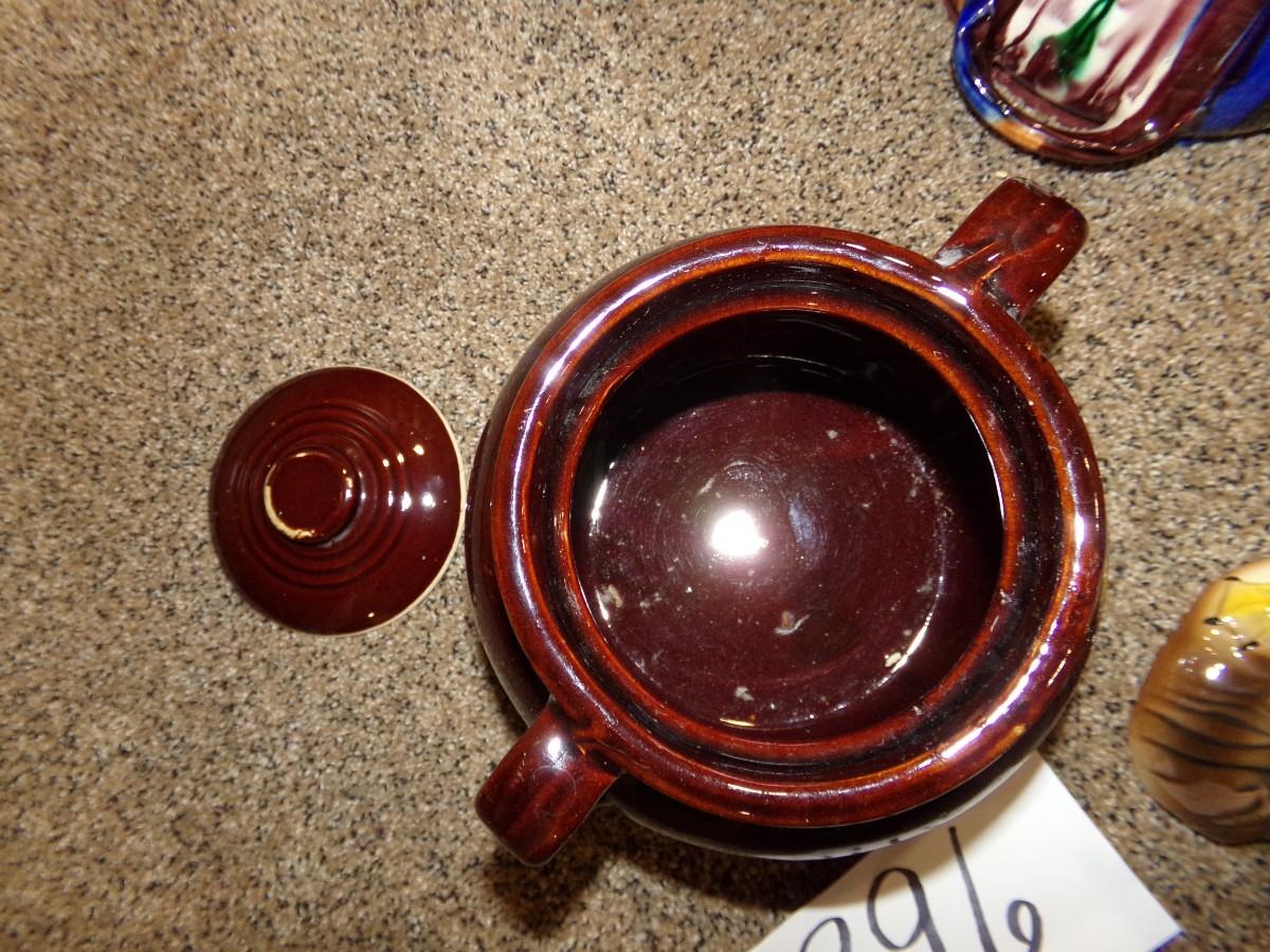 2 BEAN POTS WITH LIDS AND A DUCK PLANTER