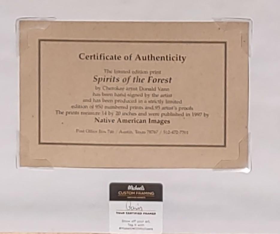 Lot 396: Framed "Spirits Of The Forest," Print By Donald Vann (COA)