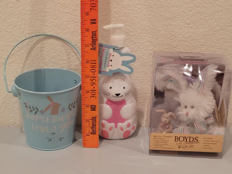 Lot 397: New Boyd's Bears Bunny Gift, Hallmark Handsoap and Metal Easter Bucket