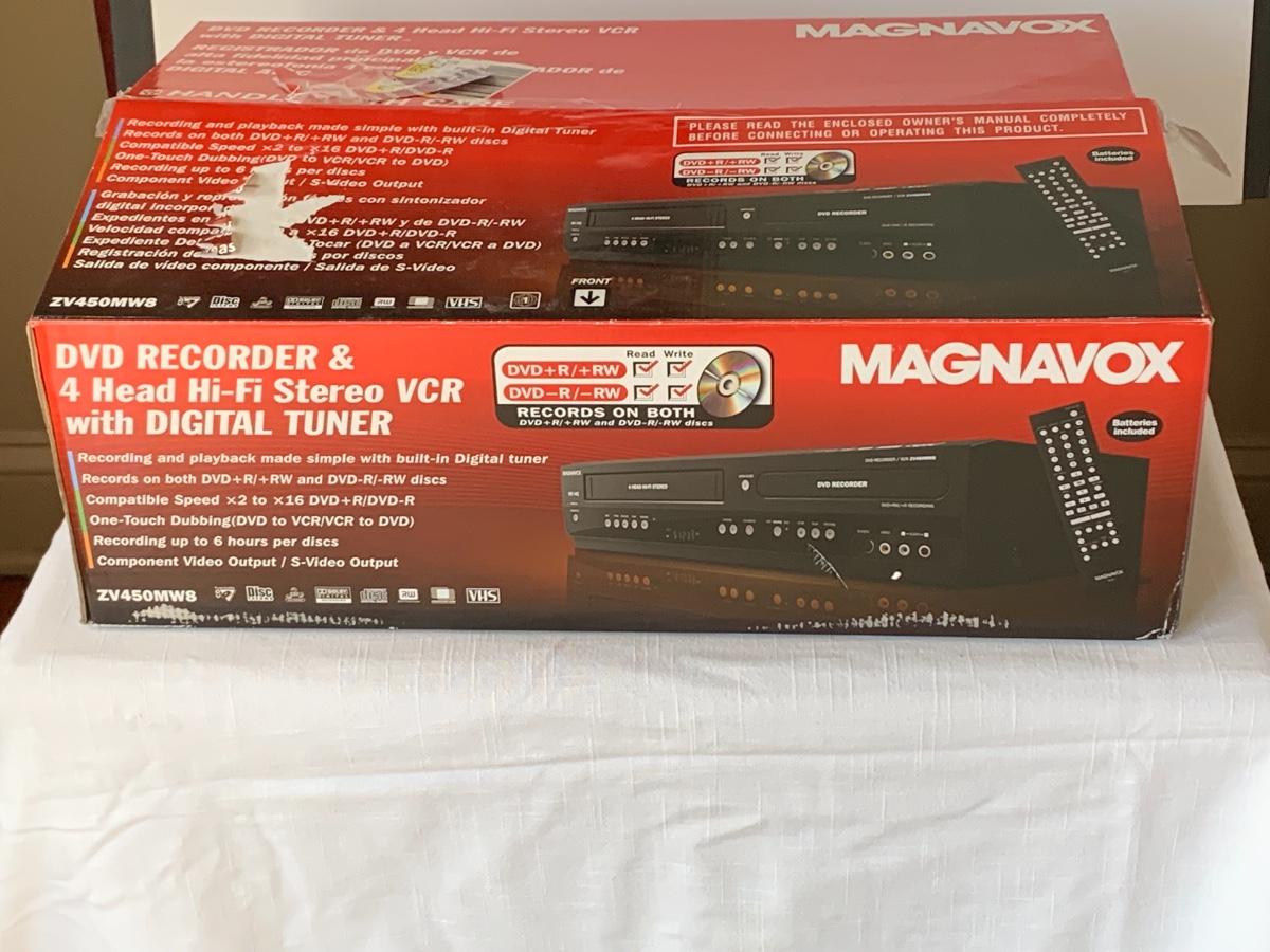 Powered on Magnavox however did not play DVD or VHS and has original box.
