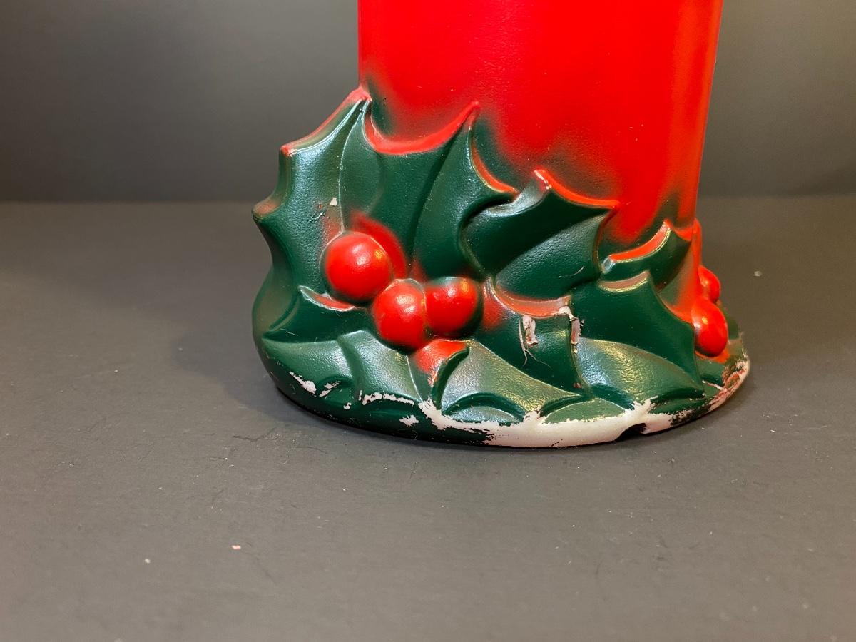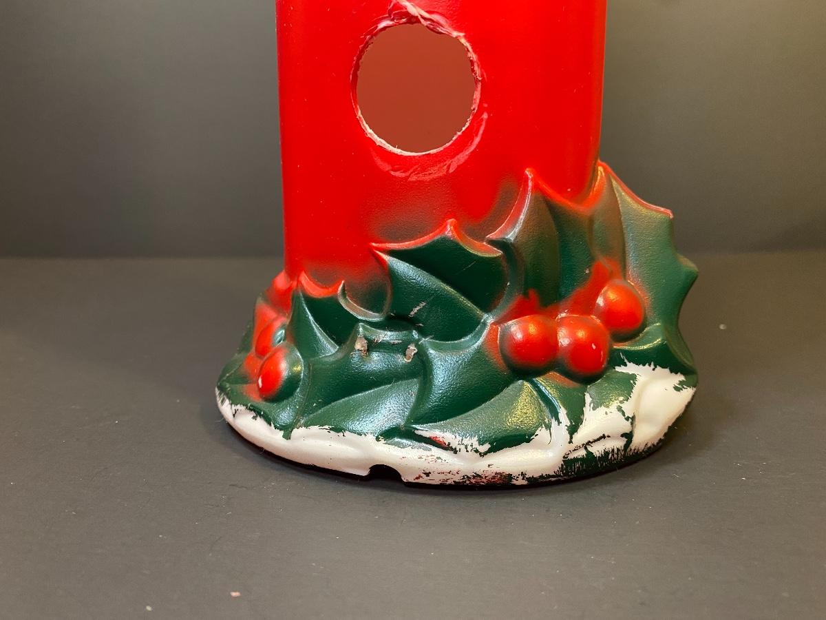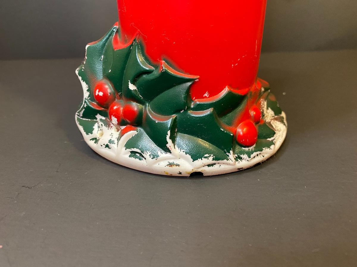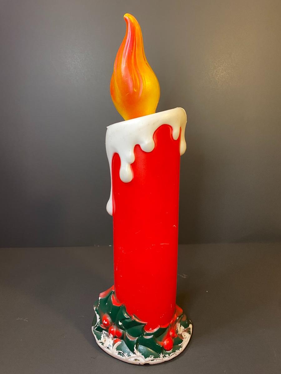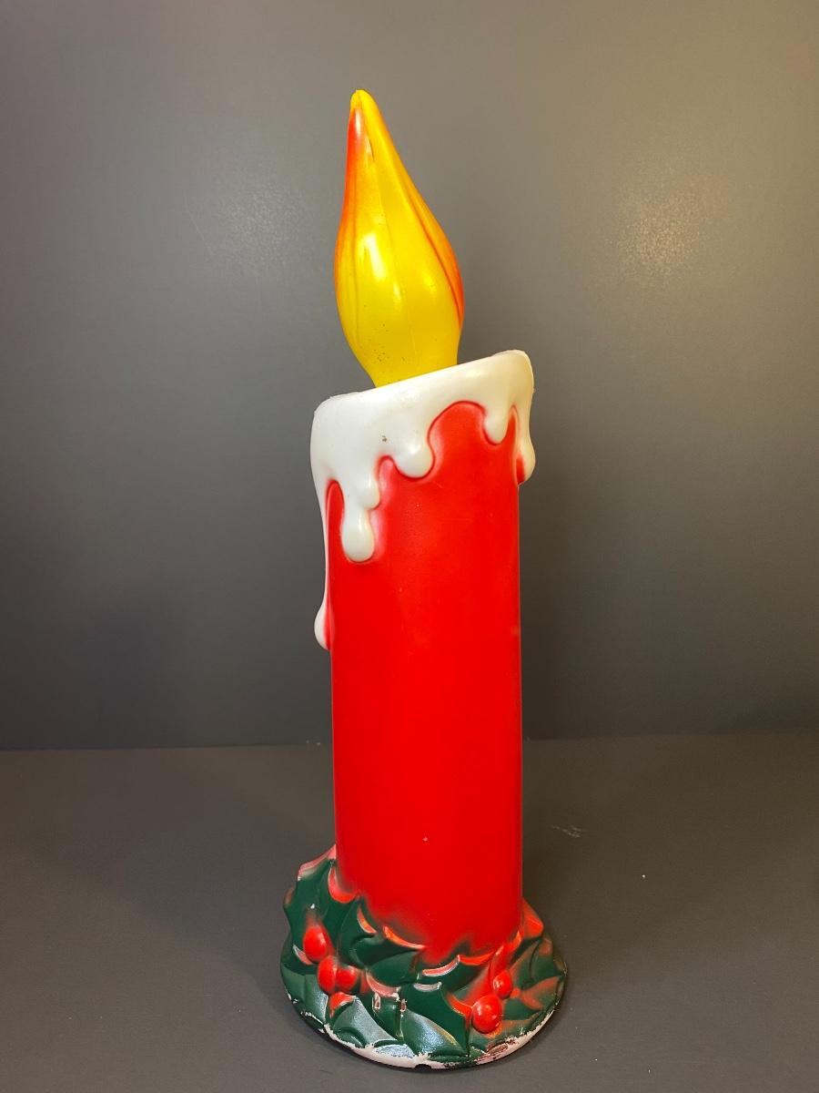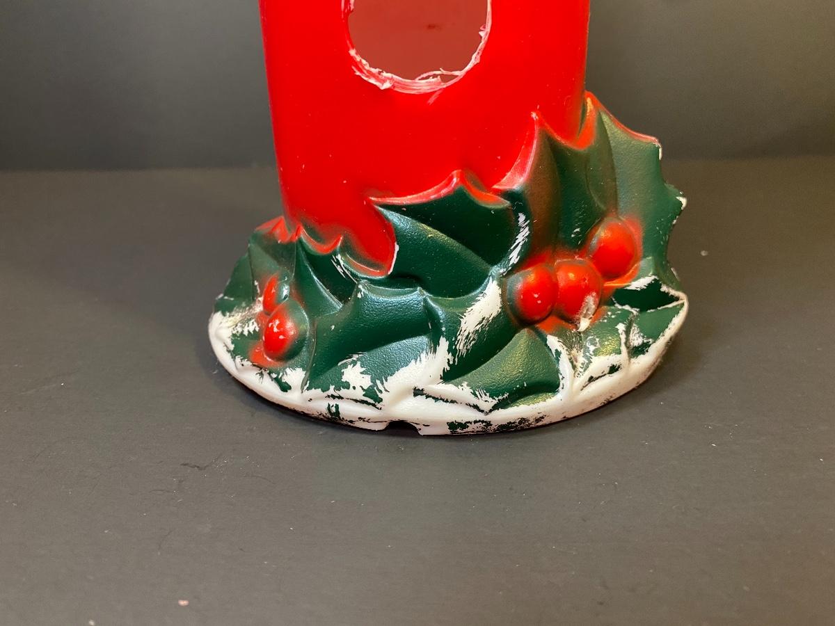 Set of two vintage plastic candles. These have a hole in the back to put a light in, but they do not have a light currently. The pictures show condition, measurements if taken, and what is included in the lot. Due to the large amount that we photograph and the time frame, we are not always able to take measurements. All items unless noted, are pre-owned and have been used, and are untested. Thank you.
